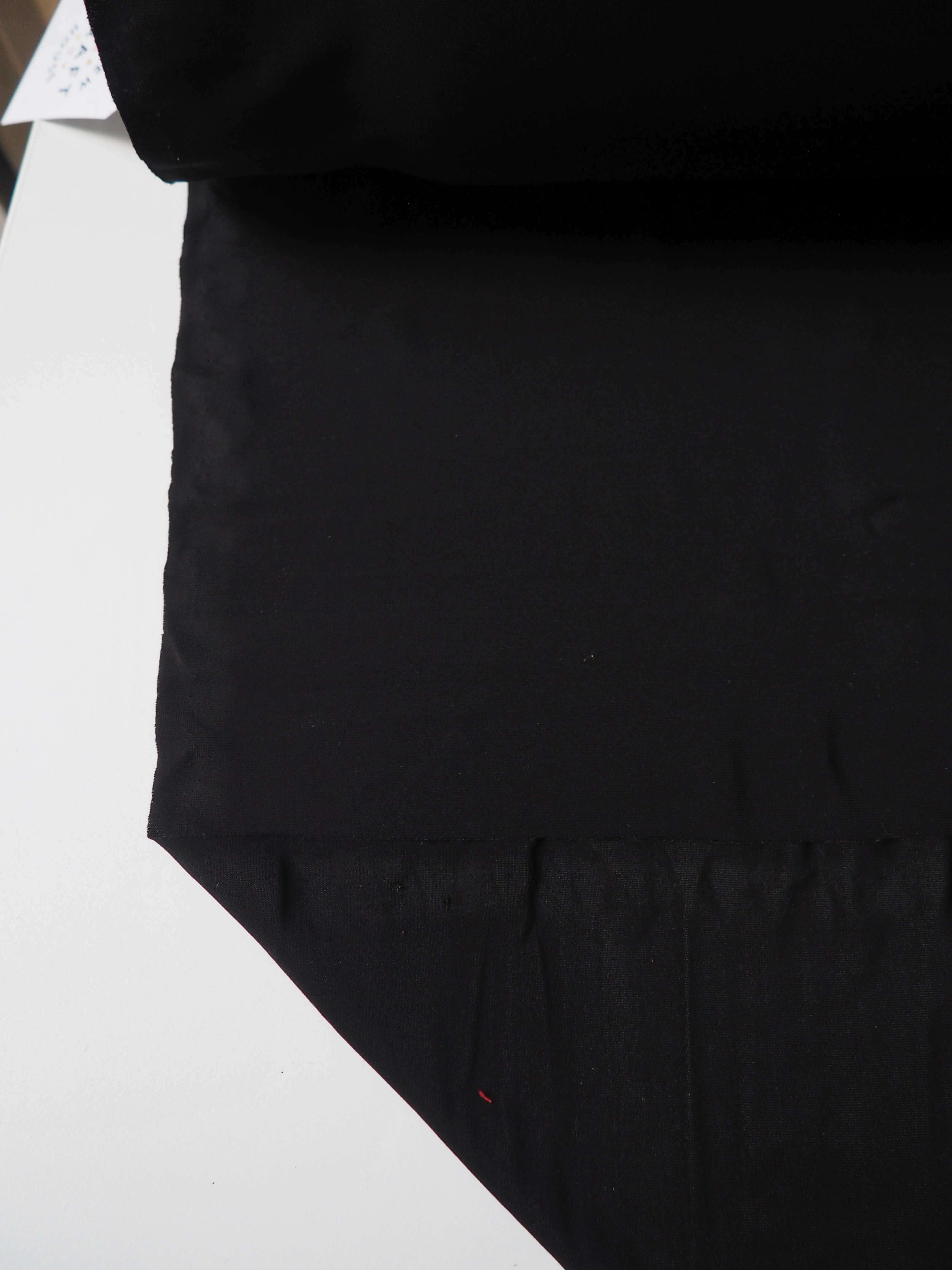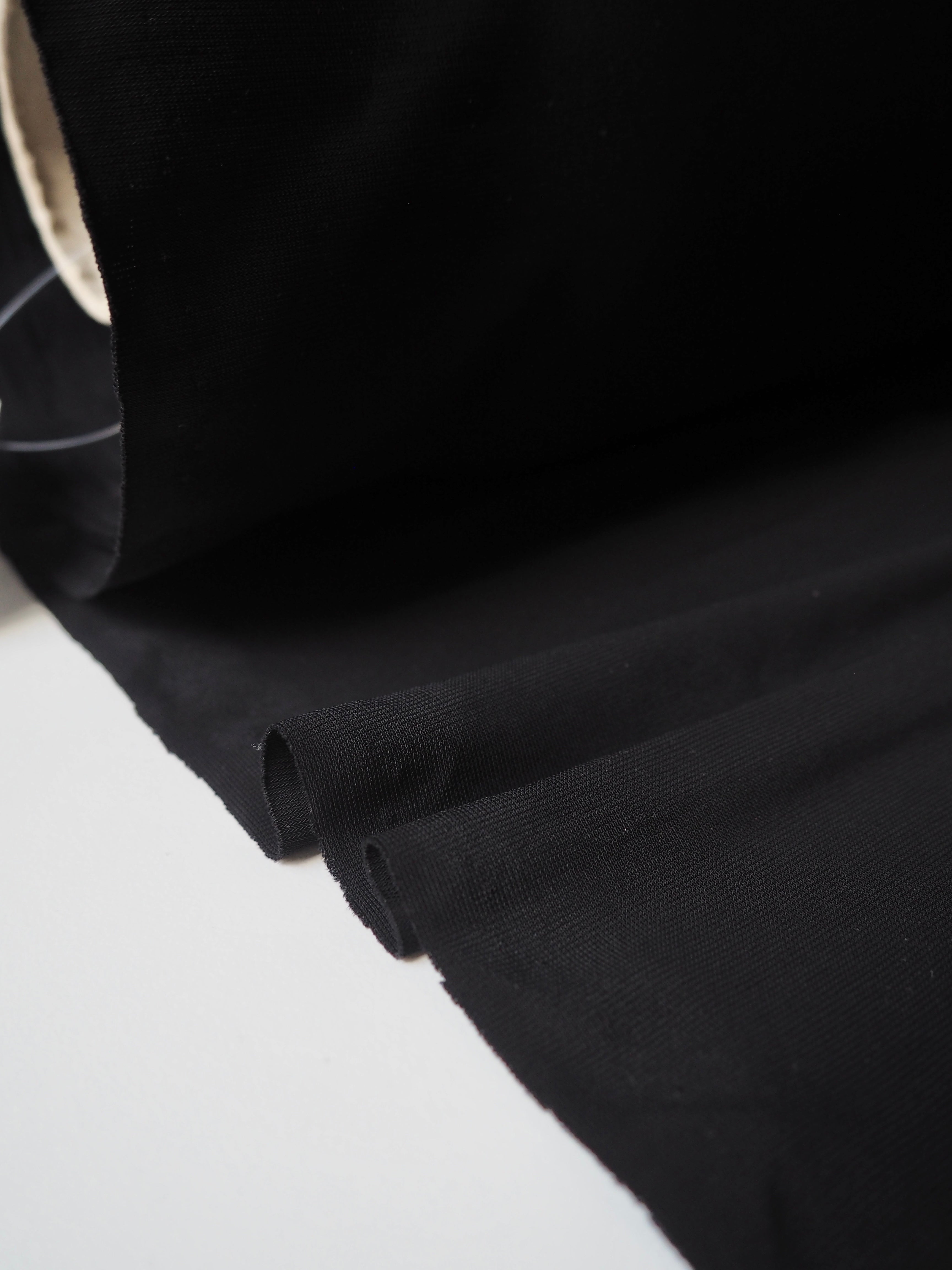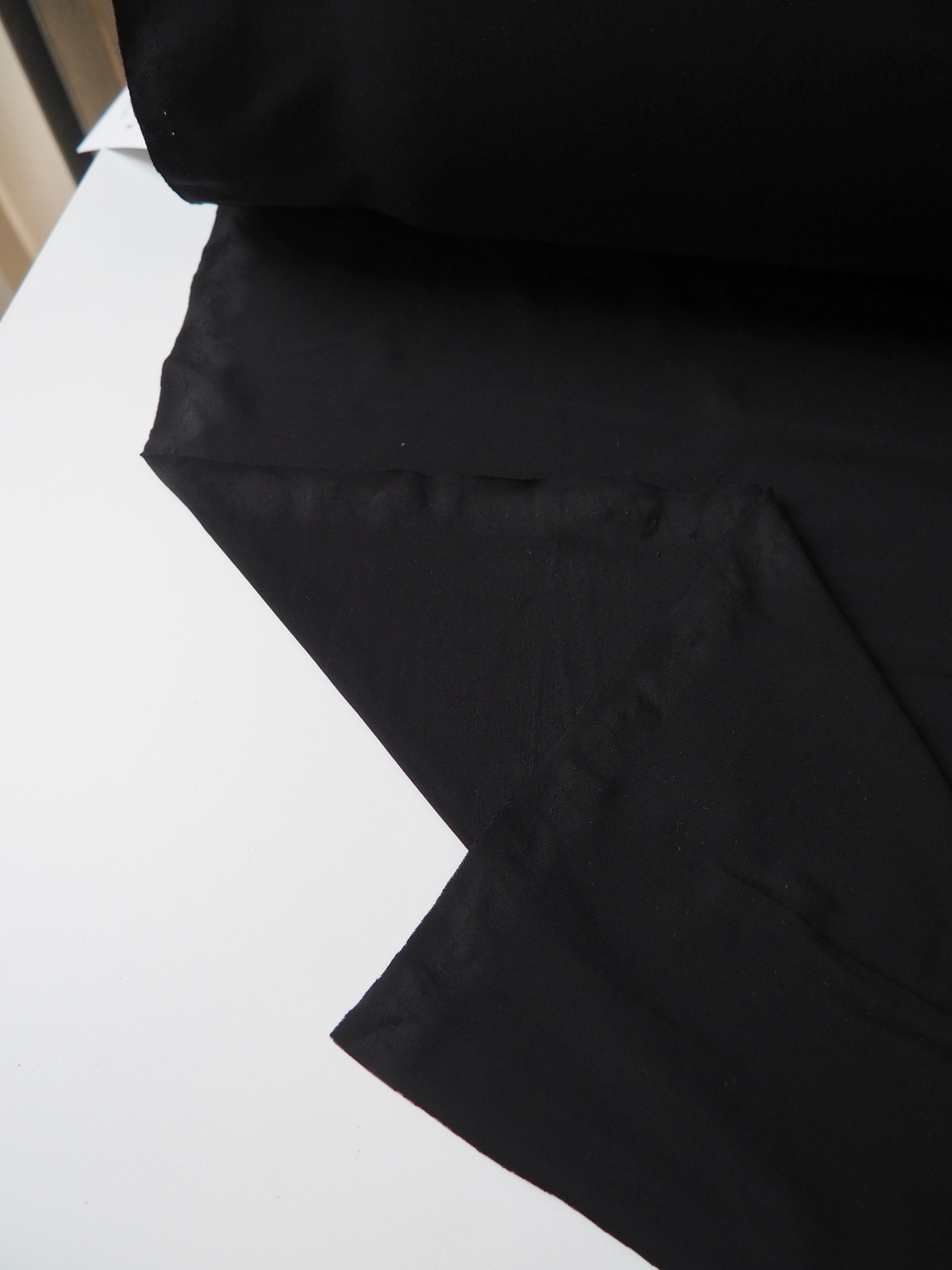 This ex-designer fabric is a jersey. It has a beautiful drape that’s quite swishy, and a slinky handle. It's lightweight, with a lovely smooth handle, and is quite breathable. Has about 40% stretch both ways. Mostly opaque but a little sheer. Perfect for a dress or elevated basics!