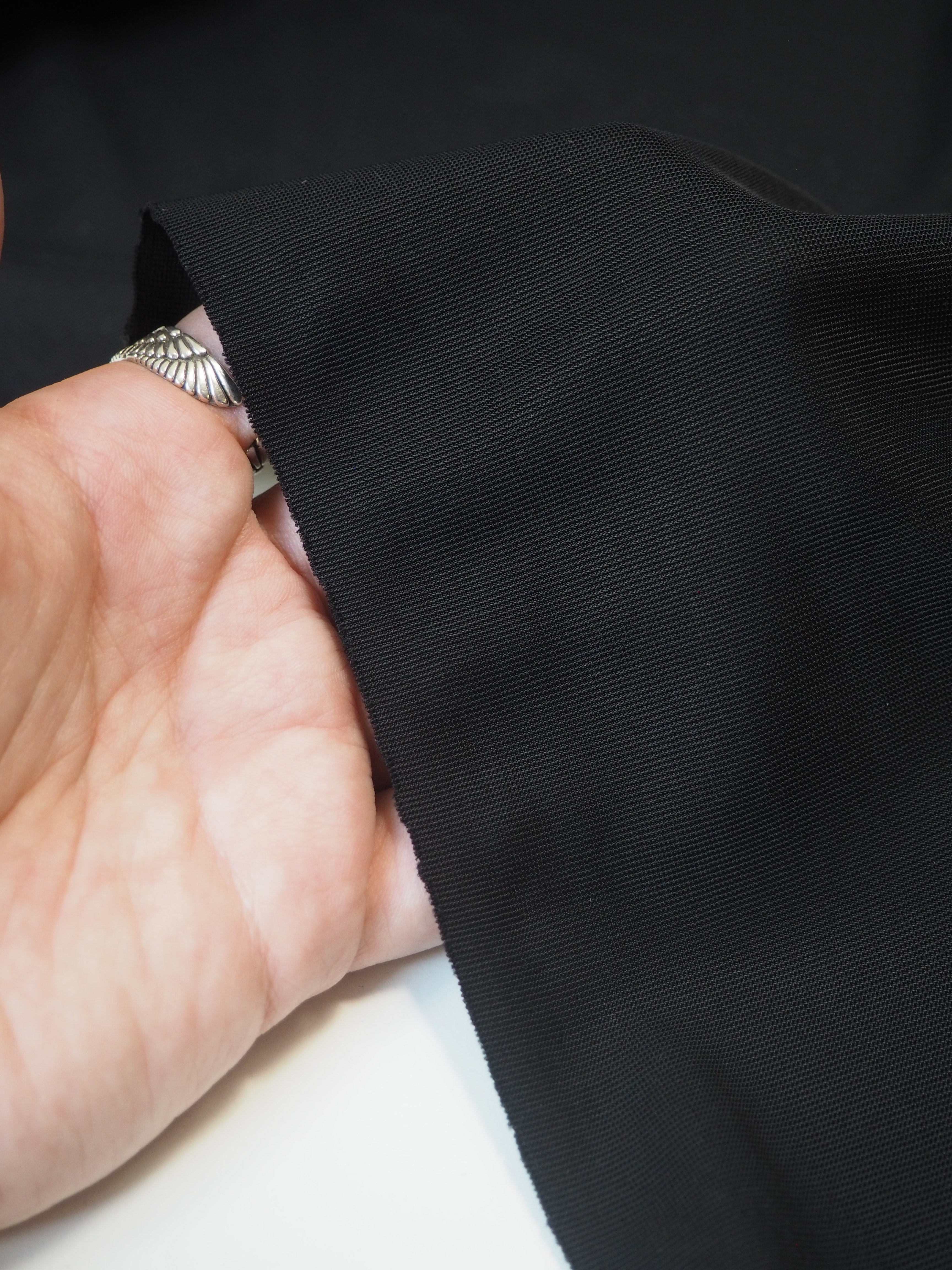 This ex-designer fabric is a powermesh. A powermesh is a mix between a powernet and a stretch mesh. It's so soft and slinky, has a dense weave like a powernet, but with more of a mesh handle. It still has amazing stretch and recovery like a powernet, and has a nice structure for lingerie! It has a smooth, shiny reverse and drapes beautifully. This super soft mesh is so comfortable! It has a 30% stretch length-ways, and about 20% width-ways, and great recovery. Lightweight and mostly opaque, except when stretched out. Perfect for our lingerie patterns! We also have bra findings kits!