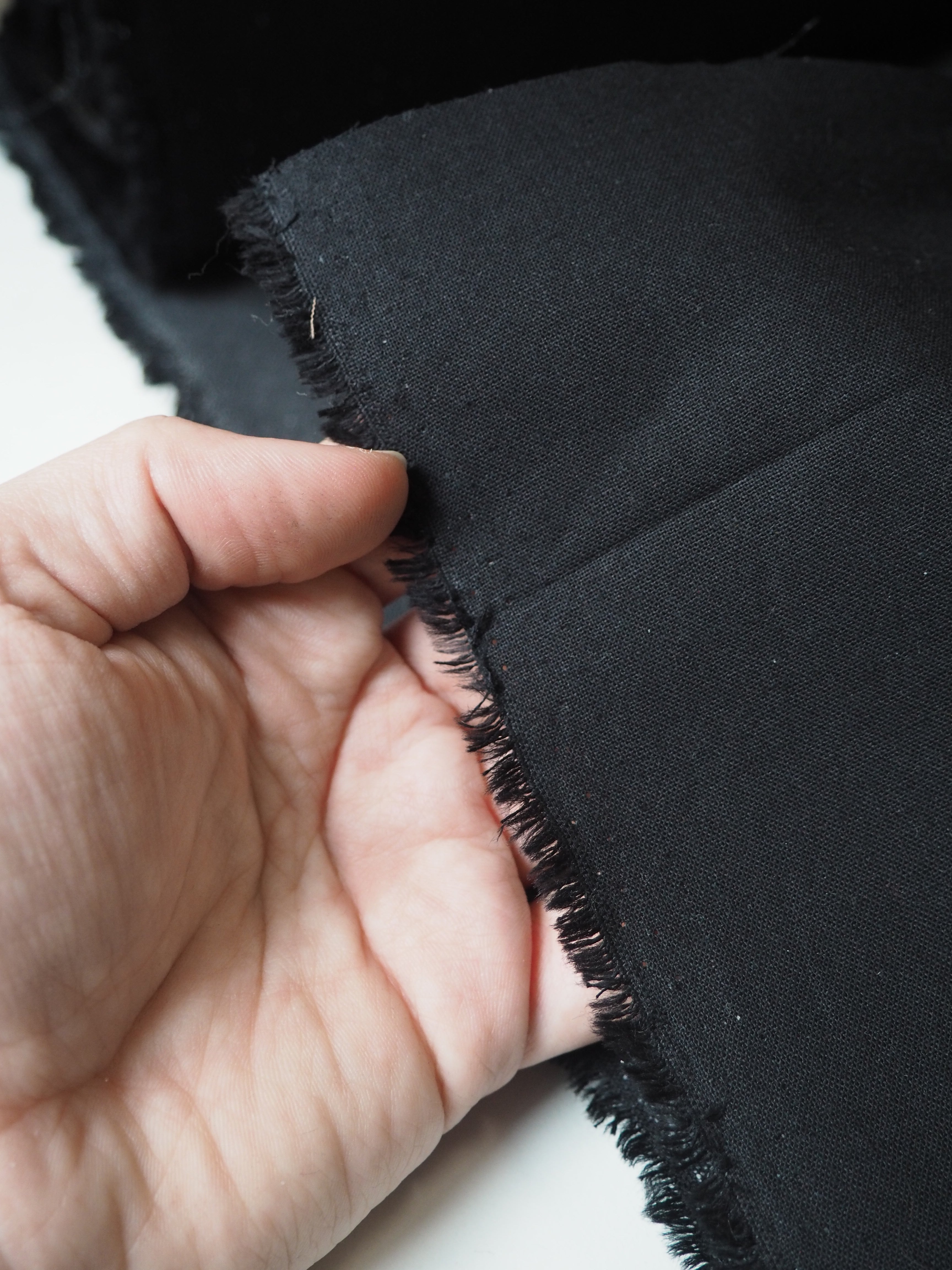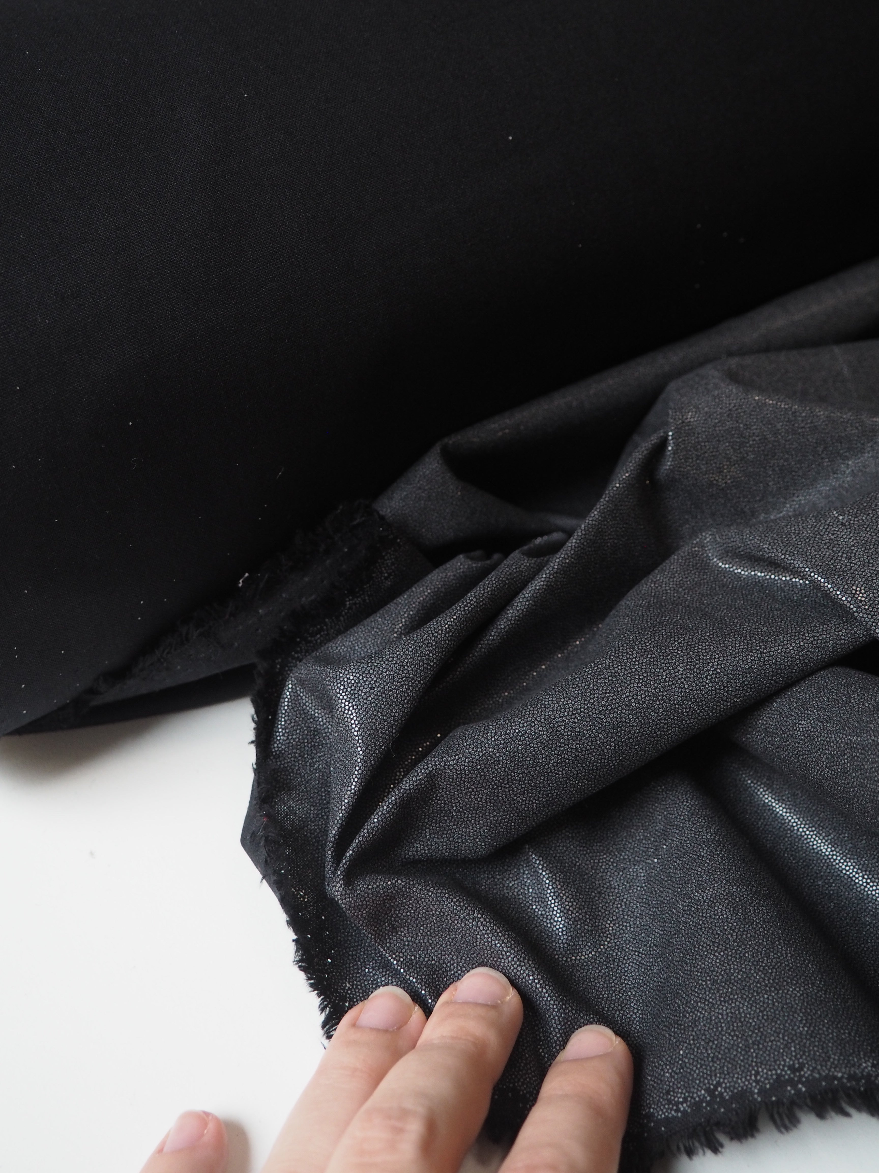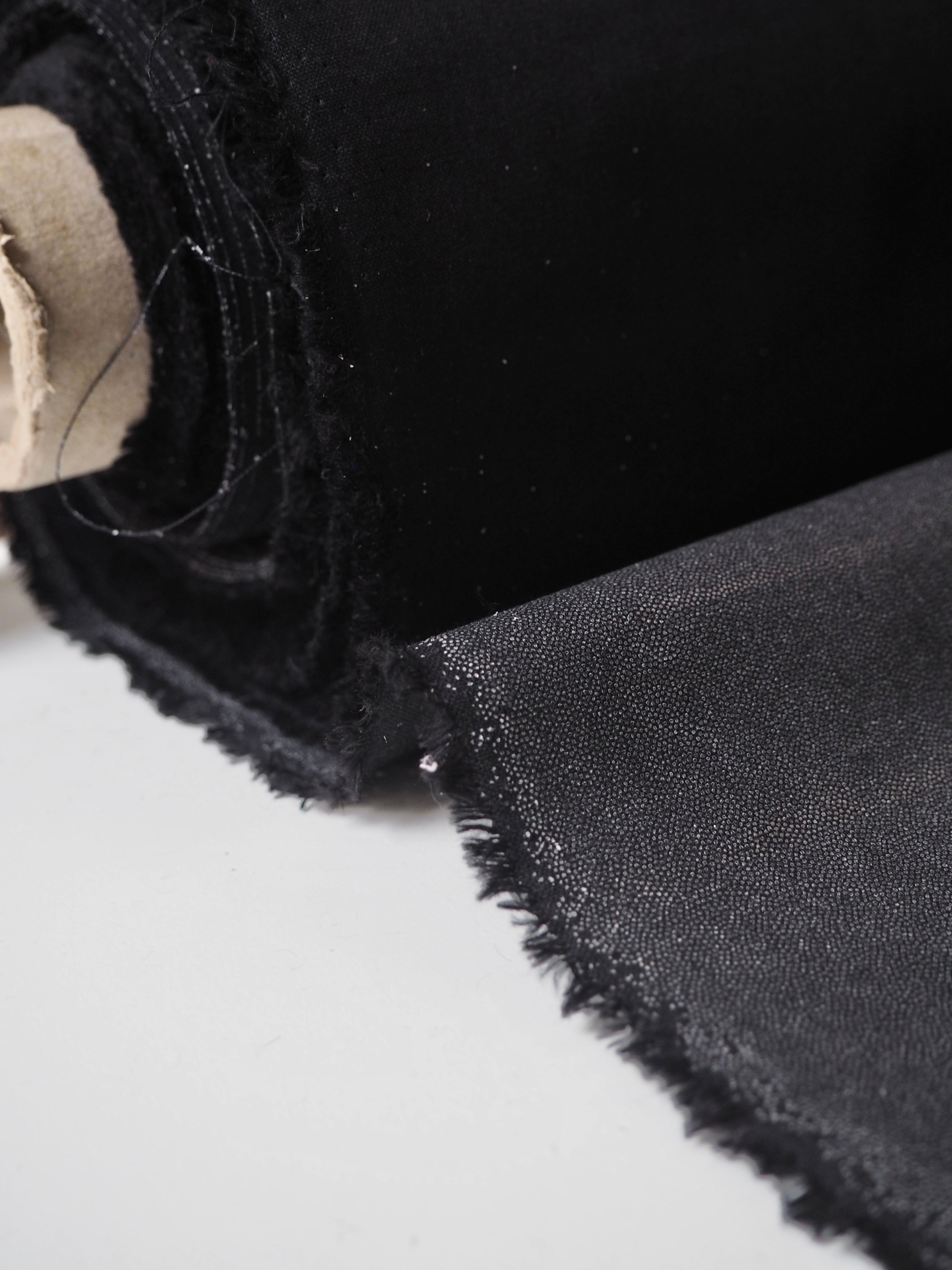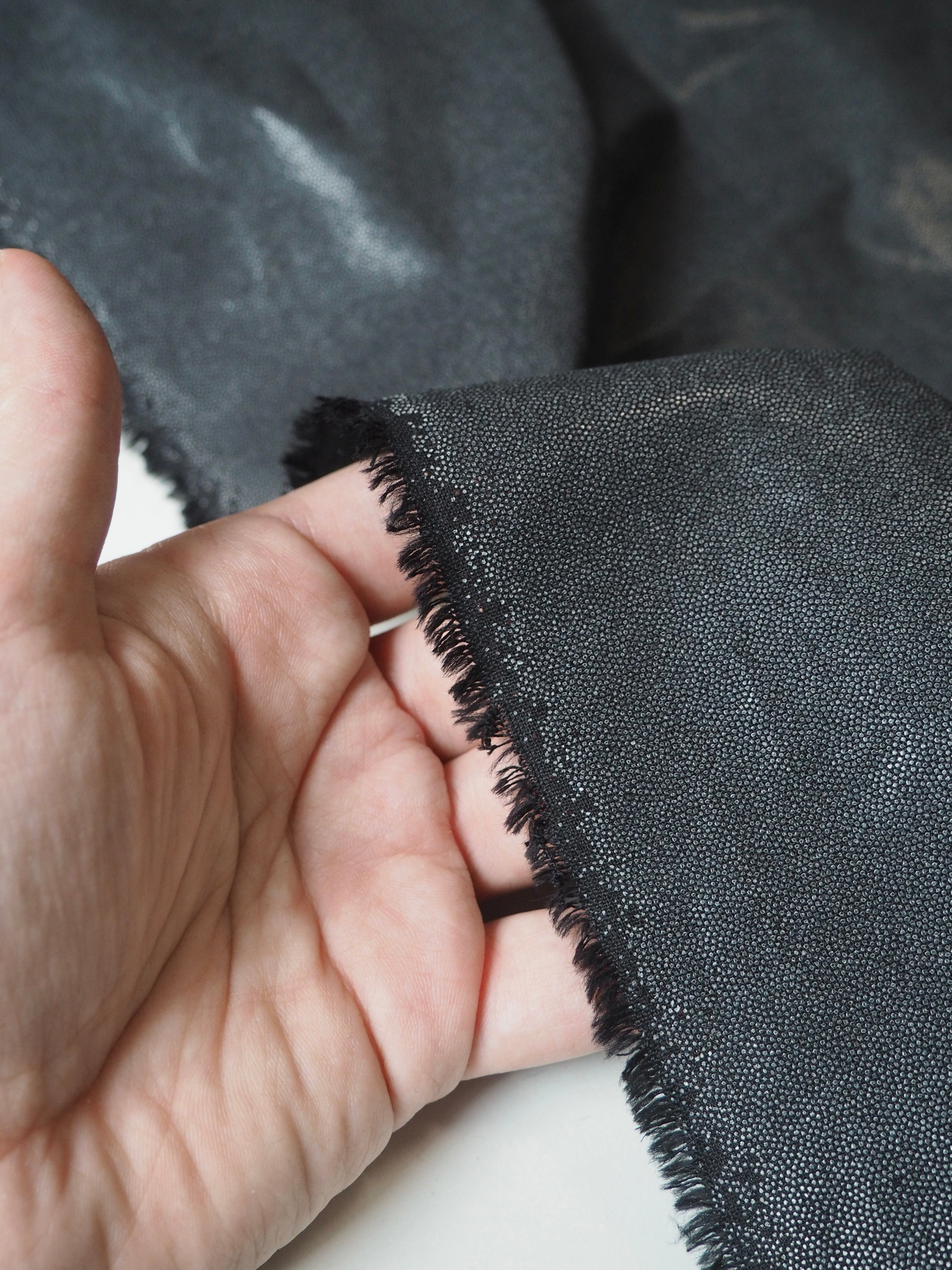 This ex-designer fabric is an interfacing. It's a more structured interfacing. It has a soft handle on the finished side, and a fusible reverse. Medium weight, with an opaque finish. Great to add extra support to a variety of fabrics, for bags, jackets, collars, etc!