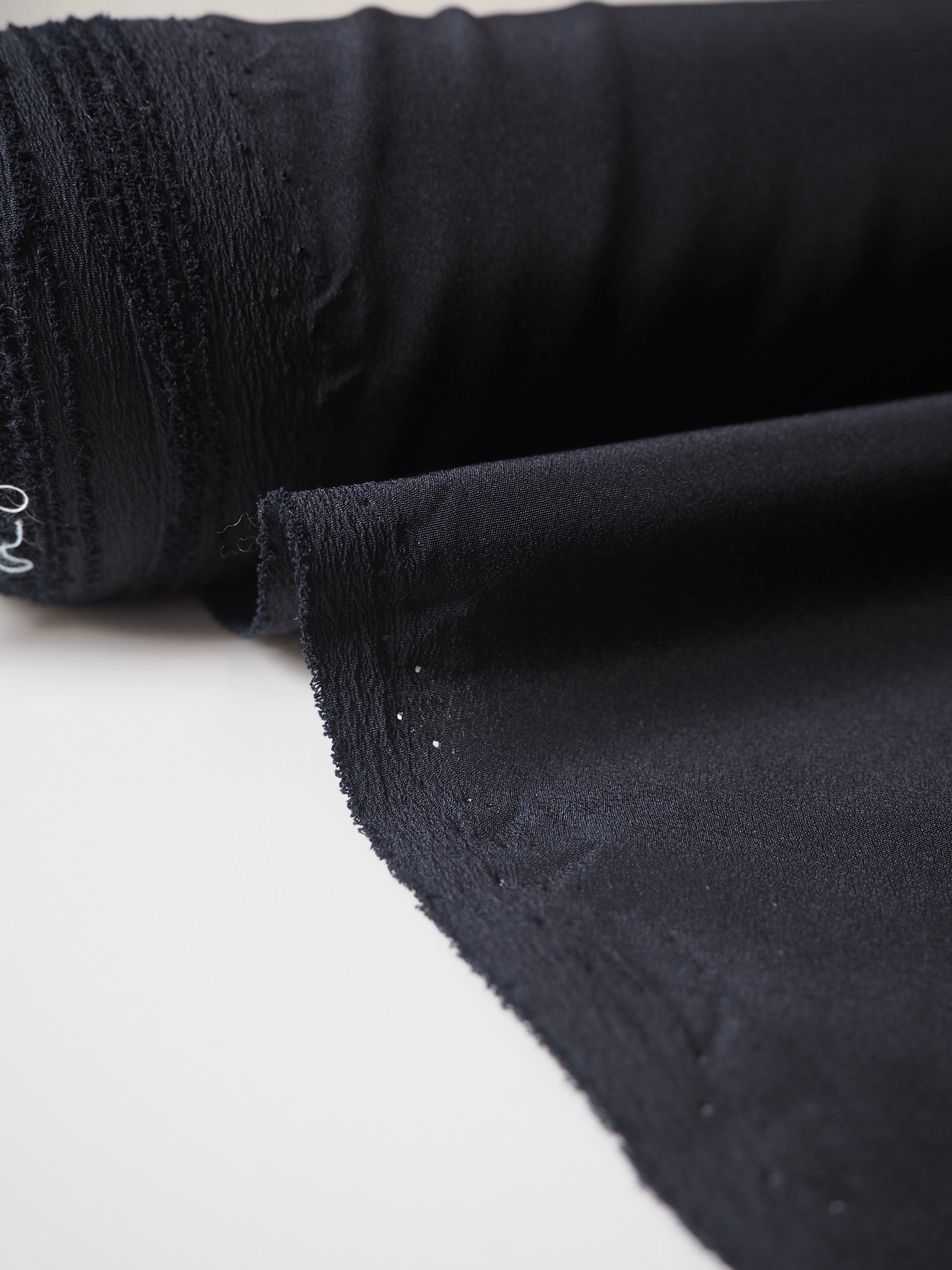 This ex-designer fabric is a crepe de chine. It has the characteristic gentler but smooth crepe texture but is still very soft and lightweight. It's very drapey and has great movement and a lovely sheen. Opaque. Would be perfect for a lining or a slip dress!