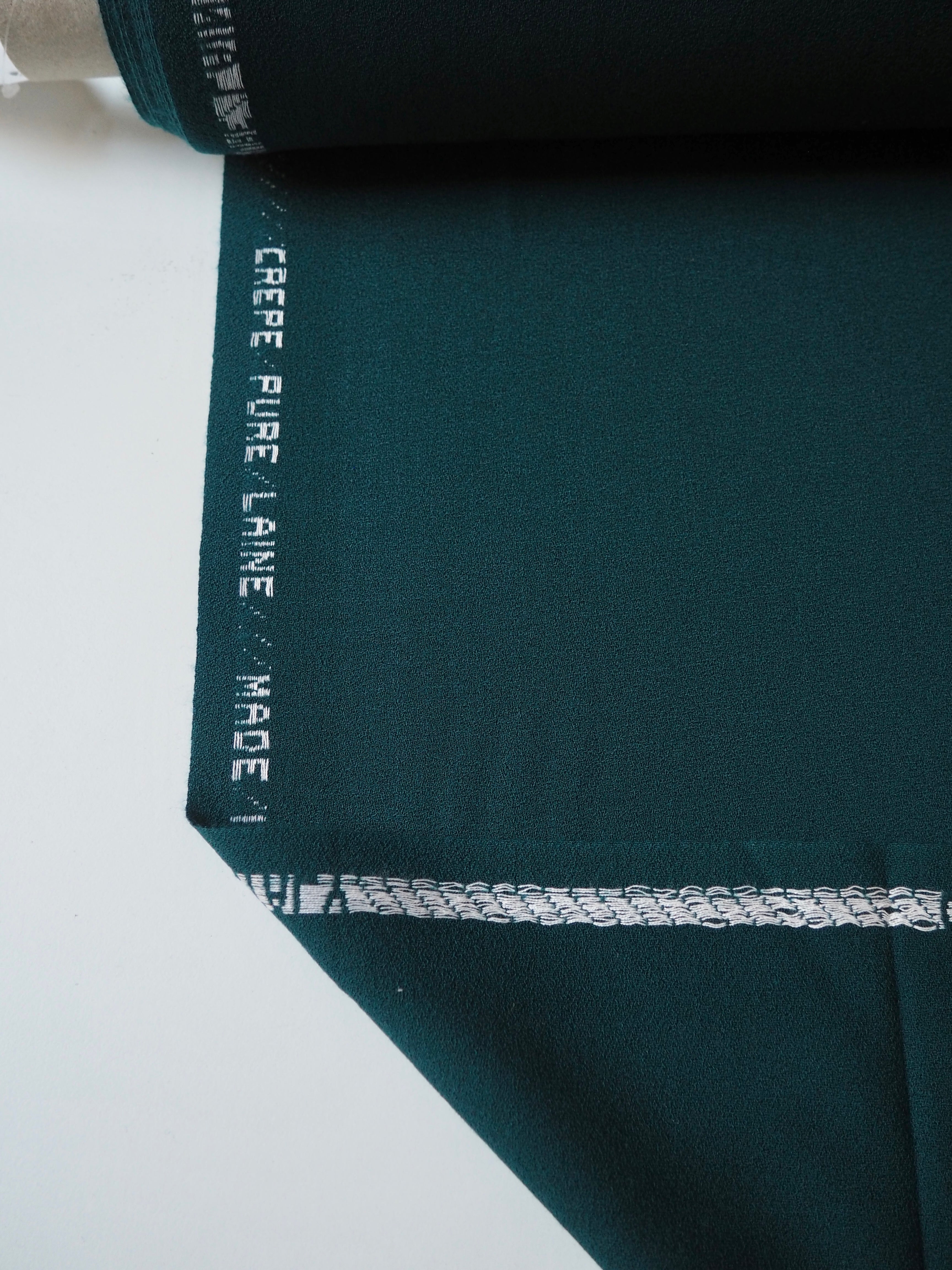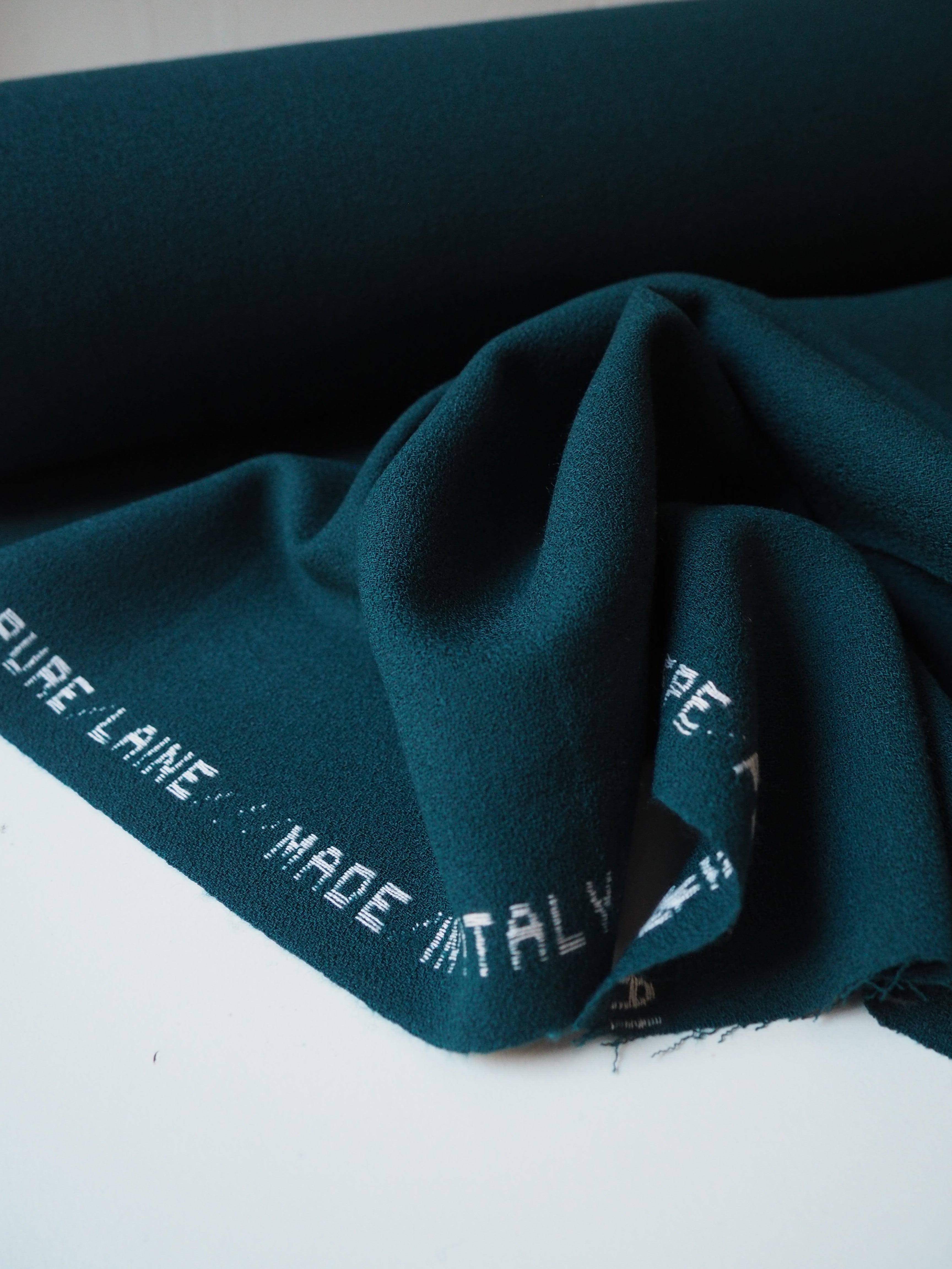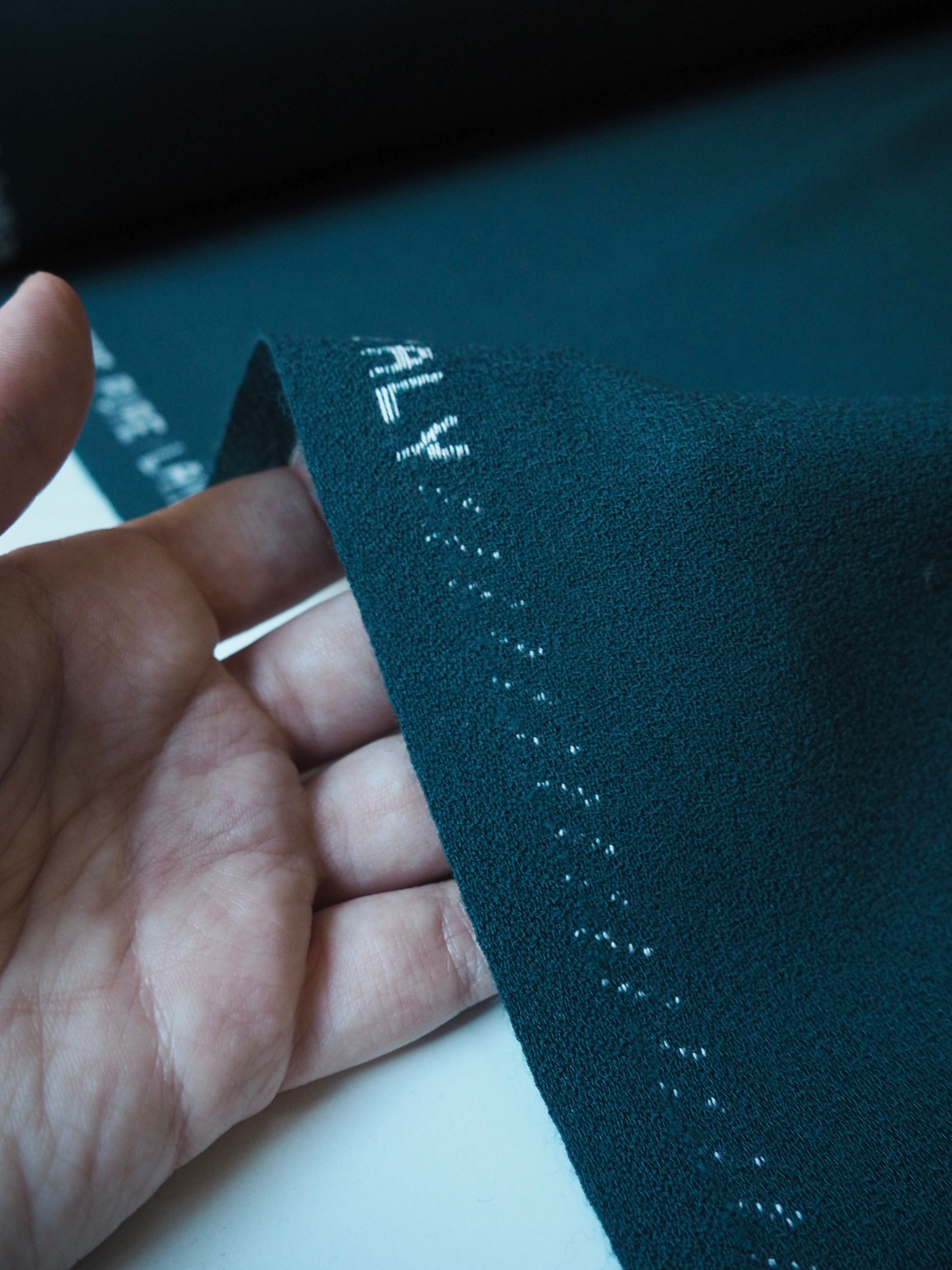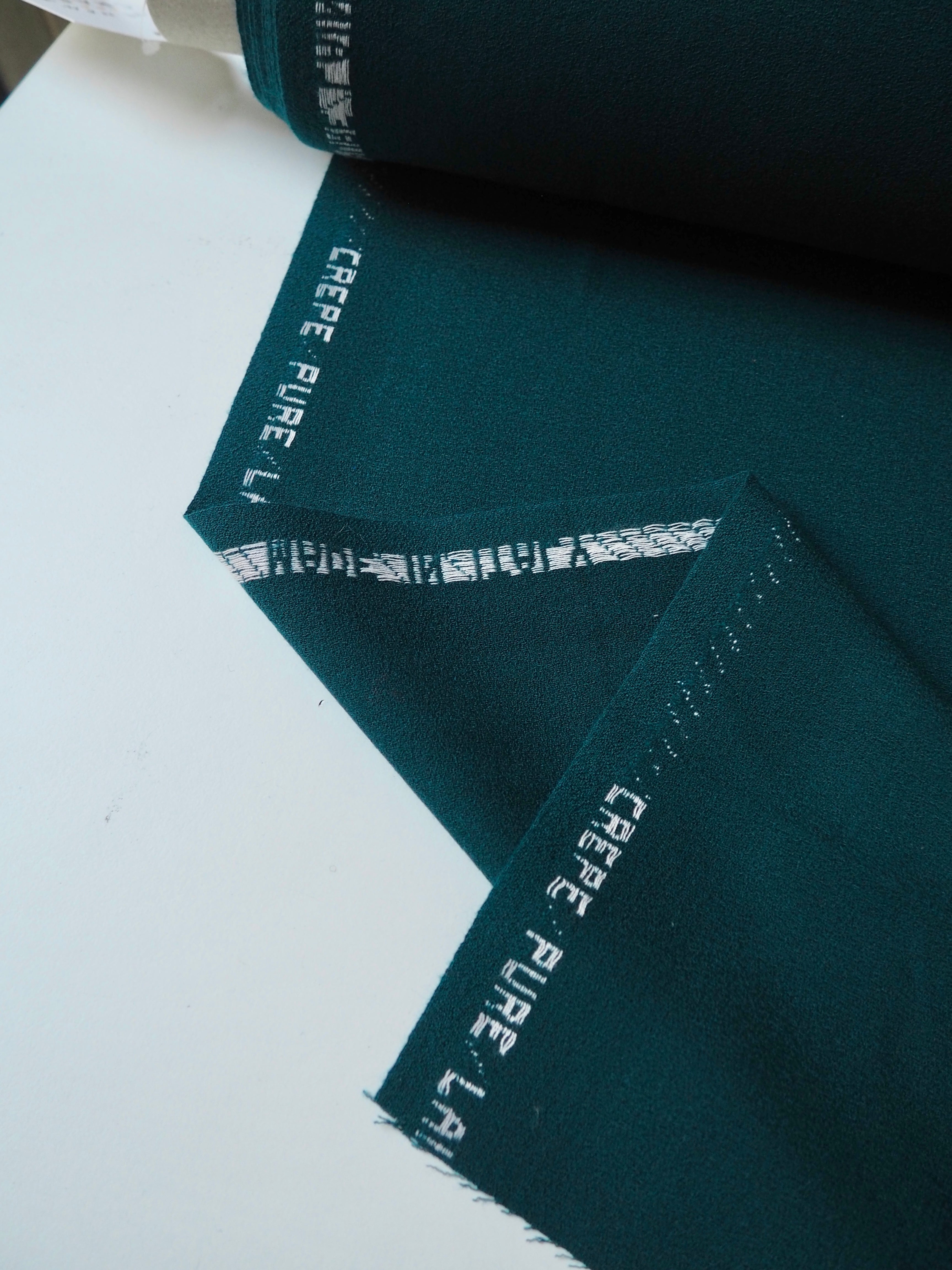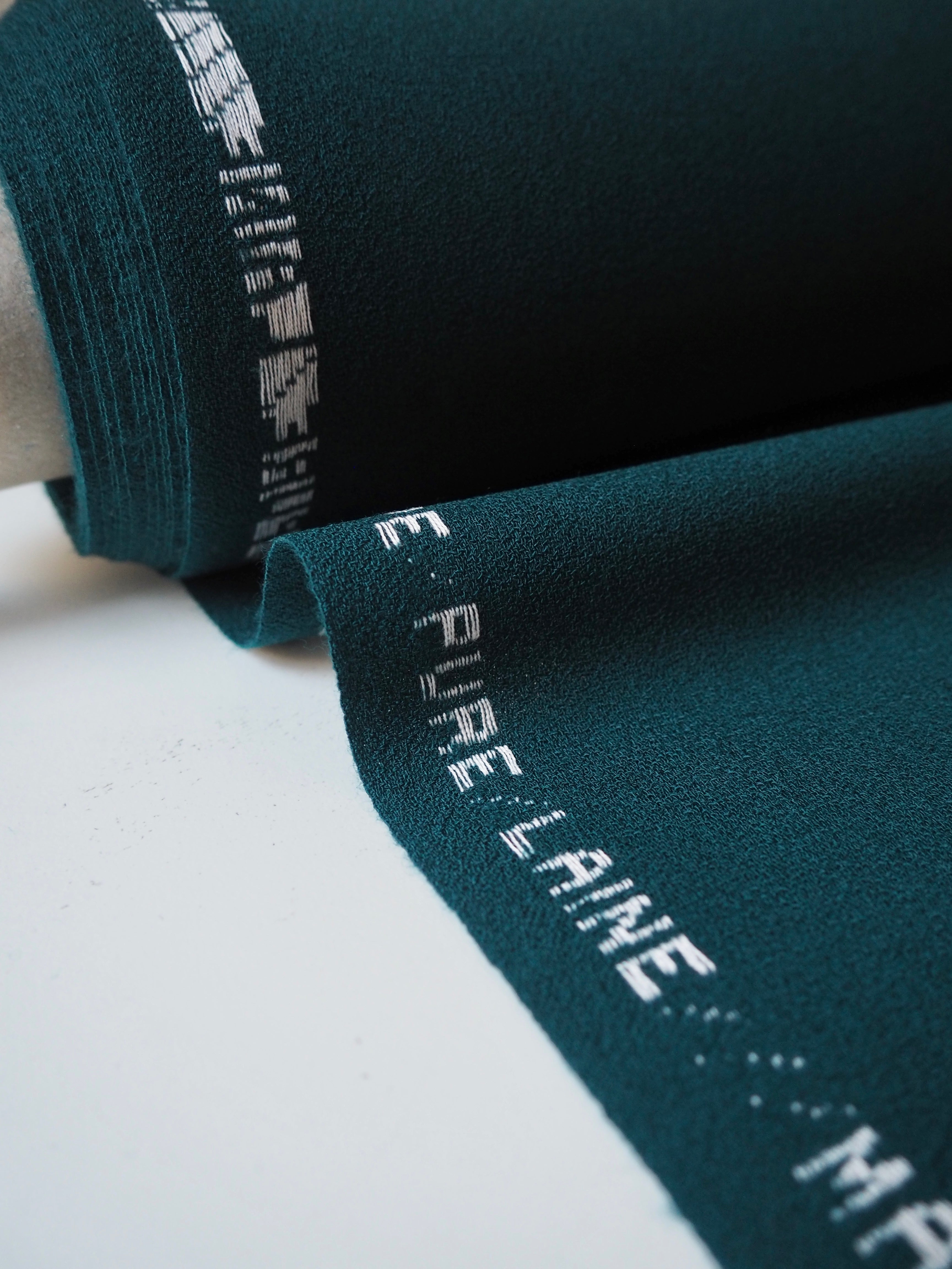 This ex-designer fabric is a wool crepe. It's a beautiful cloth with a sturdy but comfortable weave. It's made of pure wool and feels and looks so luxurious! It has a soft structure and really lovely soft crepe handle. Lightweight, and perfect for tailoring projects. Flexible and has a wonderful drape that makes it so easy to work with! The perfect cloth for a lifetime pair of wide leg trousers!