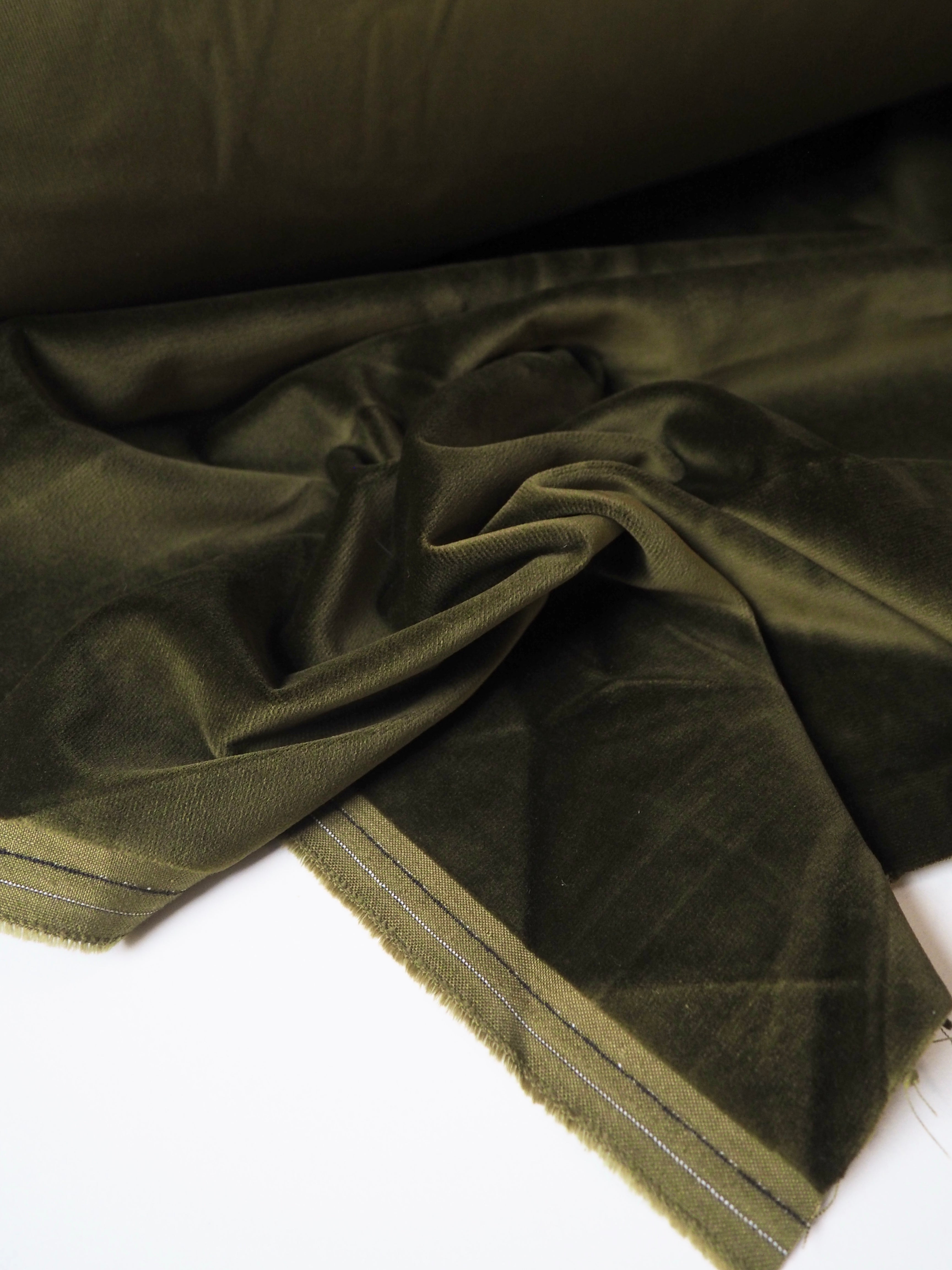 This ex-designer fabric is a rich velvet. It's so soft to the touch and has a beautiful sheen with a cotton canvas backing. The pile is dense and looks so luxurious. Medium to heavy weight and a wonderful mix of structure and great drape. Gorgeous for a patchwork, cushions, or garments! This velvet has pile damage, some areas more than others. The price reflects this. Steaming and brushing the velvet should help revive the velvet and bring back the natural softness and smooth finish, but we cannot guarantee this will work on all areas.