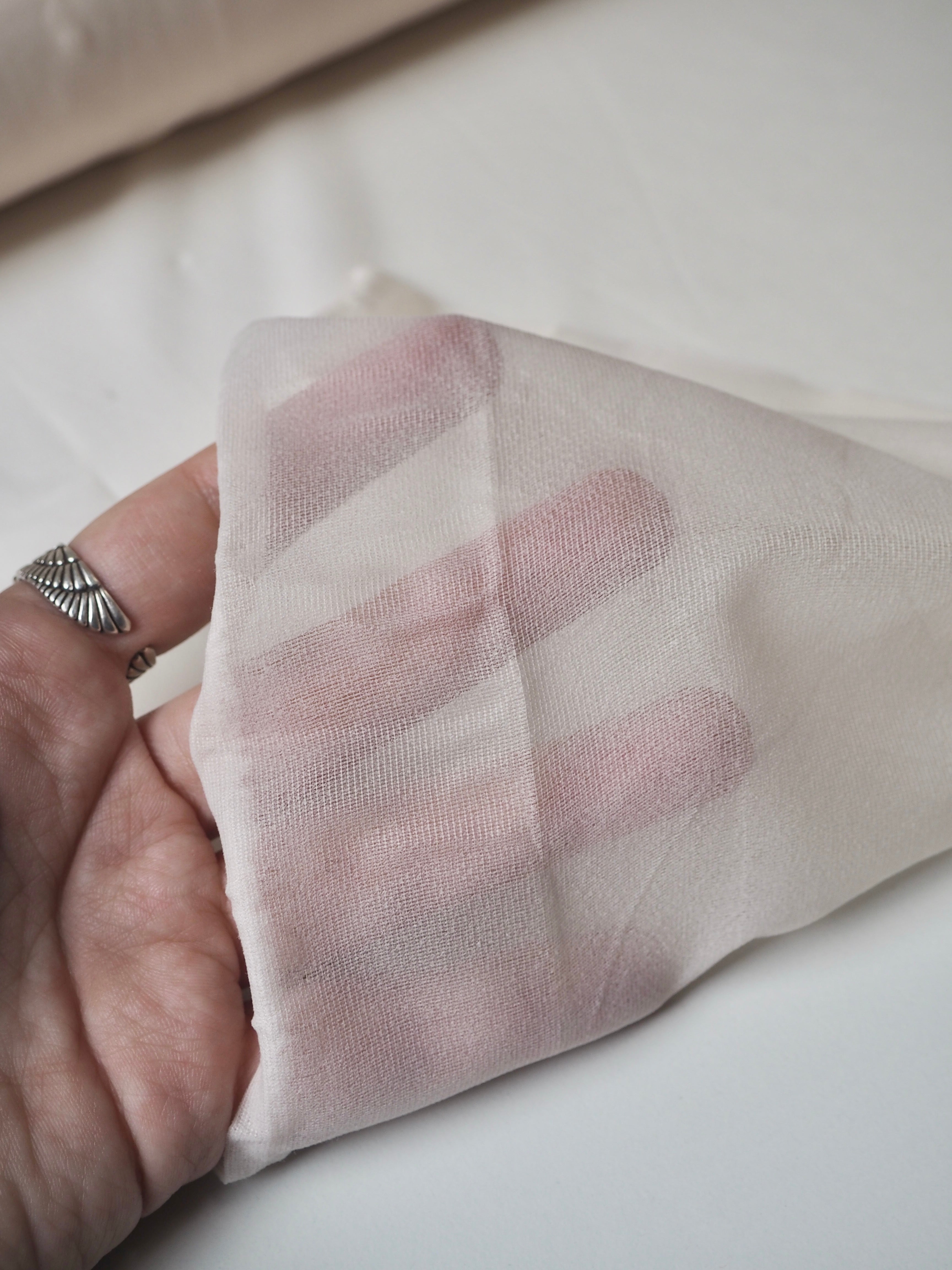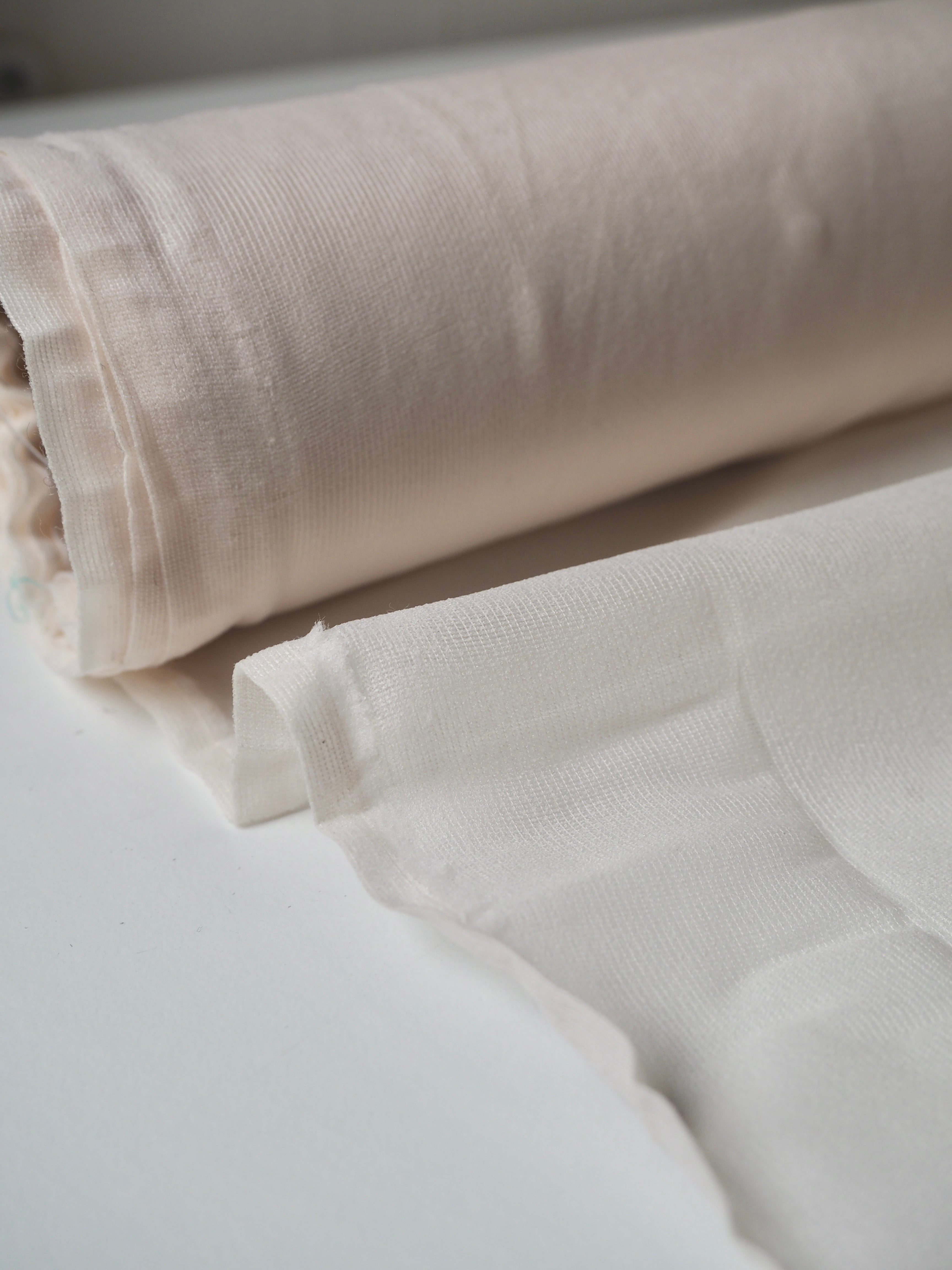 This ex-designer fabric is an interfacing. It has a soft handle on the finished side, and a fusible reverse. Lightweight, with a semi-sheer finish and beautiful, easy drape. Great to add extra support to a variety of fabrics, especially silks and cottons!