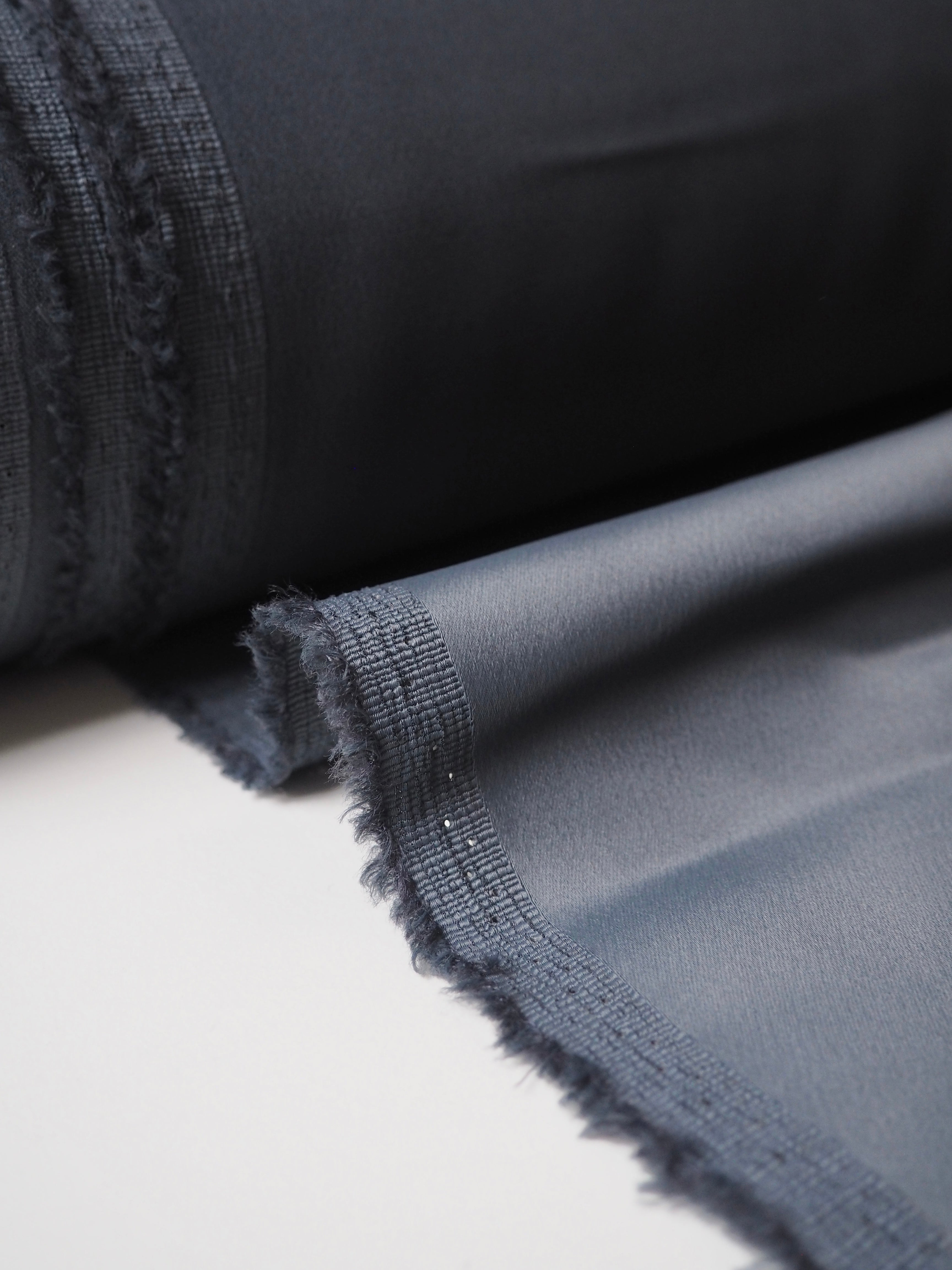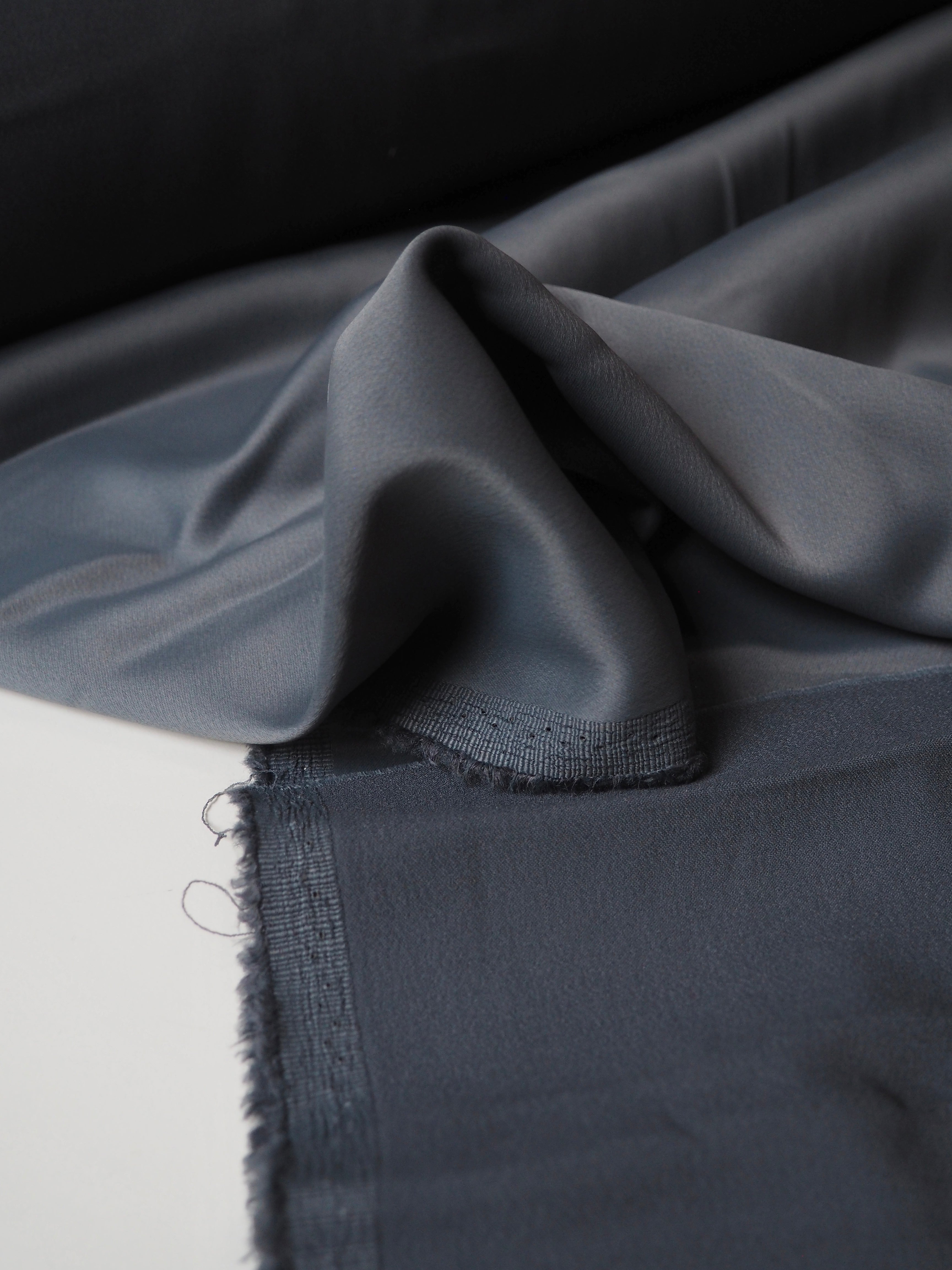 Blue Grey Stretch Viscose/Acetate Crepe-Backed Satin