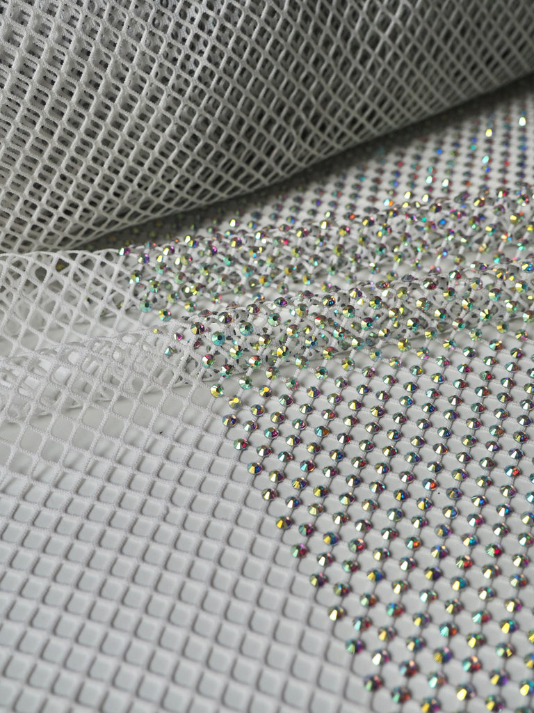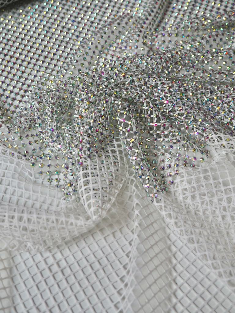 This incredible white lace fabric is made up of fine delicate strands of white and silver. With a subtle sparkle and a pure white colour, this would be perfect for a bodice or skirt overlay on a bridal dress. Amazing quality, unusual fabric. Sourced from a high-end bridal designer.