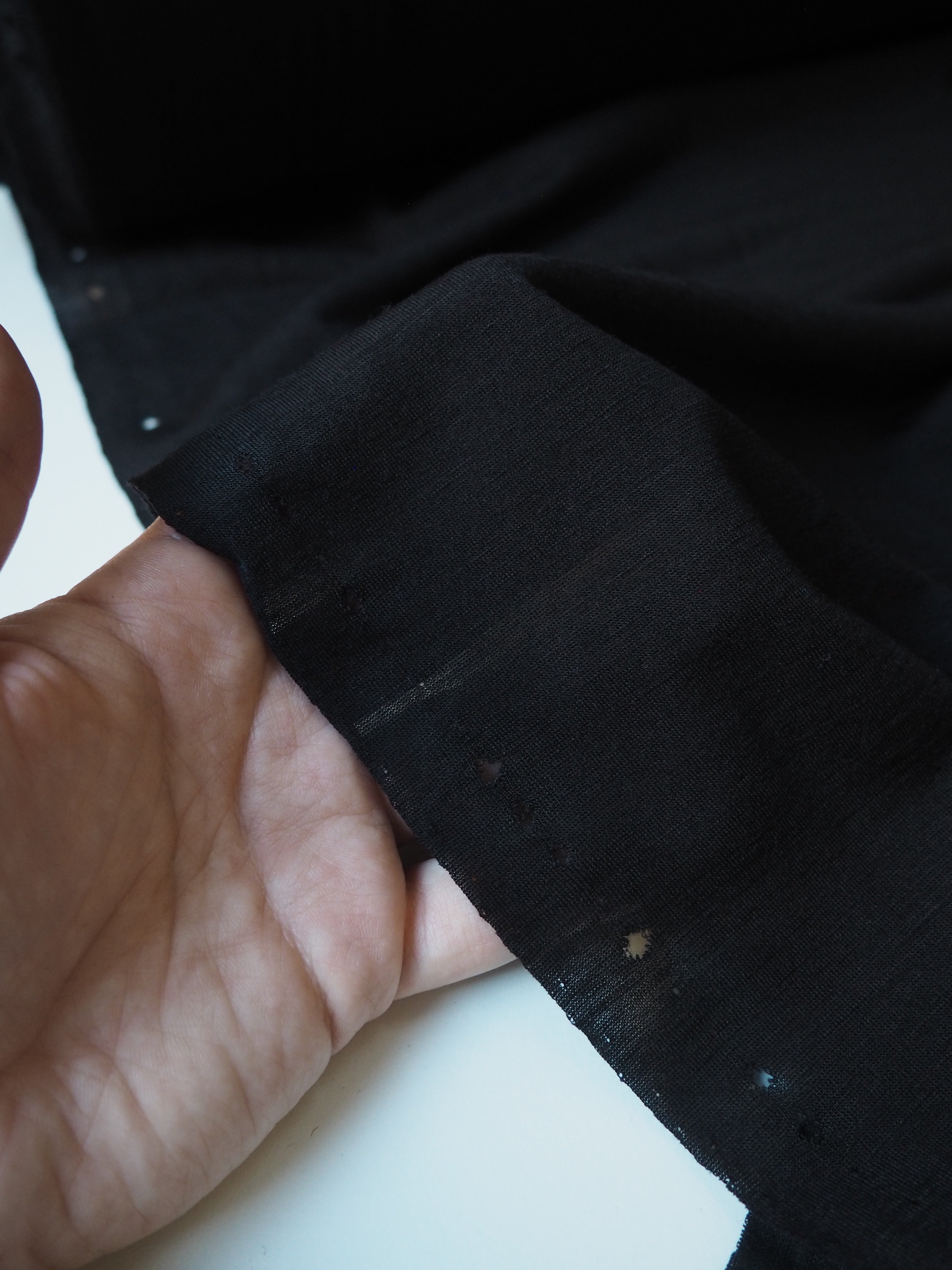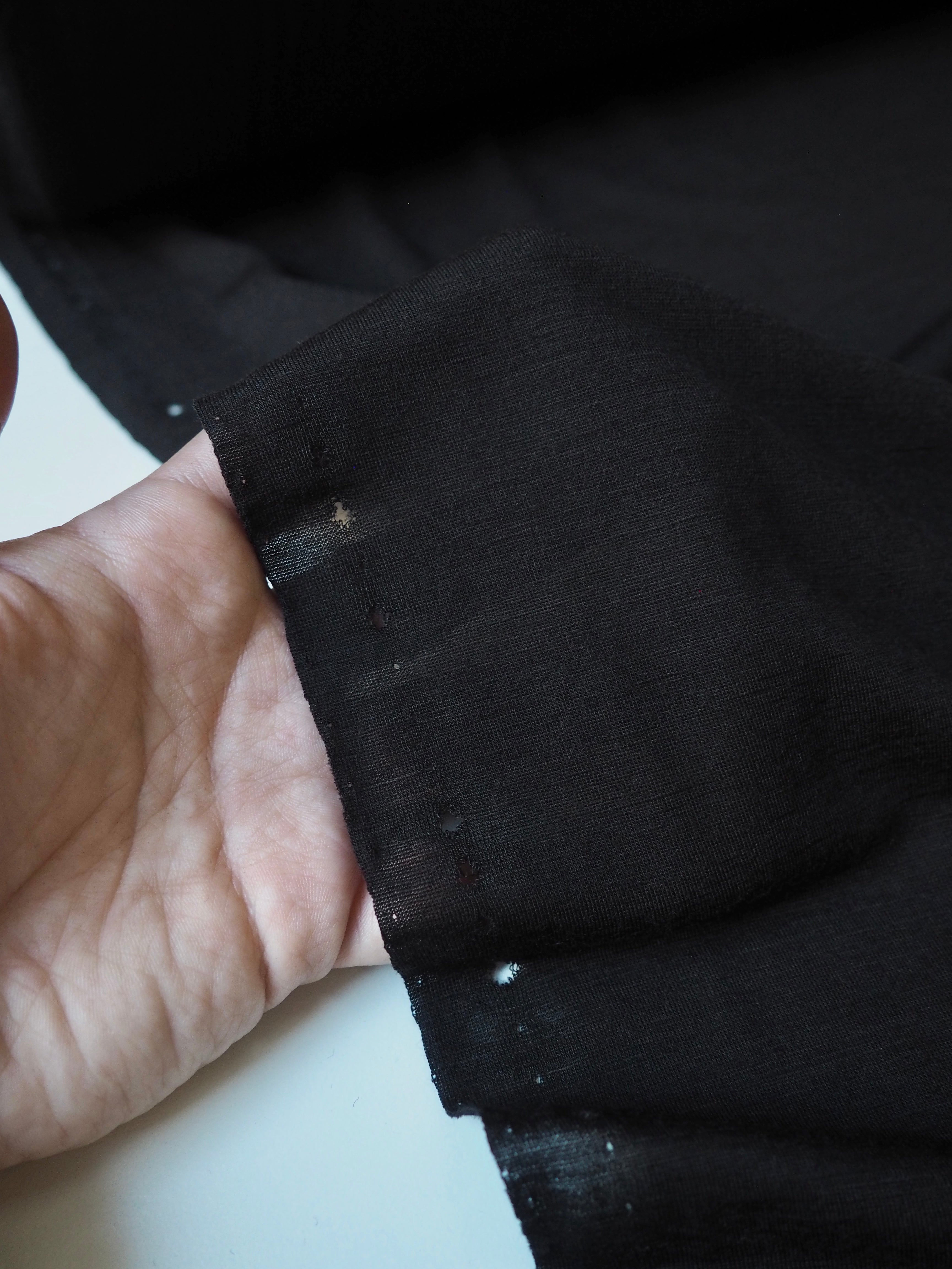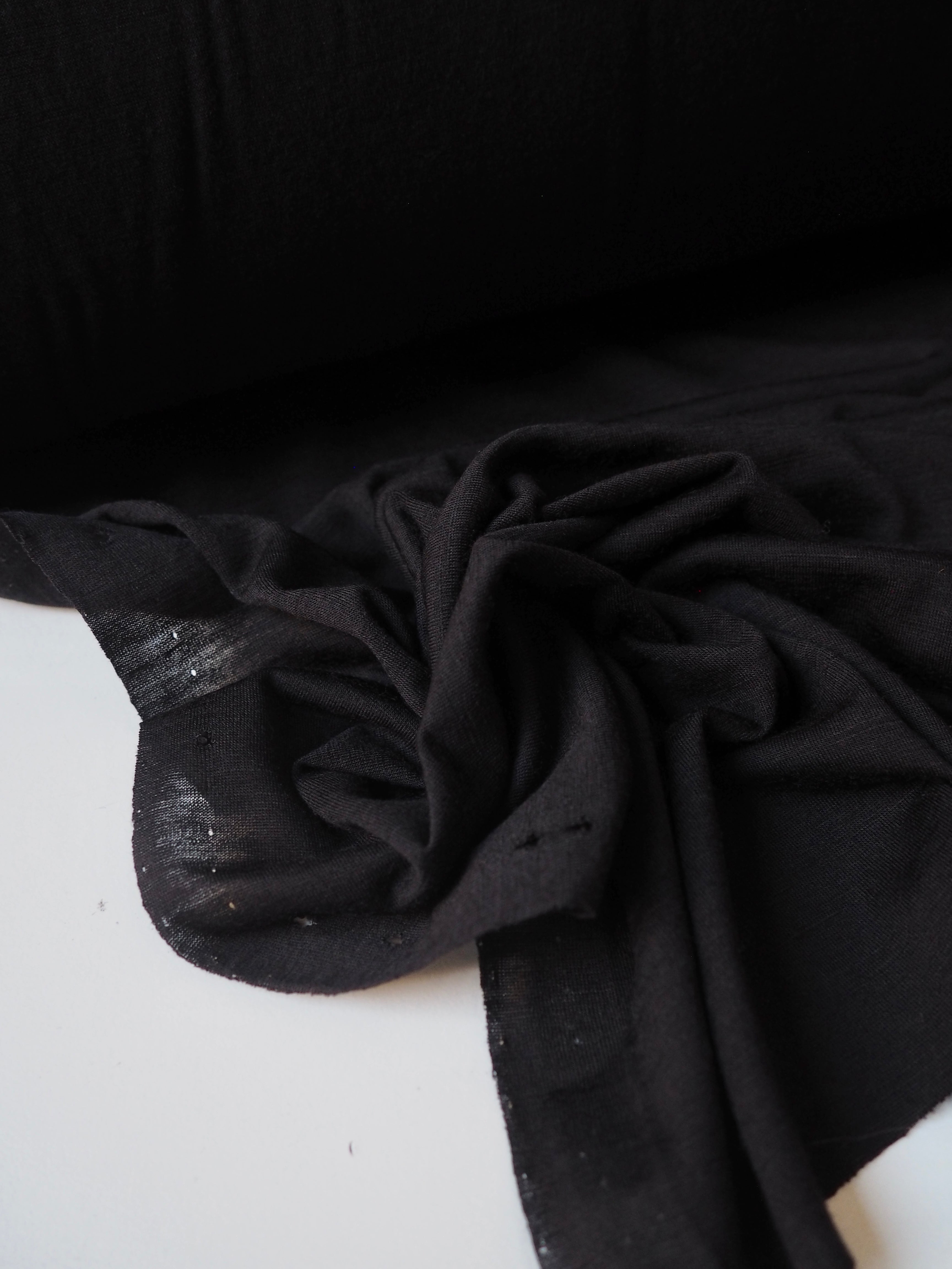 This ex-designer fabric is a wool jersey. This t-shirt jersey is a finer weight, in a super warm wool blend. Lightweight with a gentle drape. It's slightly sheer, and has a lovely light wool handle. Ideal for layering staples!