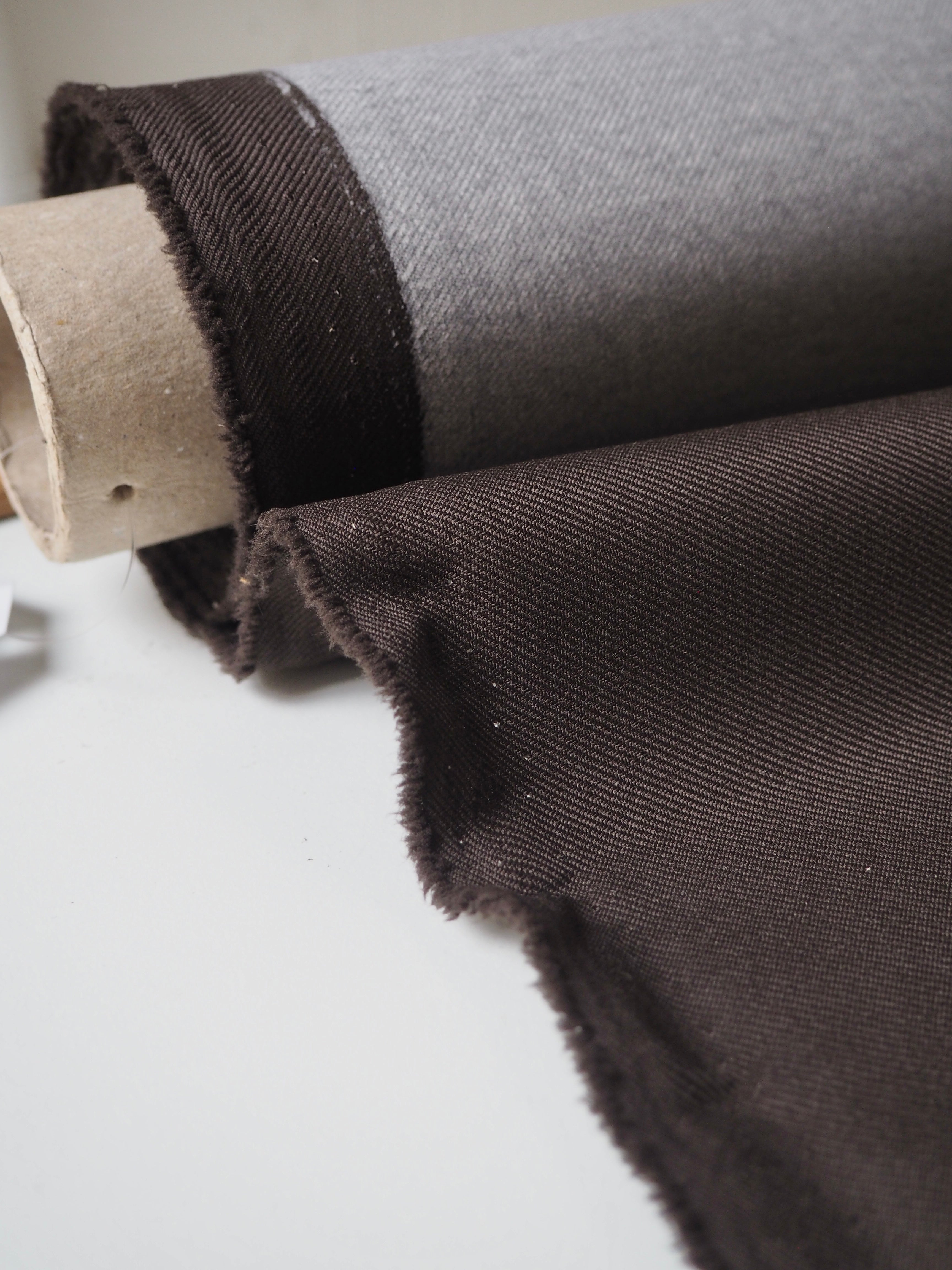 This ex-designer fabric is a twill. It's brown with a coated backing. Lightweight with a typical twill weave and sturdy handle. It's a very structured cloth made for furnishing projects, but can be used as you like!