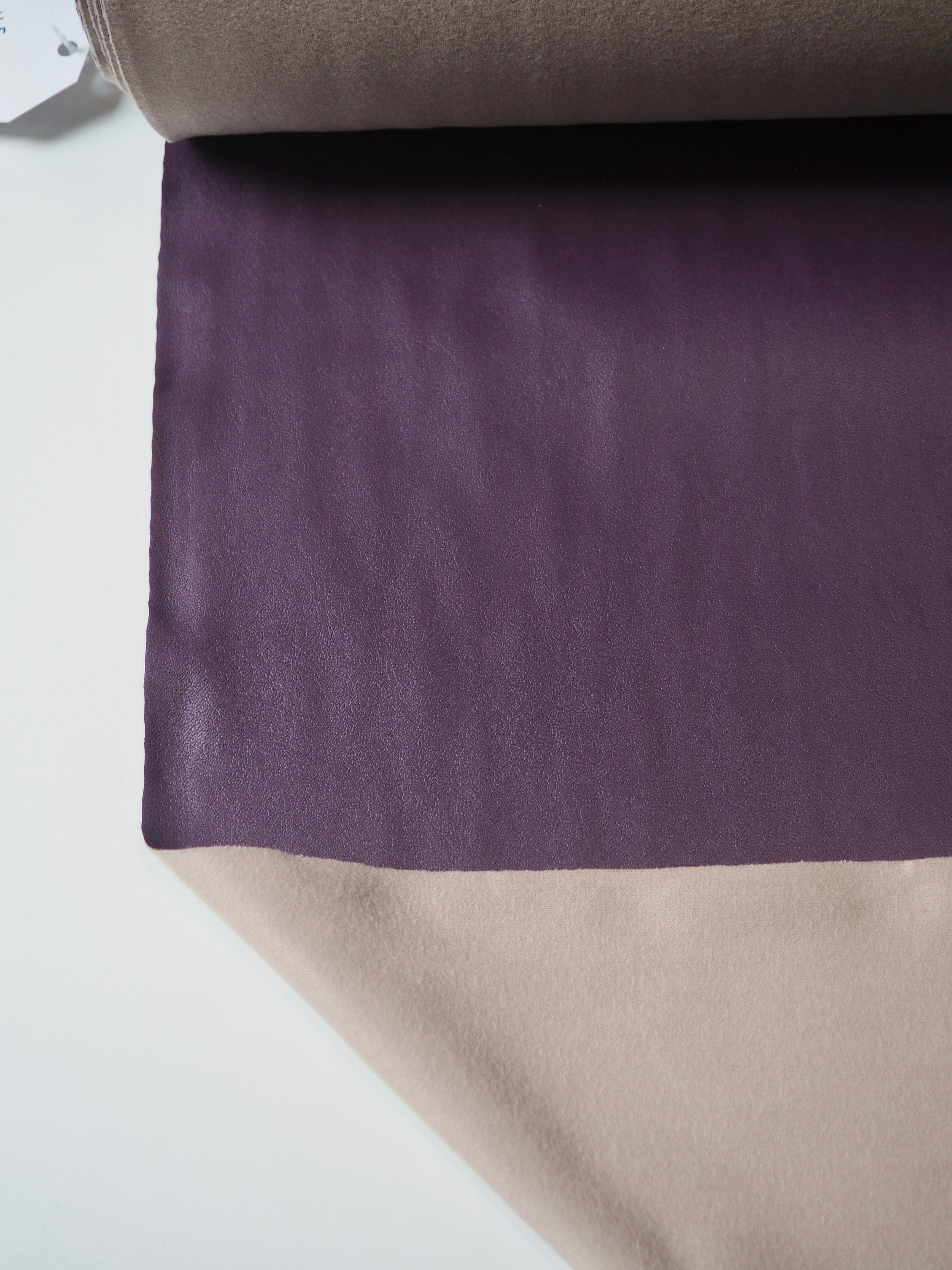 This ex-designer fabric is a stretch pleather, or vegan leather. Light to medium weight and smooth, it is made from a thin polyurethane coating on a jersey backing. It has a flat finish. Approximately 30% width way stretch and great recovery. Would be perfect for form fitting garments as the stretch means you can move with ease. We would love this in a little mini skirt or even a light trench!