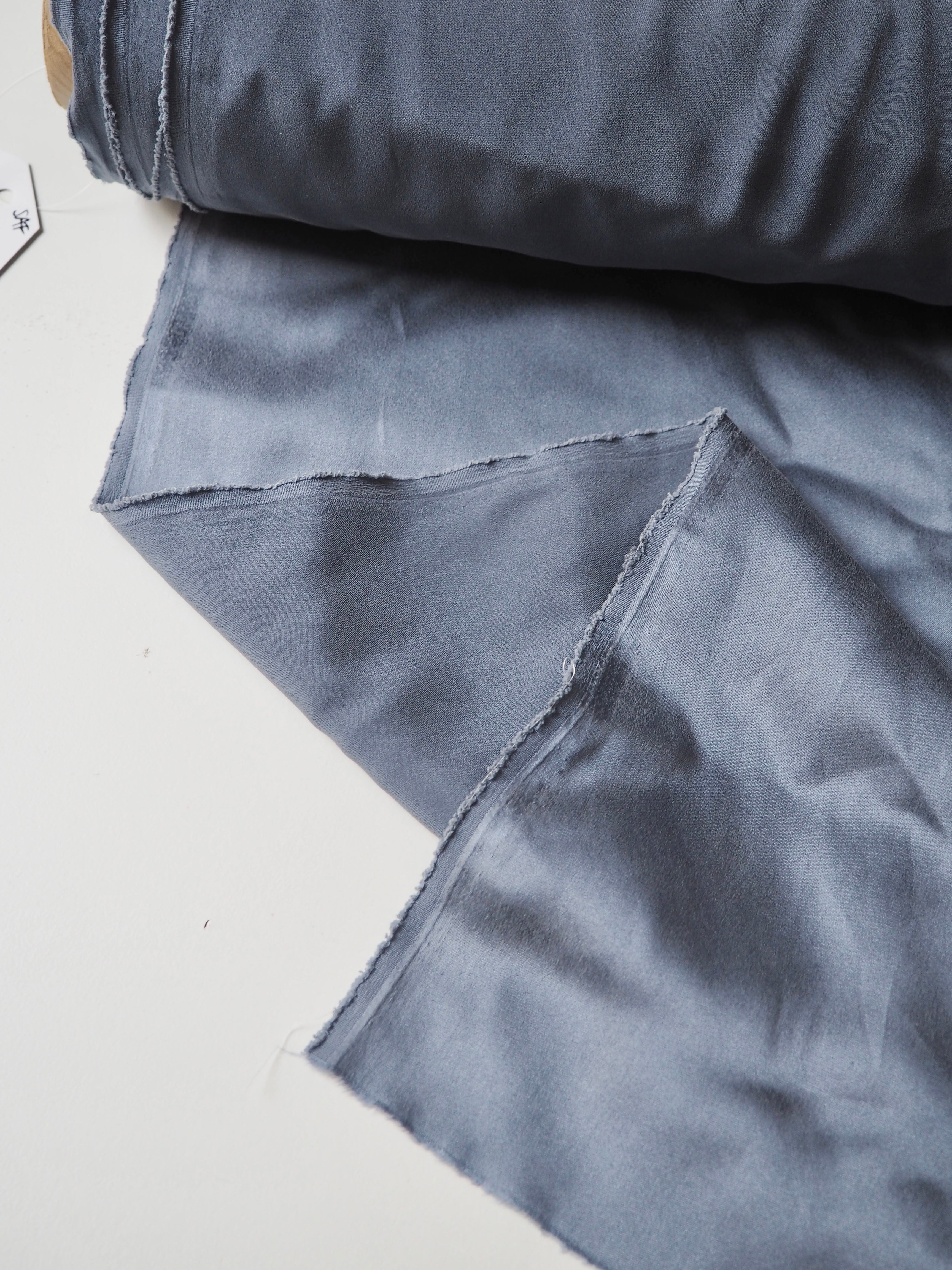 This ex-designer fabric is a washed silk. It's a luxuriously soft silk, with a washed finish. This makes the silk drape better and softens it. The stretch gives it more versatility, with about 15% width-ways. It has incredible liquid movement! Super lightweight and opaque. Such a wonderful handle, feels so fantastic to the touch! Perfect for skirts, blouses, and lingerie!