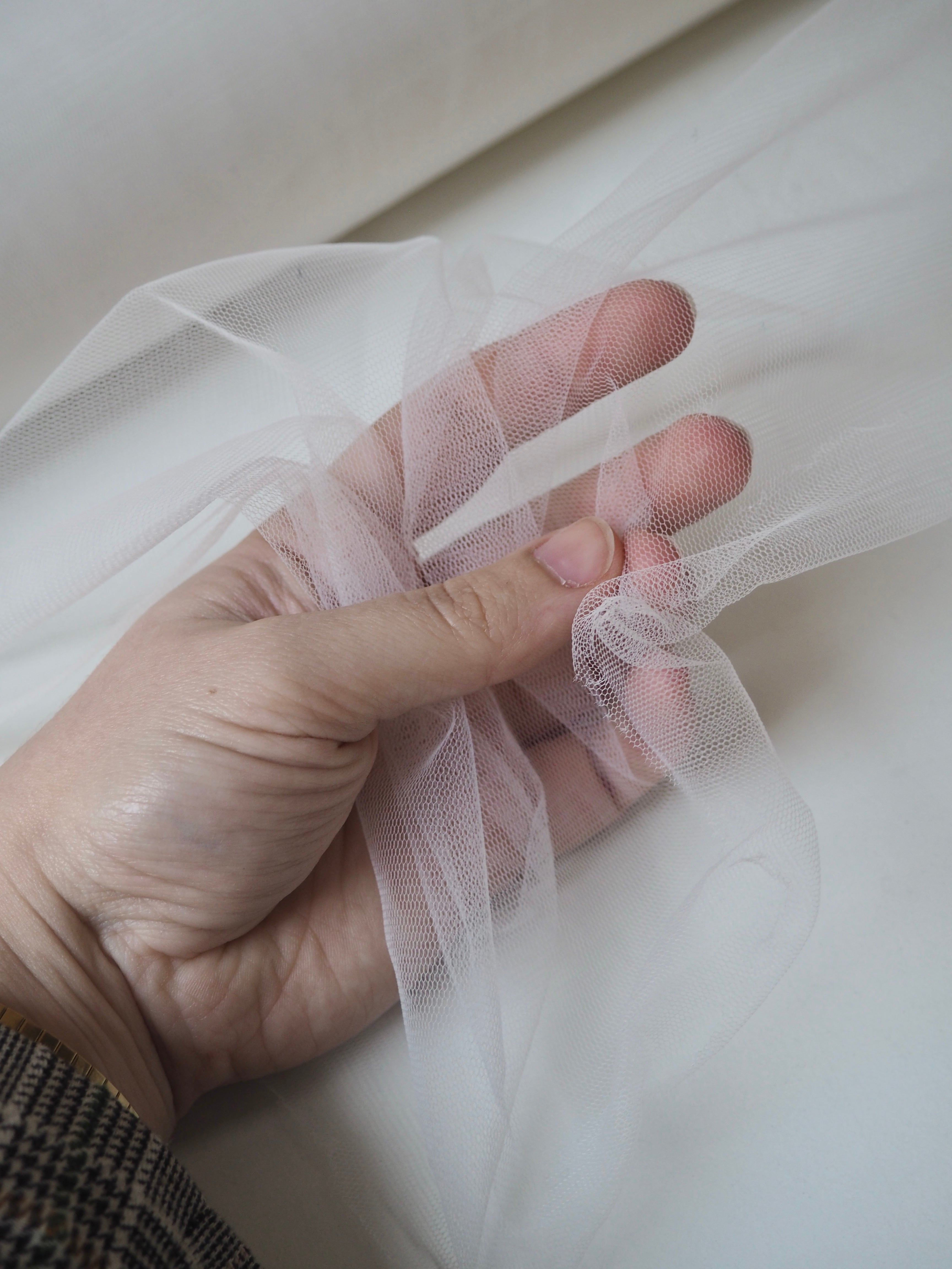 This ex-designer black tulle is fine and has a nice soft structure. Woven from a network of tiny interconnecting hexagons which gives it the characteristic net like appearance. Lightweight with a soft drape and soft handle. Perfect for a veil!