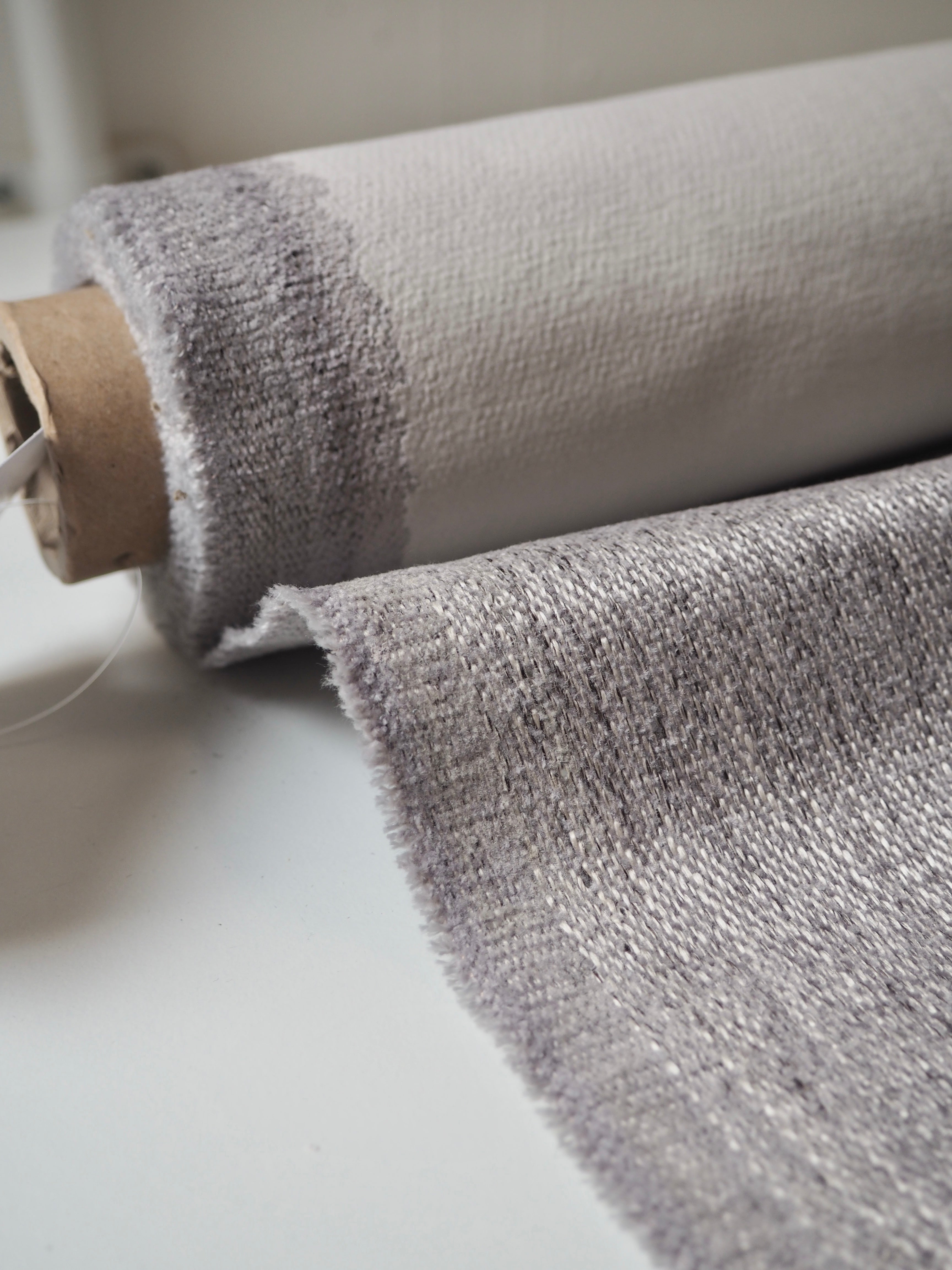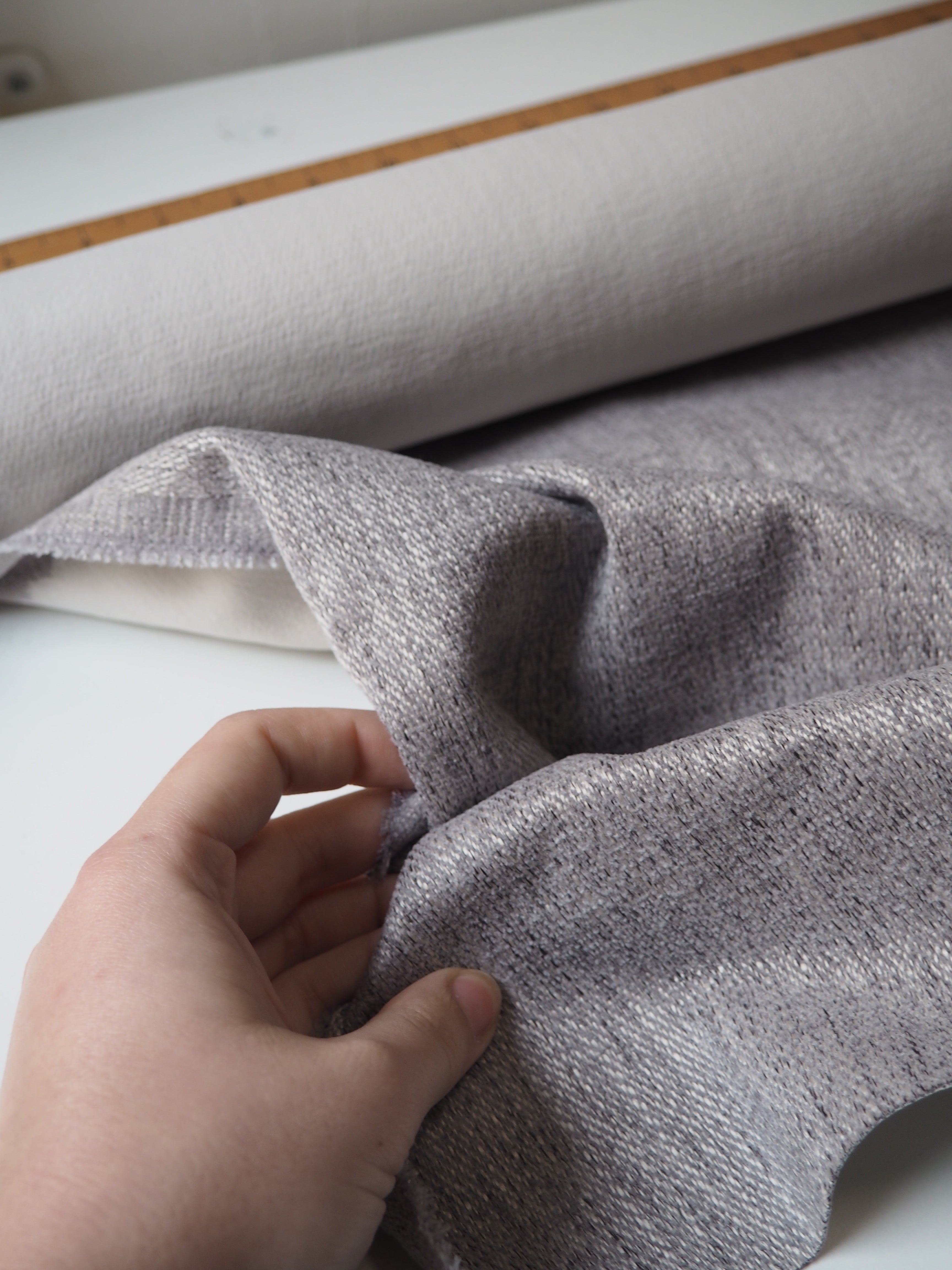 This ex-designer fabric is a furnishing. It has sturdy plain weave and nice visual texture, in a light grey marl mix. Medium weight with a great structure. Has a soft handle and medium coating on the reverse. Optimal for home furnishing projects! Would love to see this on a footstool!