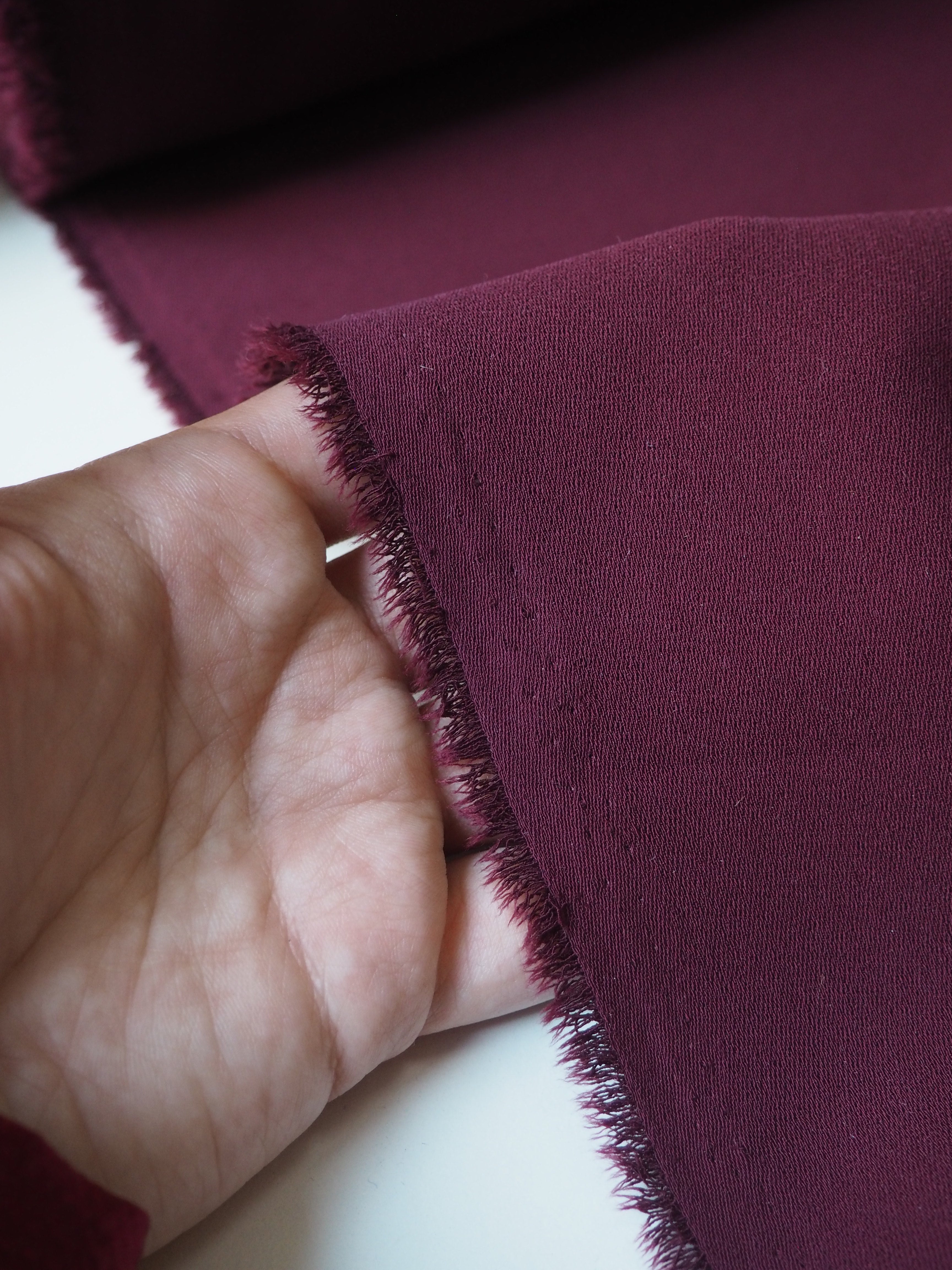 This ex-designer fabric is a crepe. It's medium weight with great movement and drape. Has a lovely comfortable handle, with a typical crepe texture. Opaque. Perfect for dresses and tops, and even trousers!