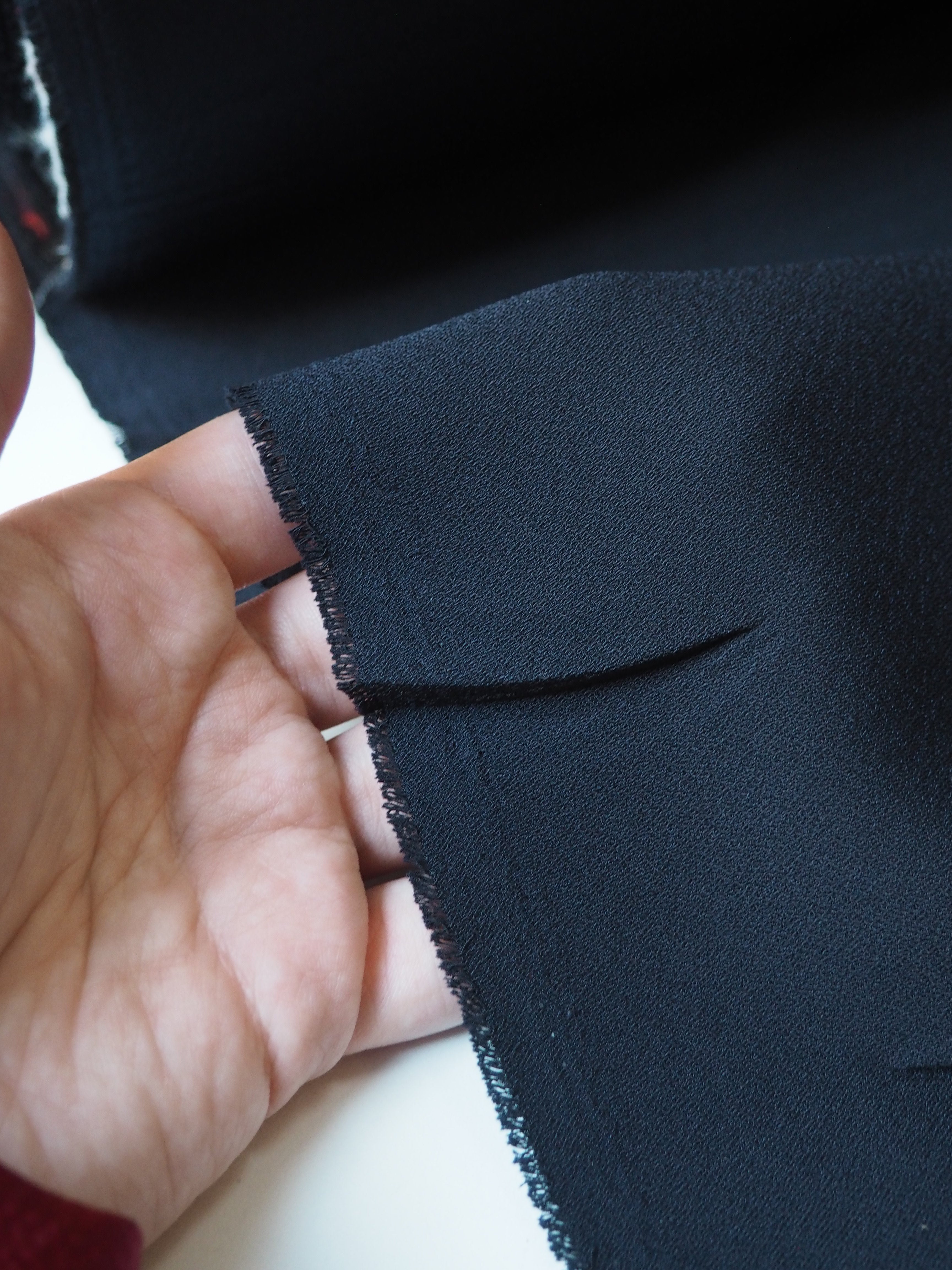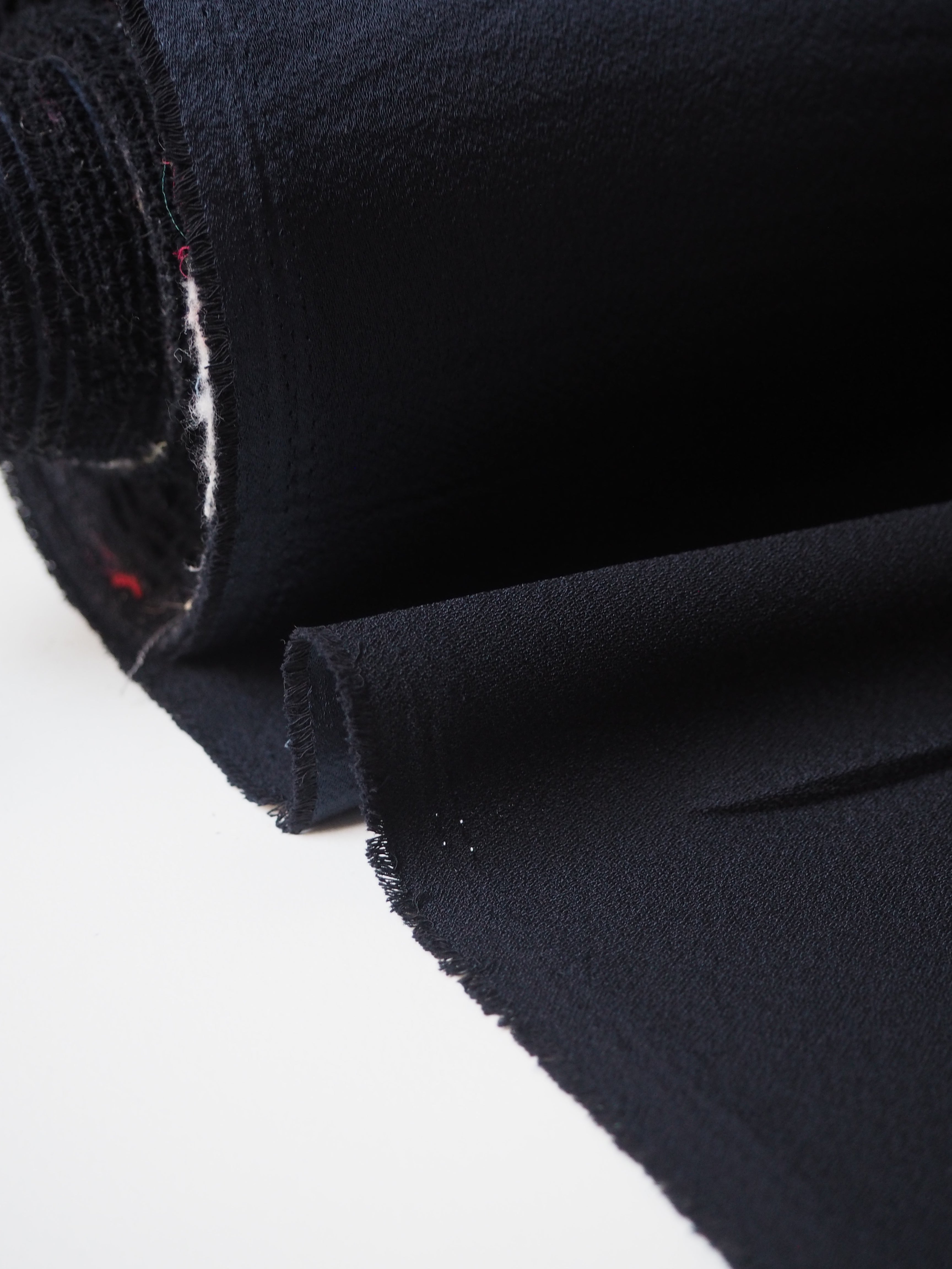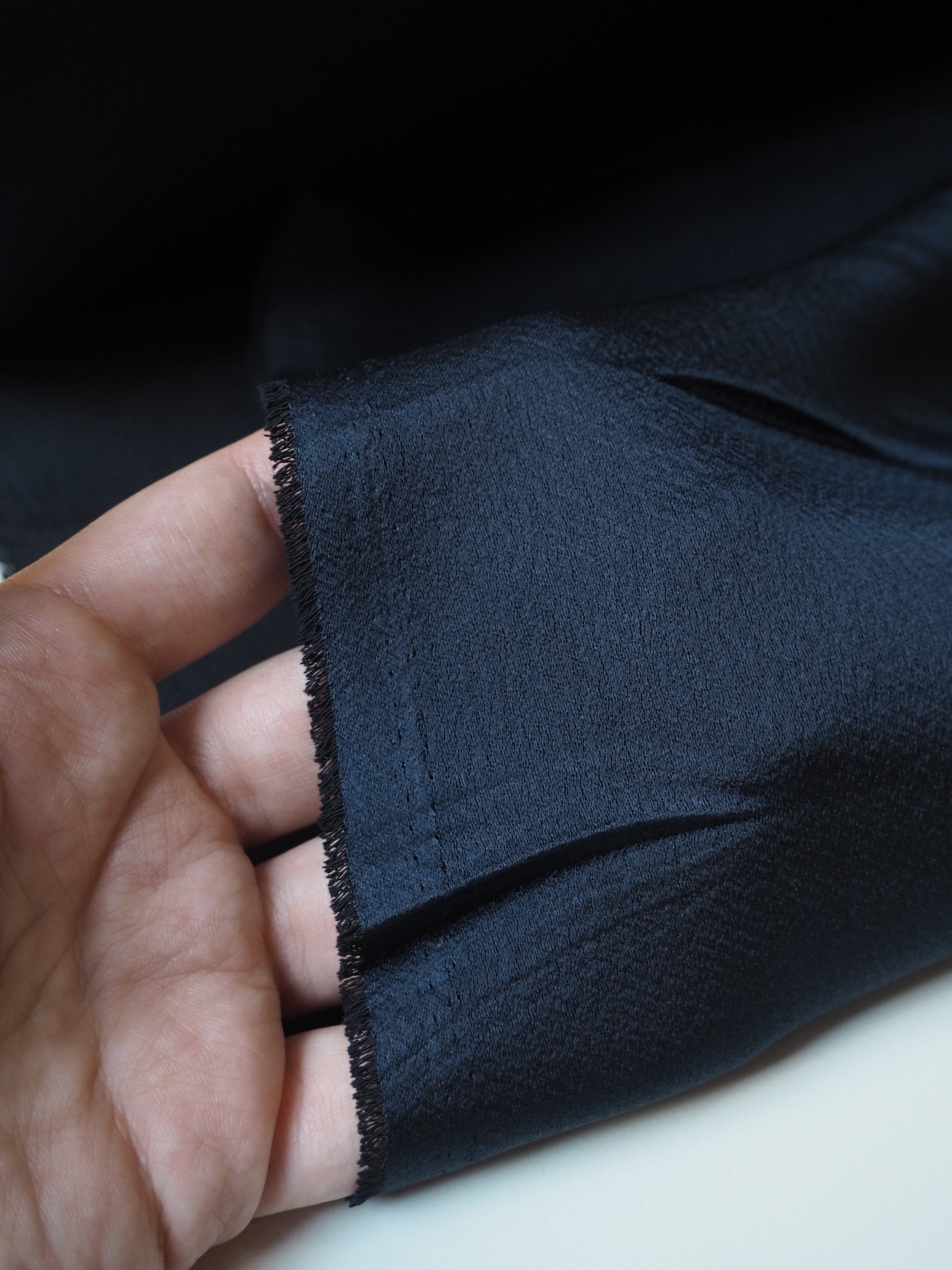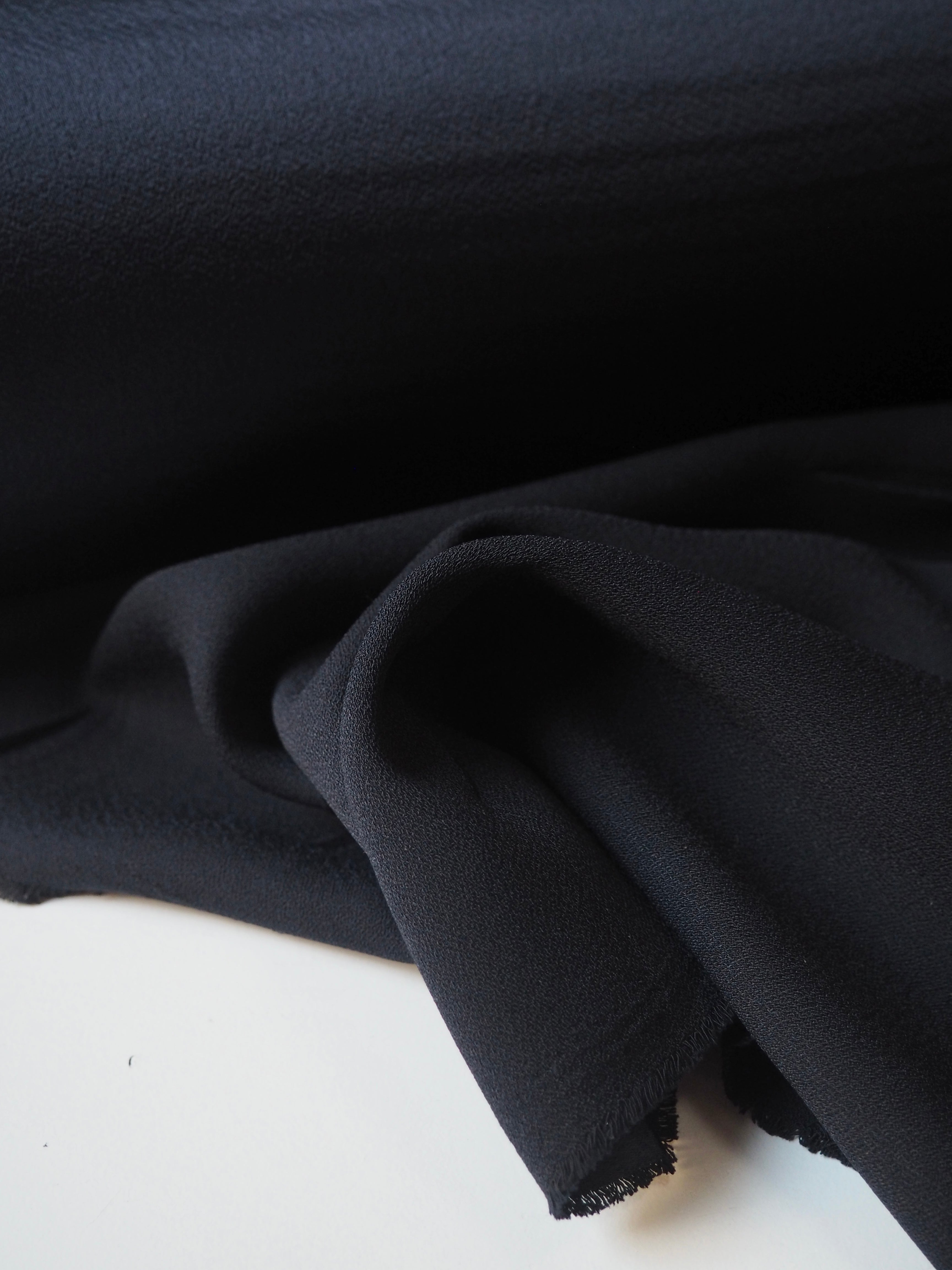 This ex-designer fabric is a crepe backed satin. It's in a strong and breathable acetate fibre. It's lightweight with wonderous movement and fantastic drape. Has a beautiful top satin sheen and the loveliest handle, with a soft crepe back. Perfect for dresses and tops, we think it would be perfect for a bias cut slip dress!