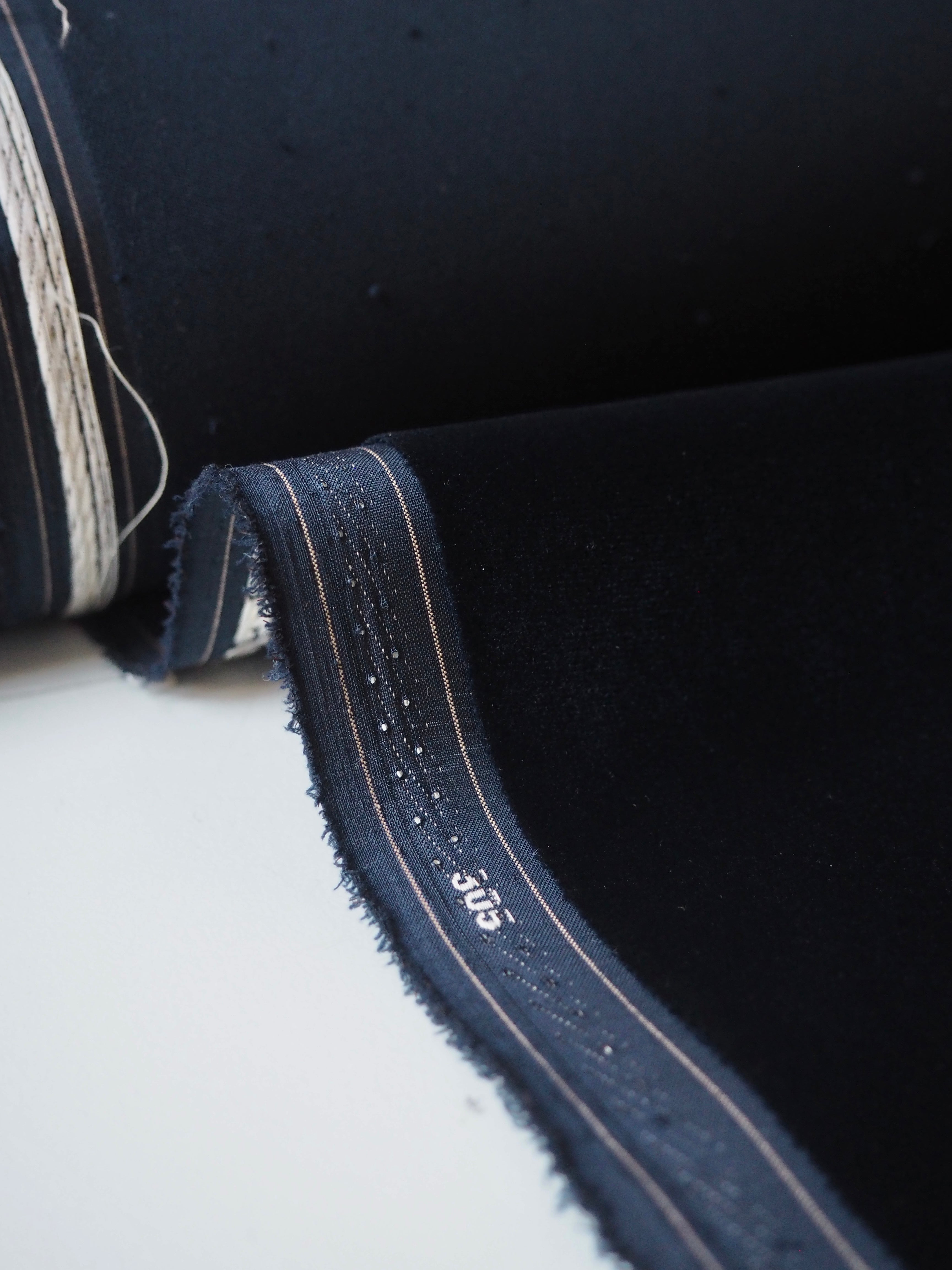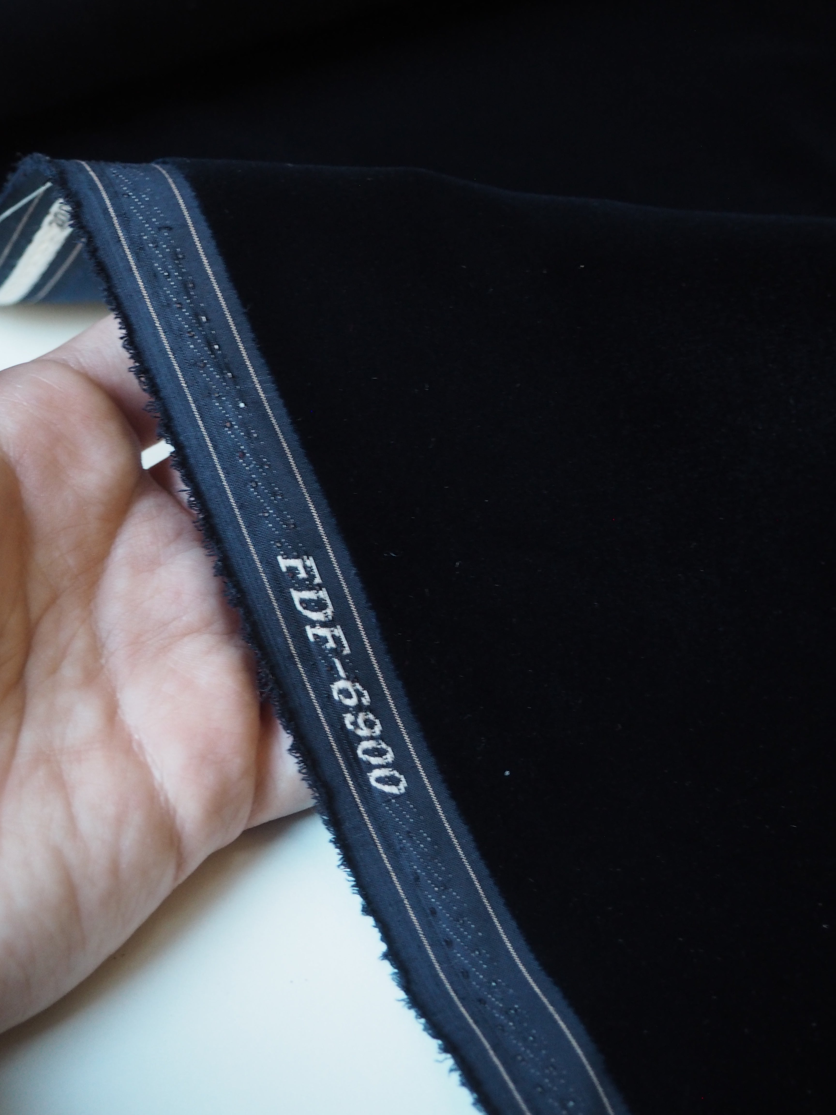 This ex-designer fabric is a velvet. It is incredibly soft and lovely. It's opaque, with such a beautiful sheen. Has a light pile that is wonderful to handle. Light to medium weight and with a beautiful drape and lovely movement. Perfect for a dress or even a blouse!