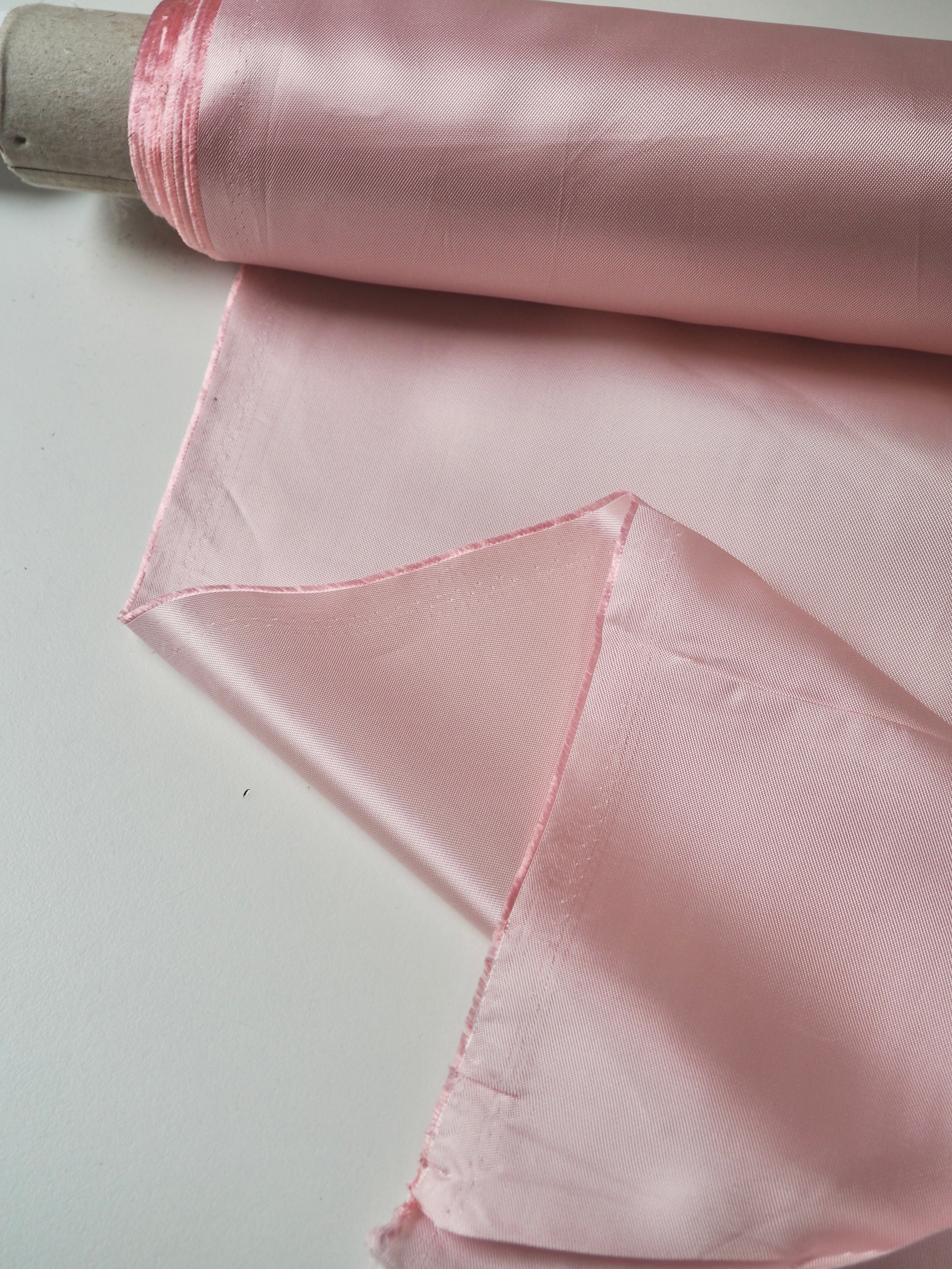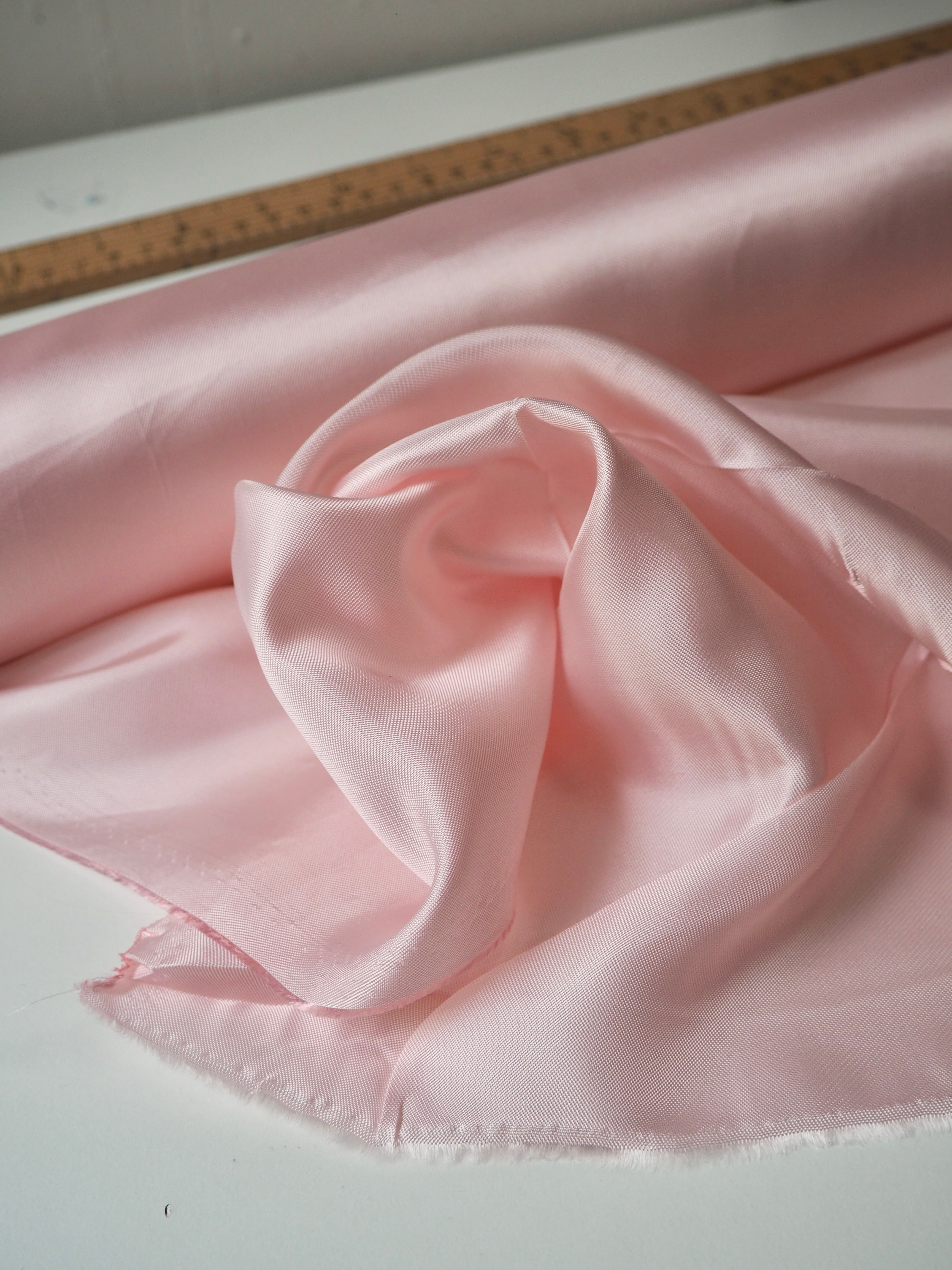 This ex-designer fabric is a viscose lining. It has a subtle twill weave in a smooth viscose fibre. Lightweight with a gentle structure and medium satin finish. Mostly opaque. Ideal for lining any garment!