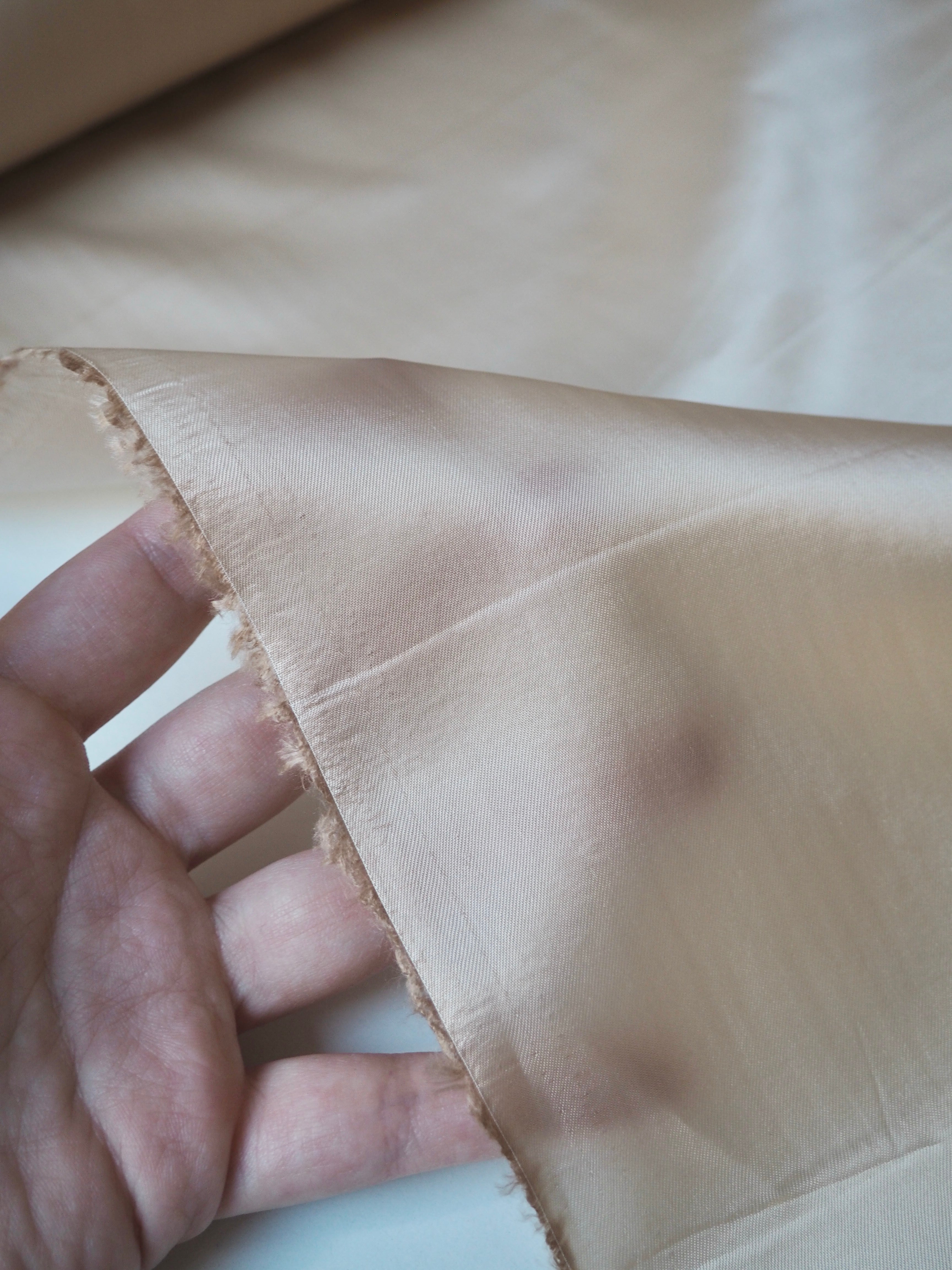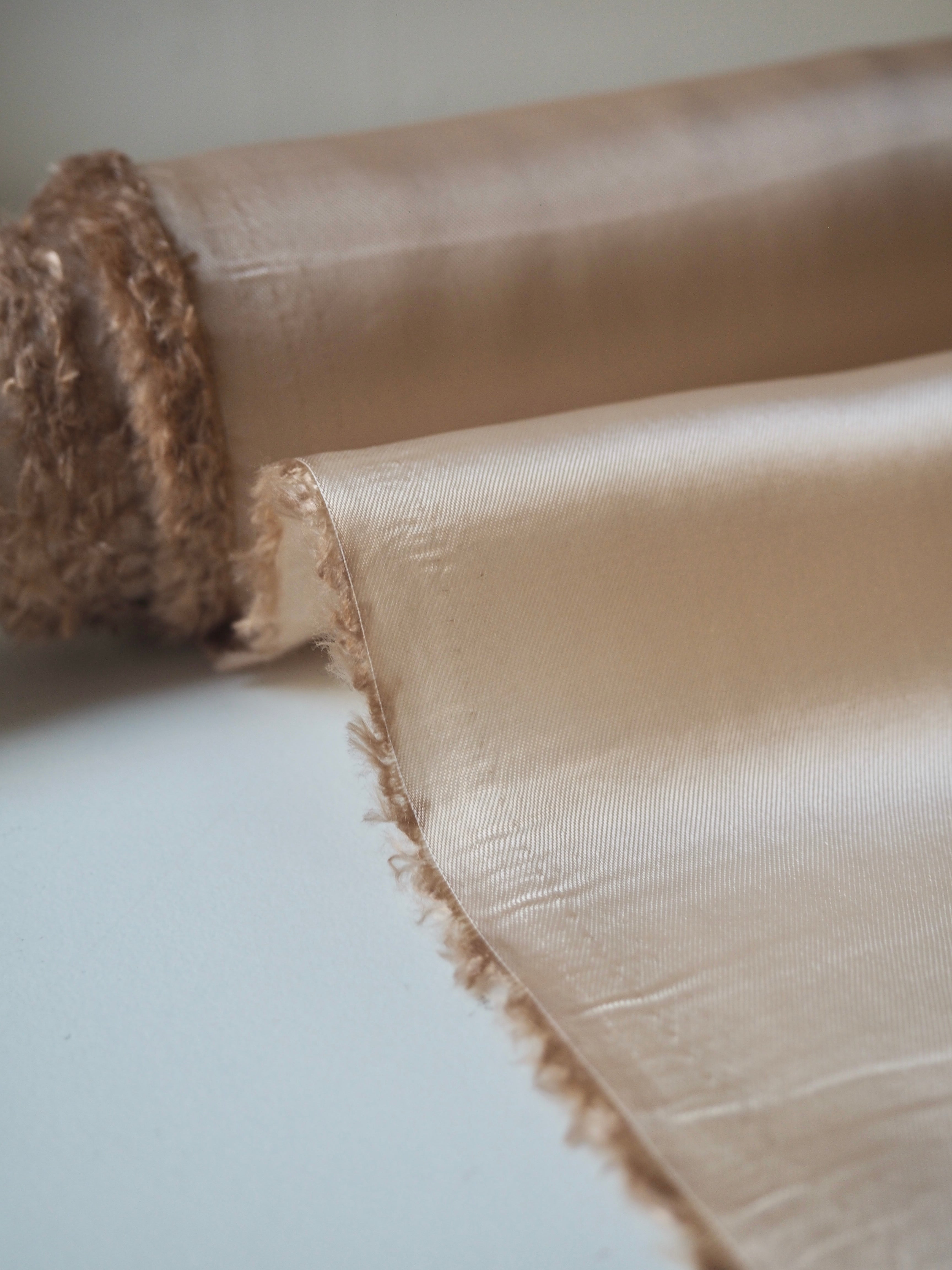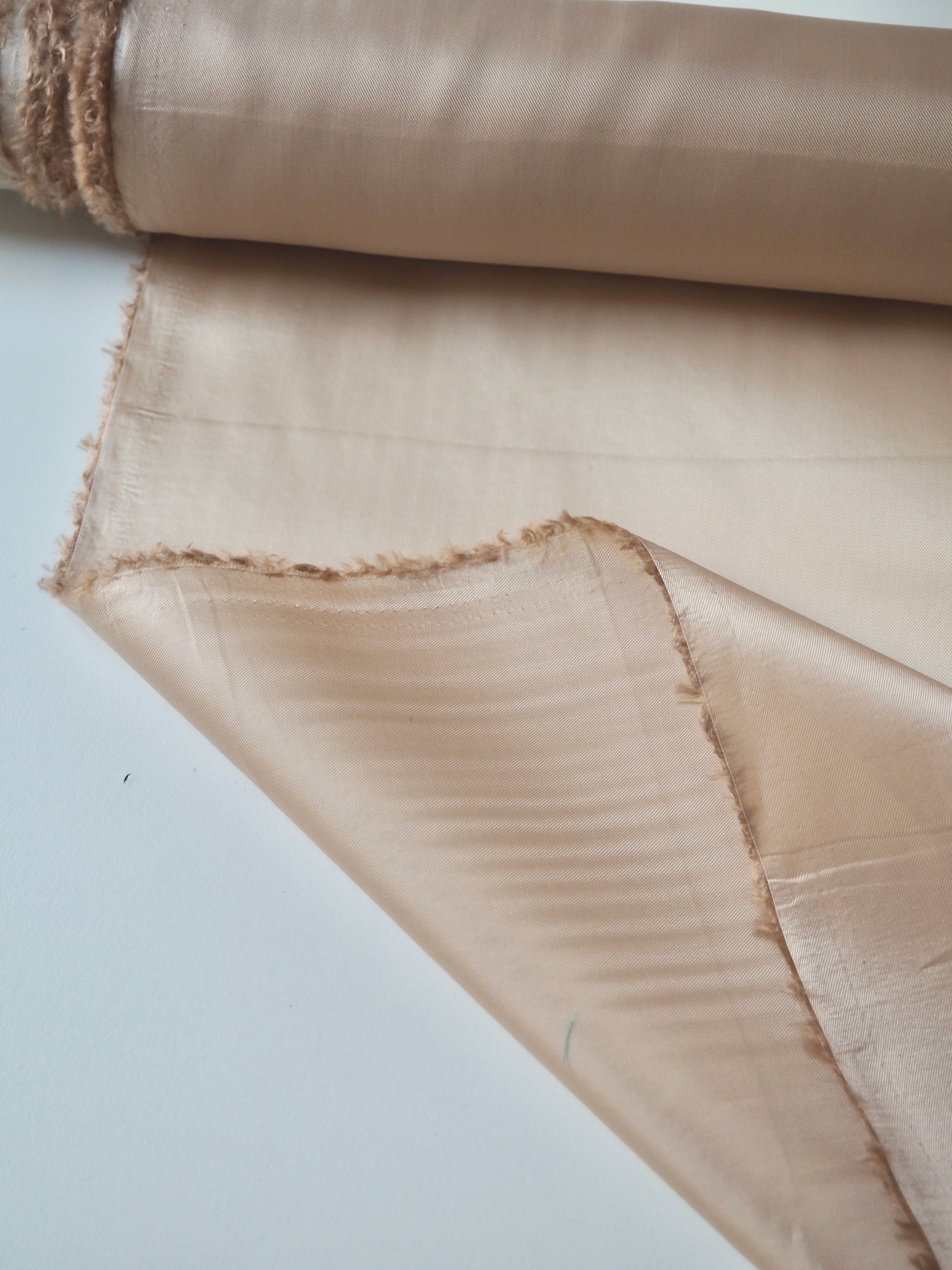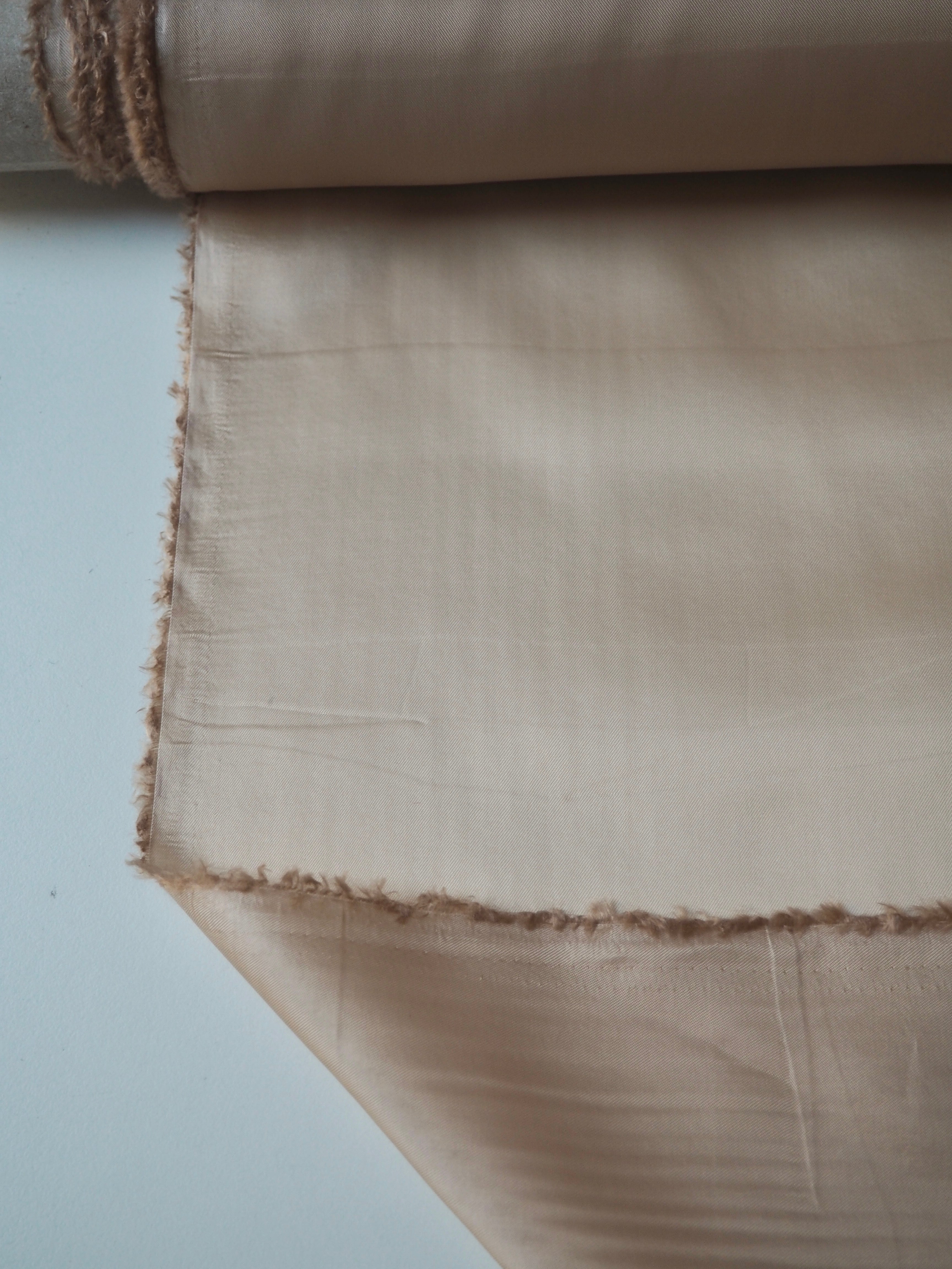 This ex-designer fabric is a viscose lining. It has a subtle twill weave in a smooth viscose fibre. Lightweight with a gentle structure and medium satin finish. Semi-opaque. Ideal for lining any garment!