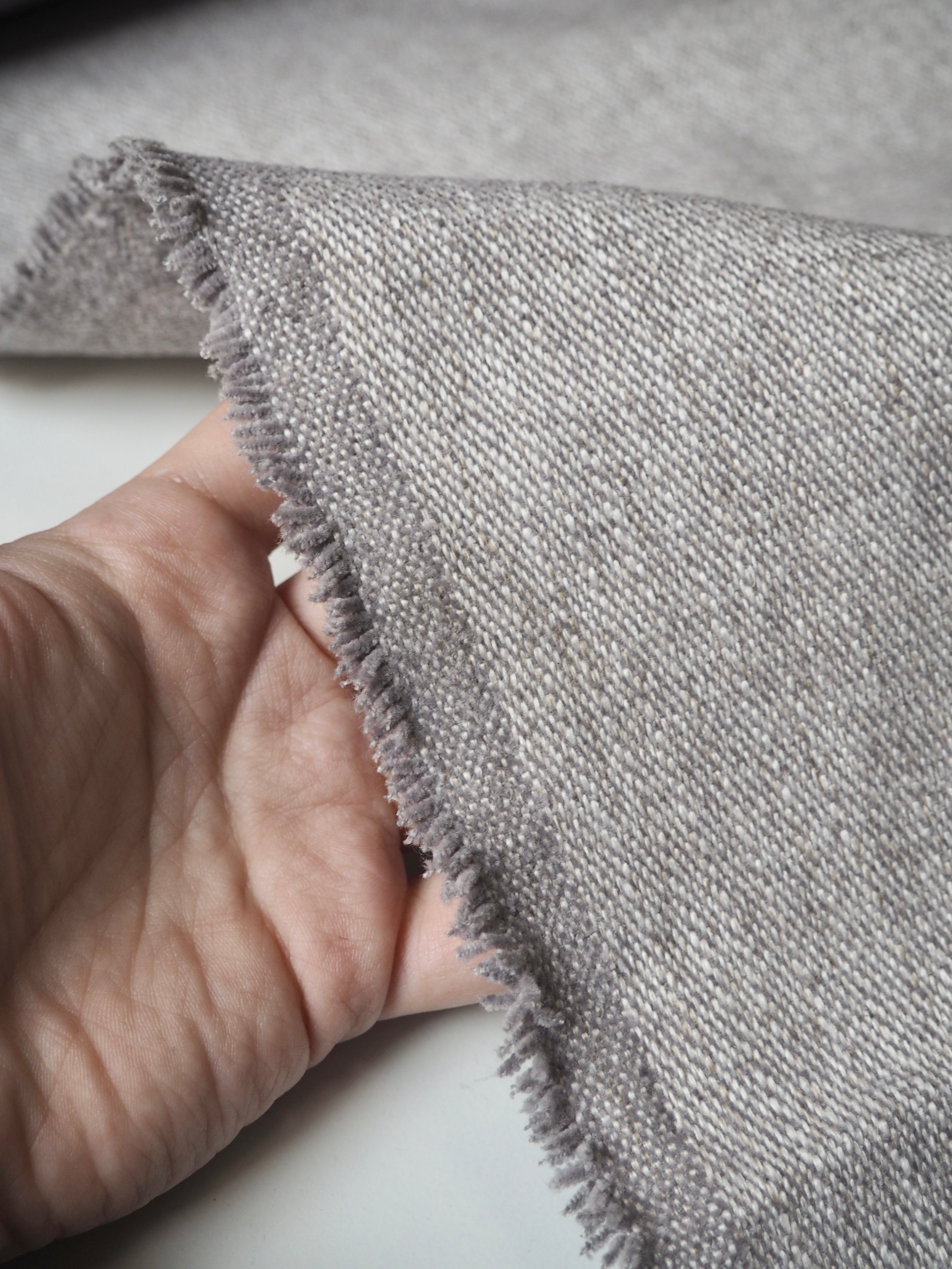 This ex-designer fabric is a furnishing. It has sturdy twill-like weave and nice visual texture, in a taupe and grey mix. Medium weight with a great structure. Has a soft handle and light coating on the reverse. Optimal for home furnishing projects! Would love to see this on a footstool!
