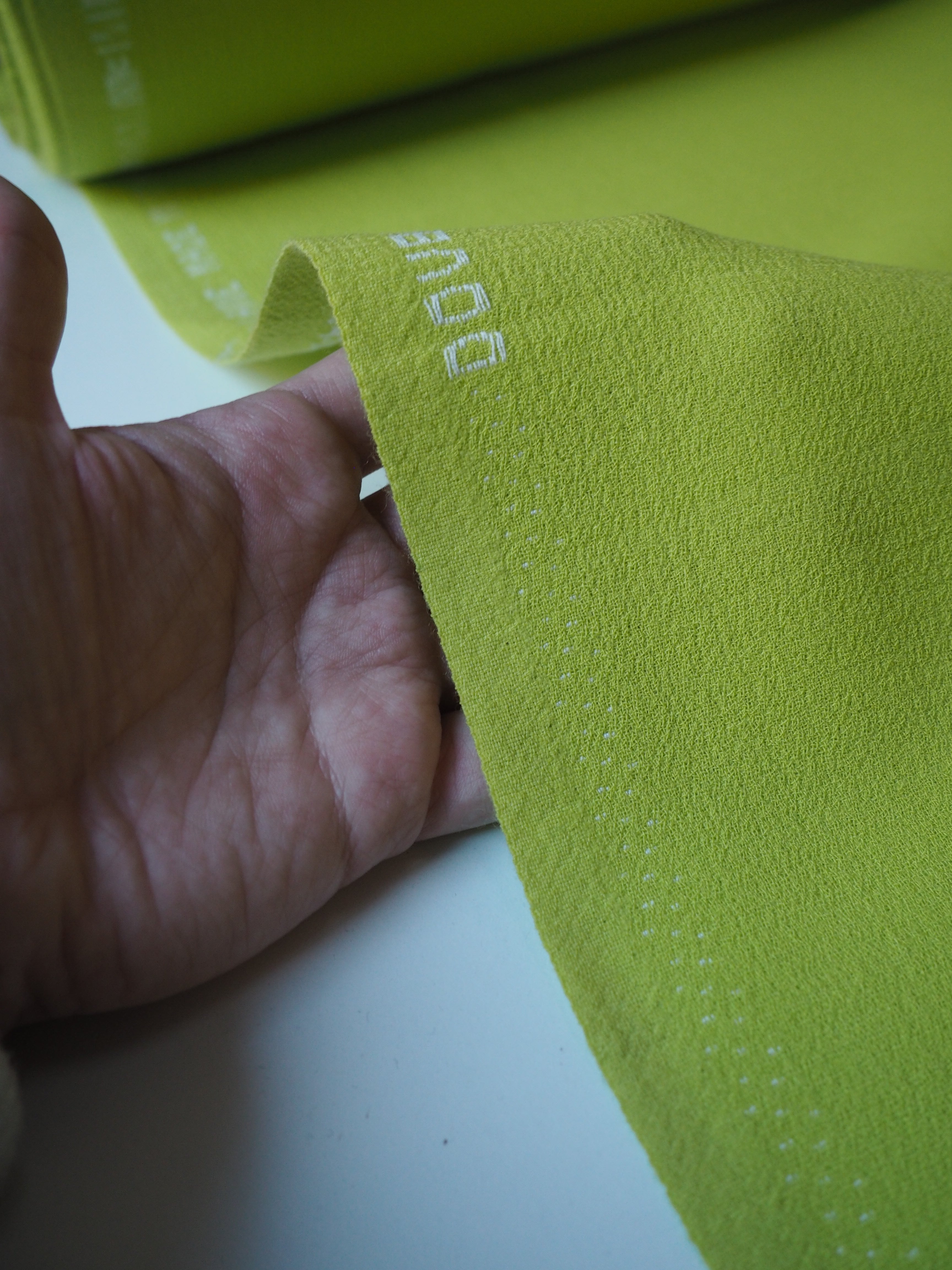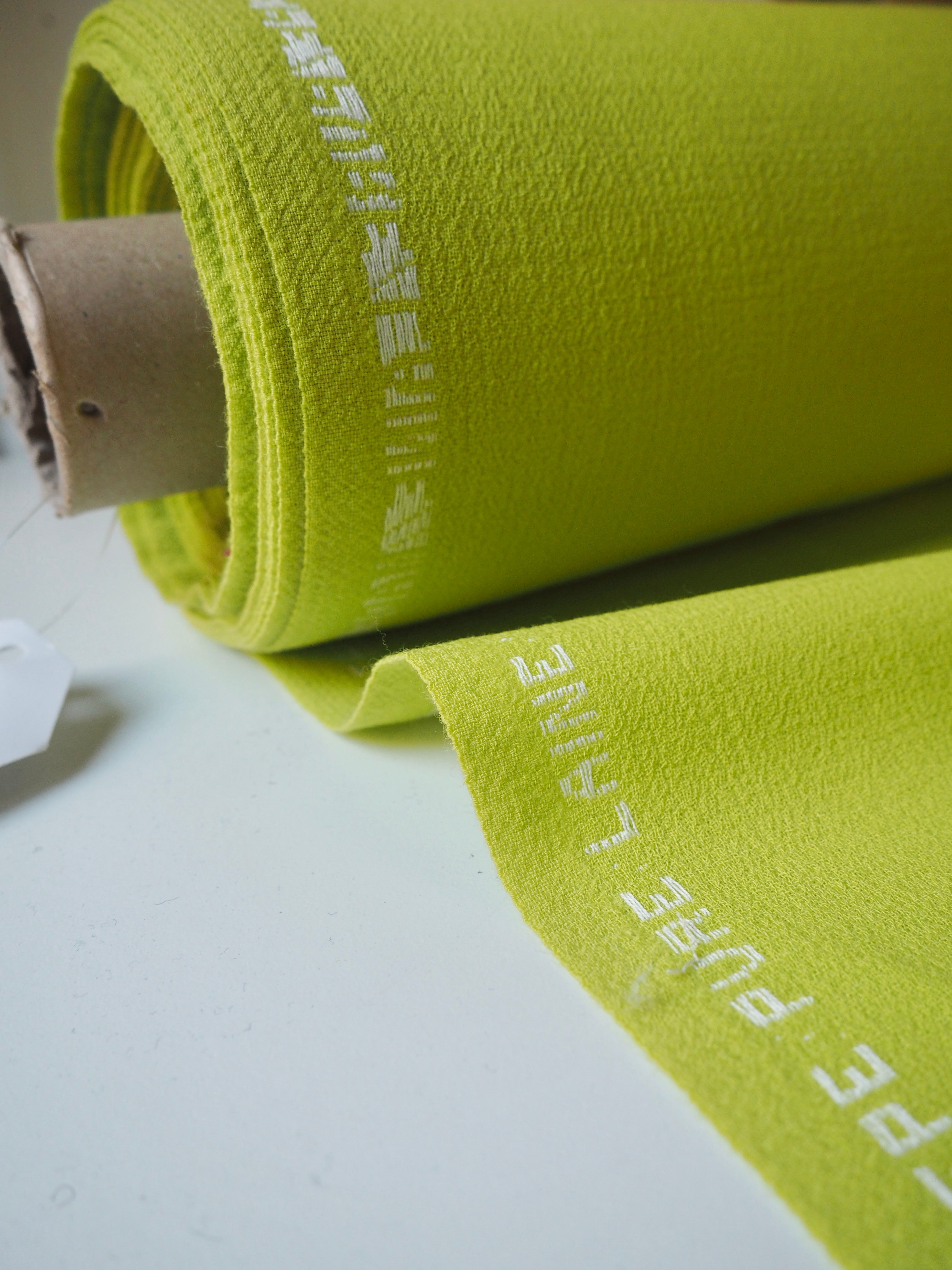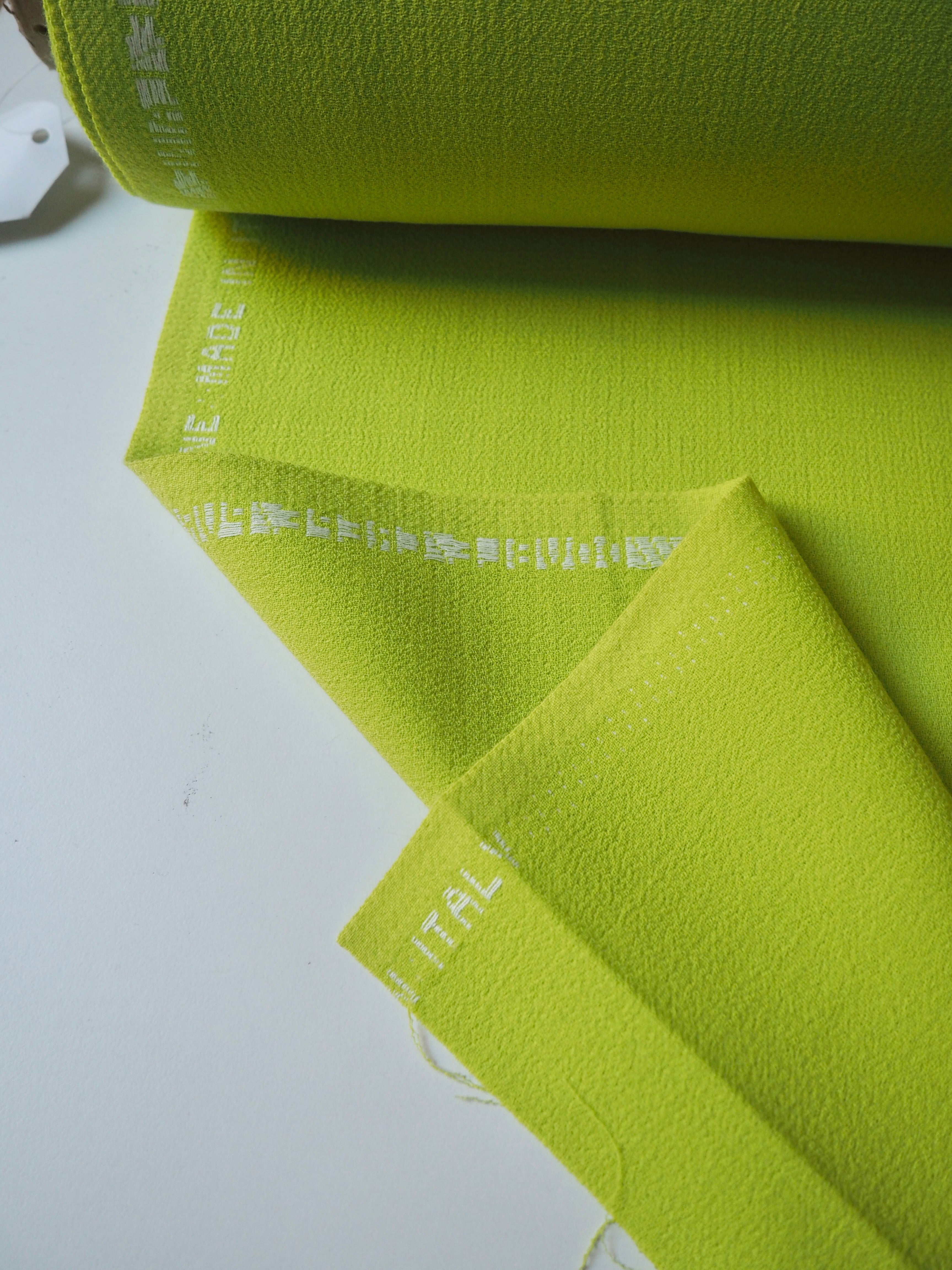 This ex-designer fabric is a wool crepe. It's a double-faced cloth with a sturdy but comfortable weave. It's made of pure wool and feels and looks so luxurious! It has a soft structure and really lovely soft, plush crepe handle. Medium weight, and perfect for tailoring projects. Flexible and has a wonderful drape that makes it so easy to work with! The perfect cloth for a lifetime blazer for all seasons, and wide leg trousers!