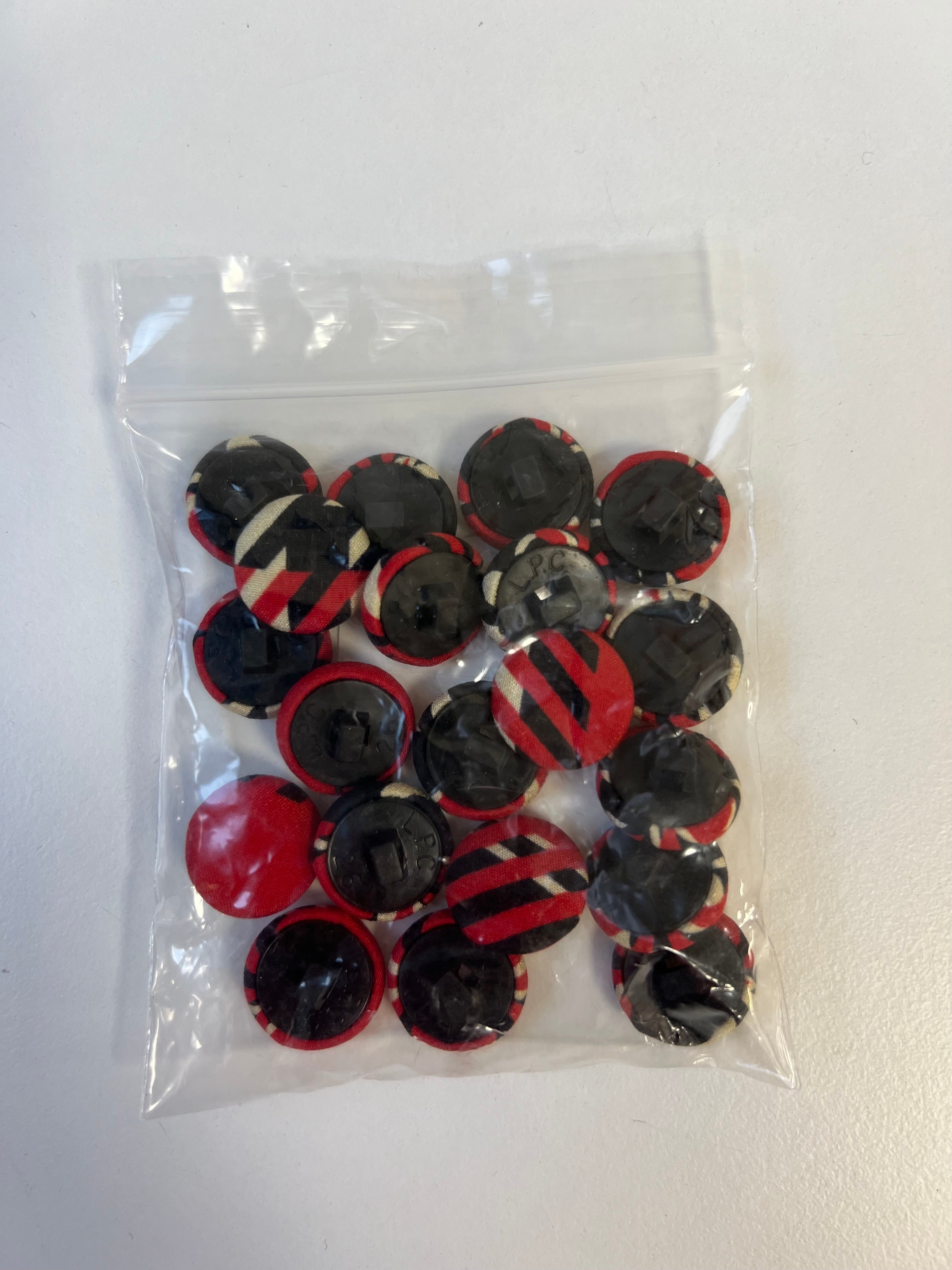 Black + Red Houndstooth Fabric Covered Buttons 16mm x20