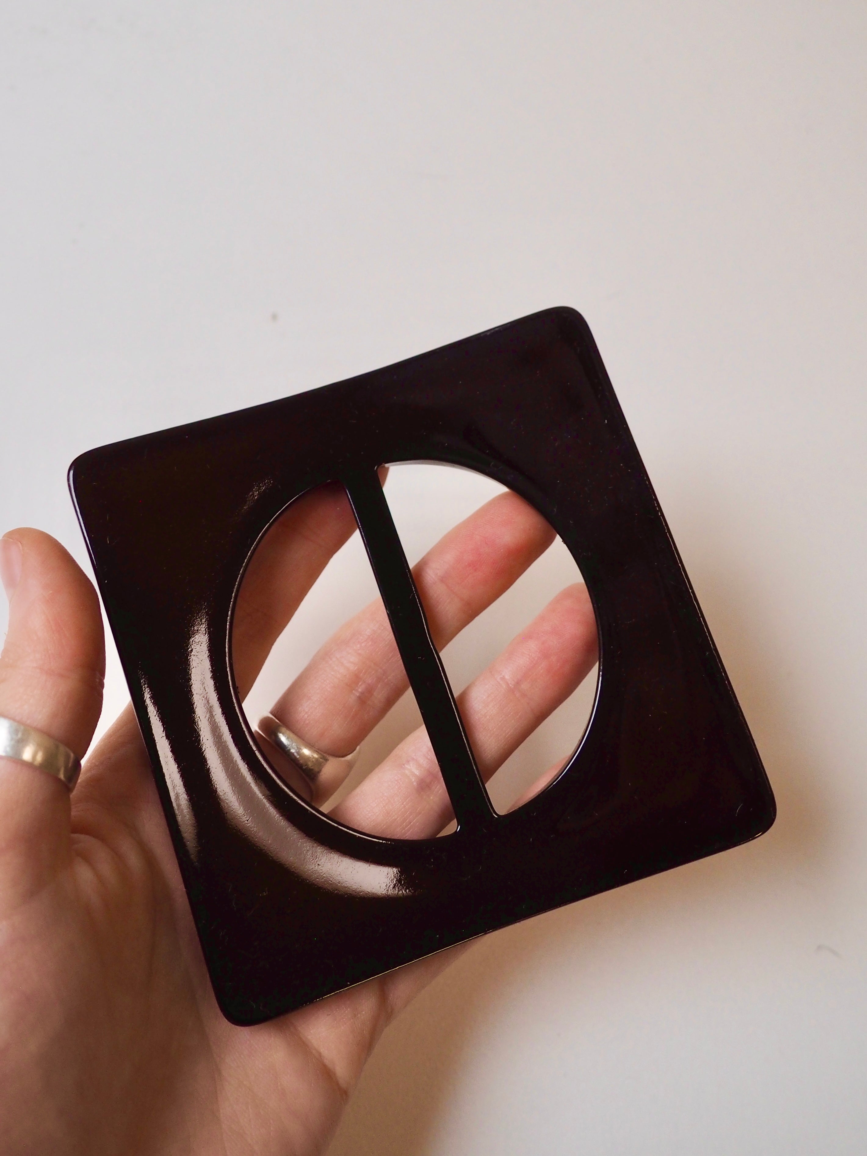 This deadstock trim is a plastic buckle, perfect for adding a special detail to garments! They could be used for coats, dresses, jumpsuits, bags, belts - they're perfect for adding an extra detail to your me-mades. No needle, so only works as a slider style buckle.