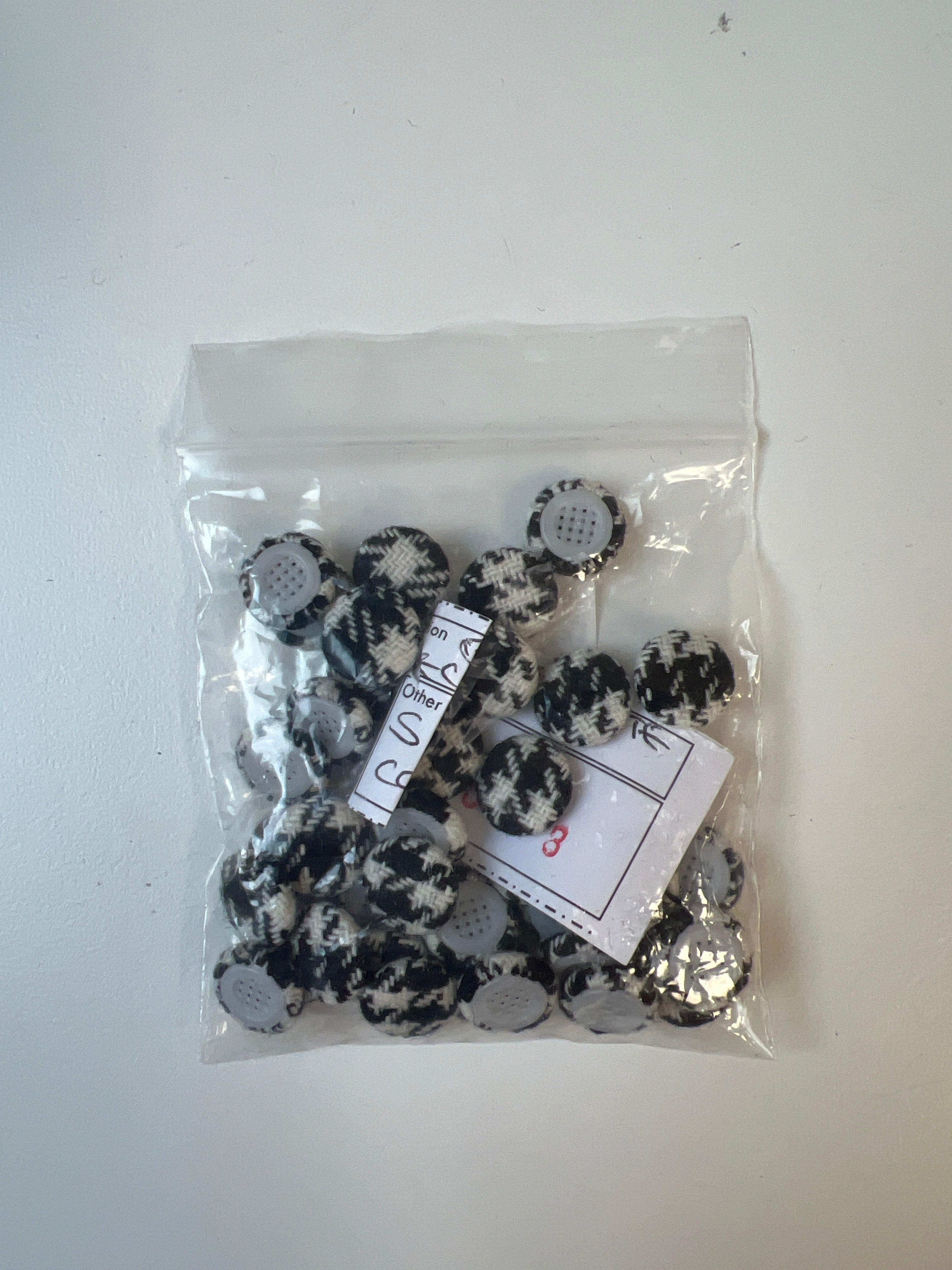 When these pieces are gone they're really gone! True dead stock buttons. We have tried to list any faults but please note we may have missed some. Most pieces are faultless. Price is for the full bag. Non-returnable and sold as seen.