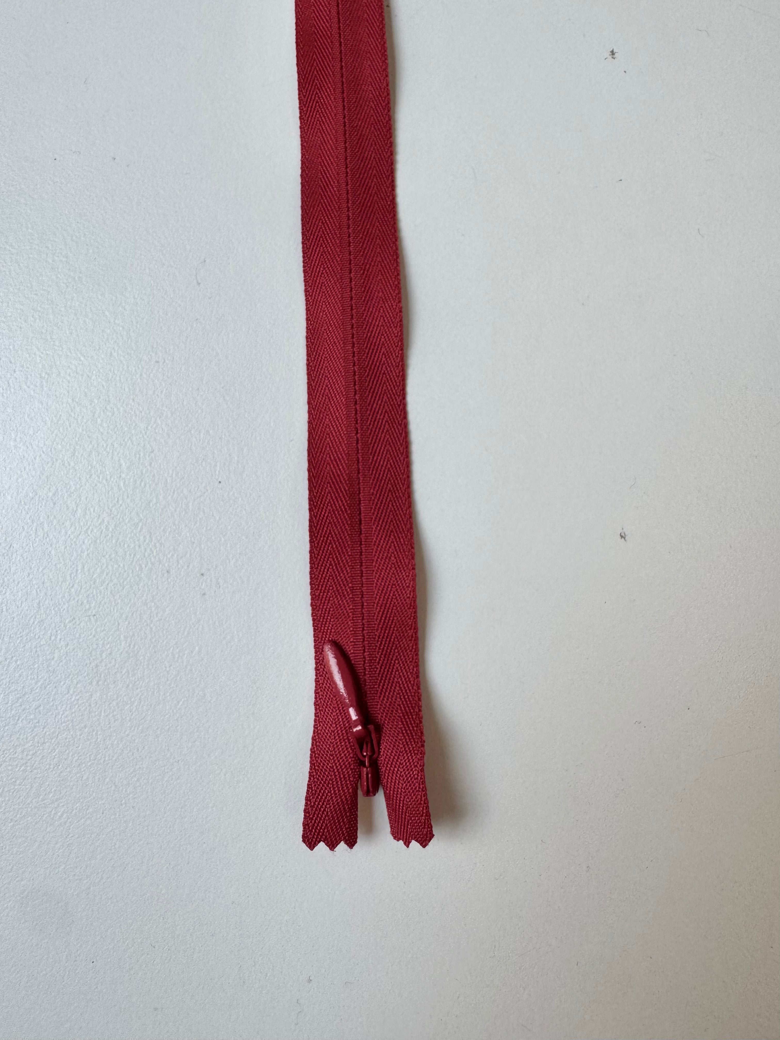 Closed end invisible zips. Available in various colours. Plastic teeth and metal zipper pull. Perfect for using as a hidden closure.