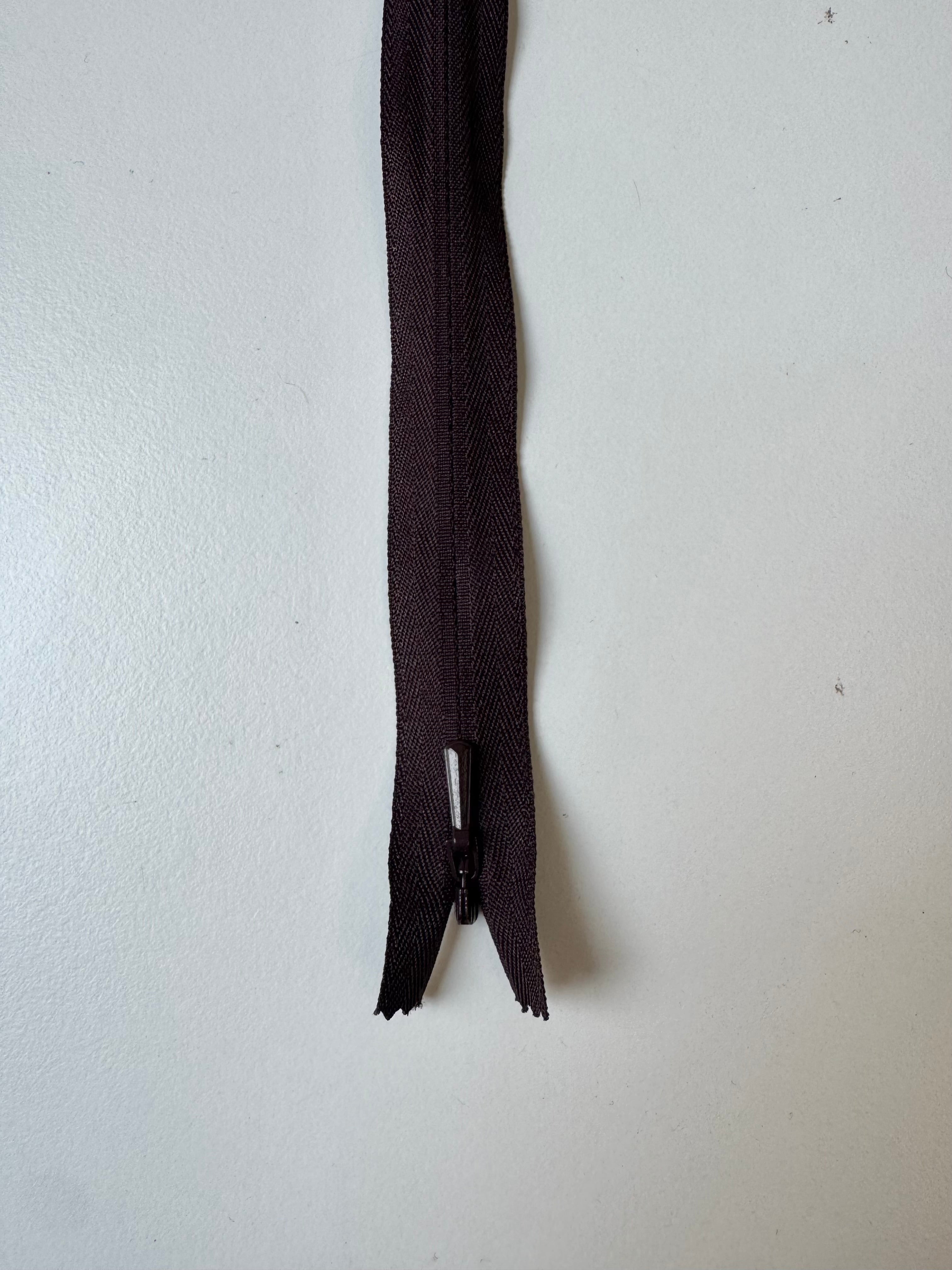 Closed end invisible zips. Available in various colours. Plastic teeth and metal zipper pull. Perfect for using as a hidden closure. Colours read from left to right.