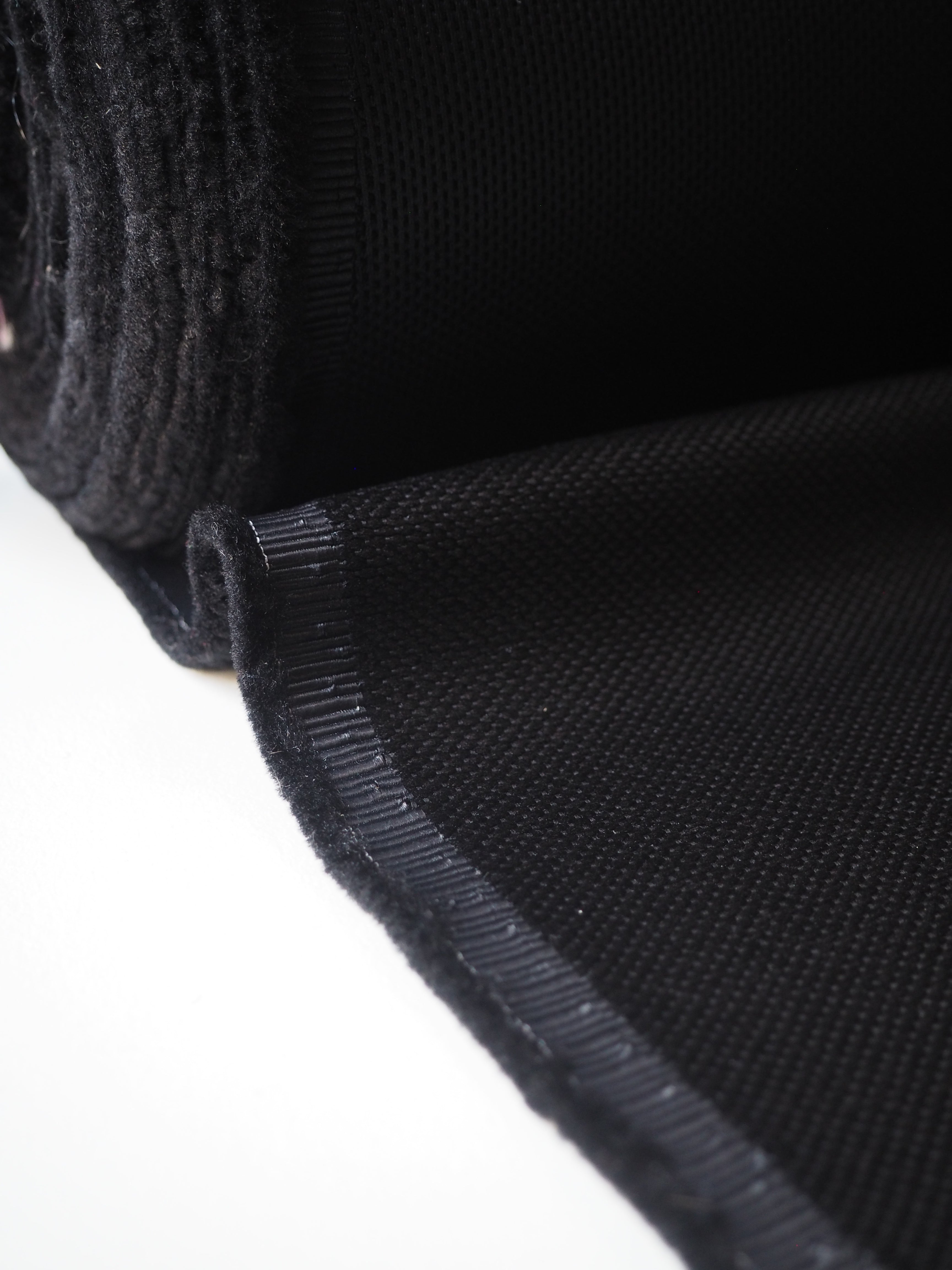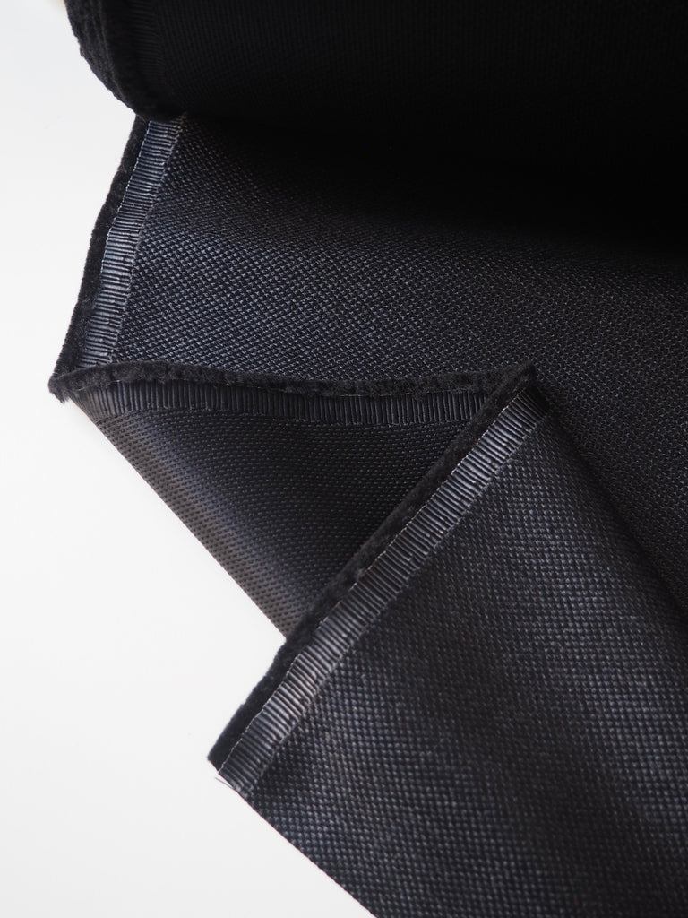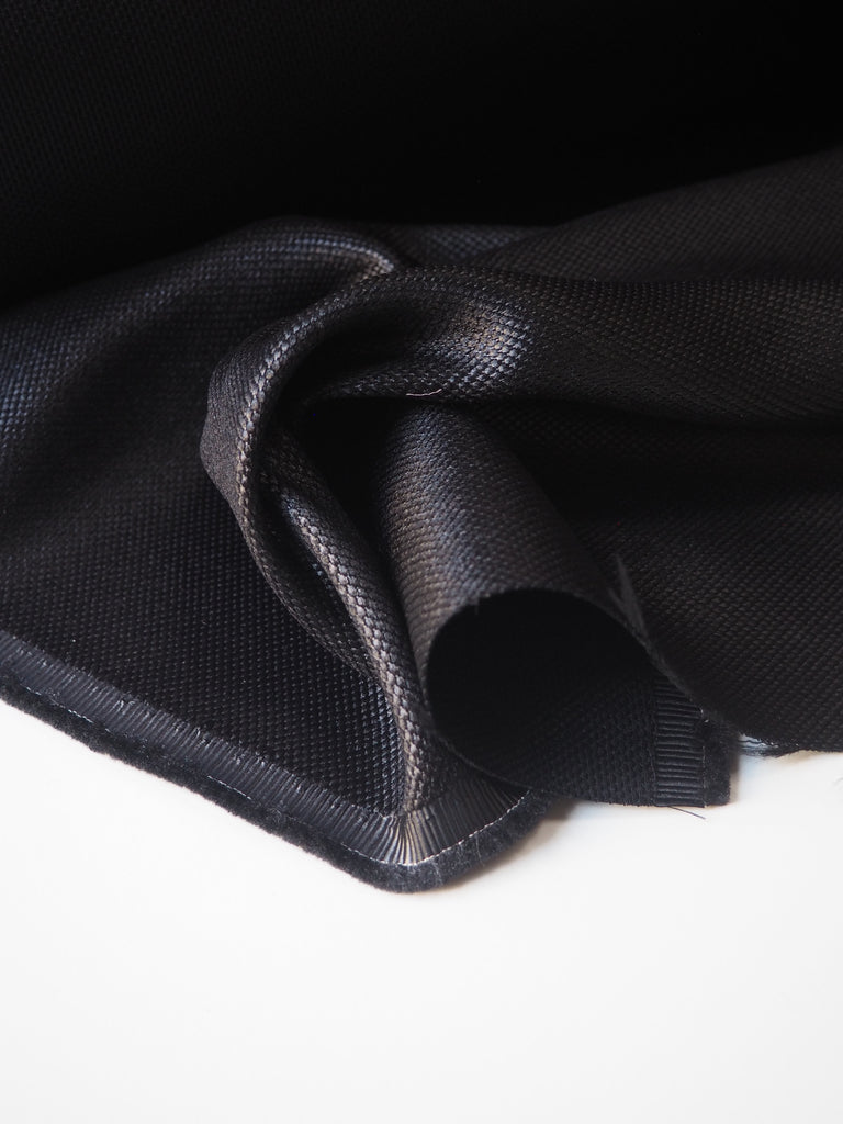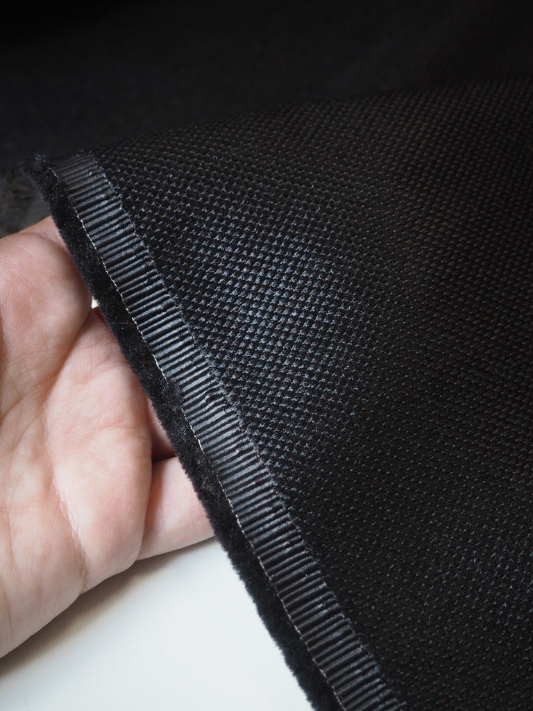 This ex-designer fabric is a jacquard. It's a dotted weave, almost like a golf ball, with a sateen finish. It's medium weight and slightly sponge-y in texture. Opaque and has a soft structure to play with. Great for jackets, or even furnishings!