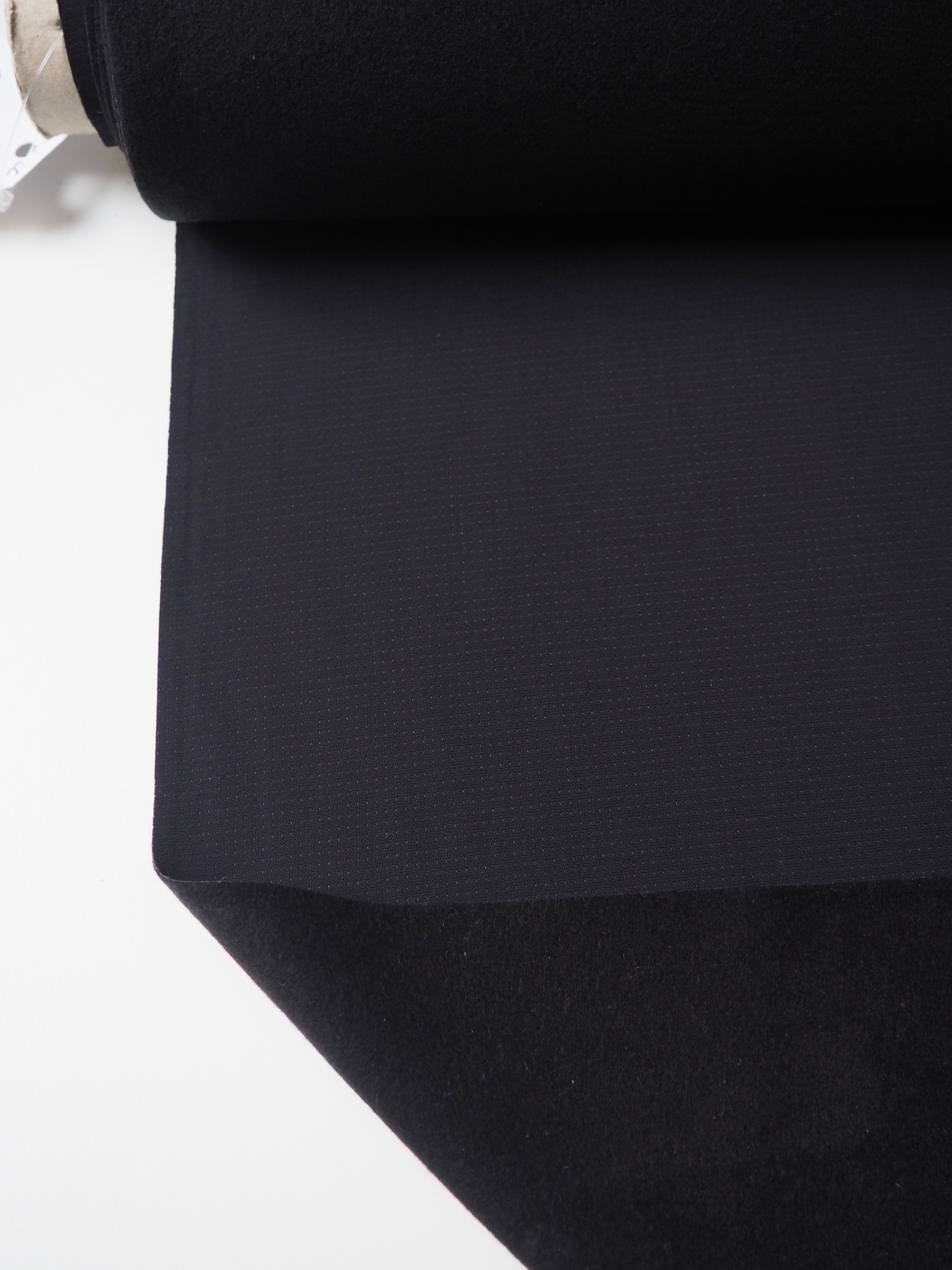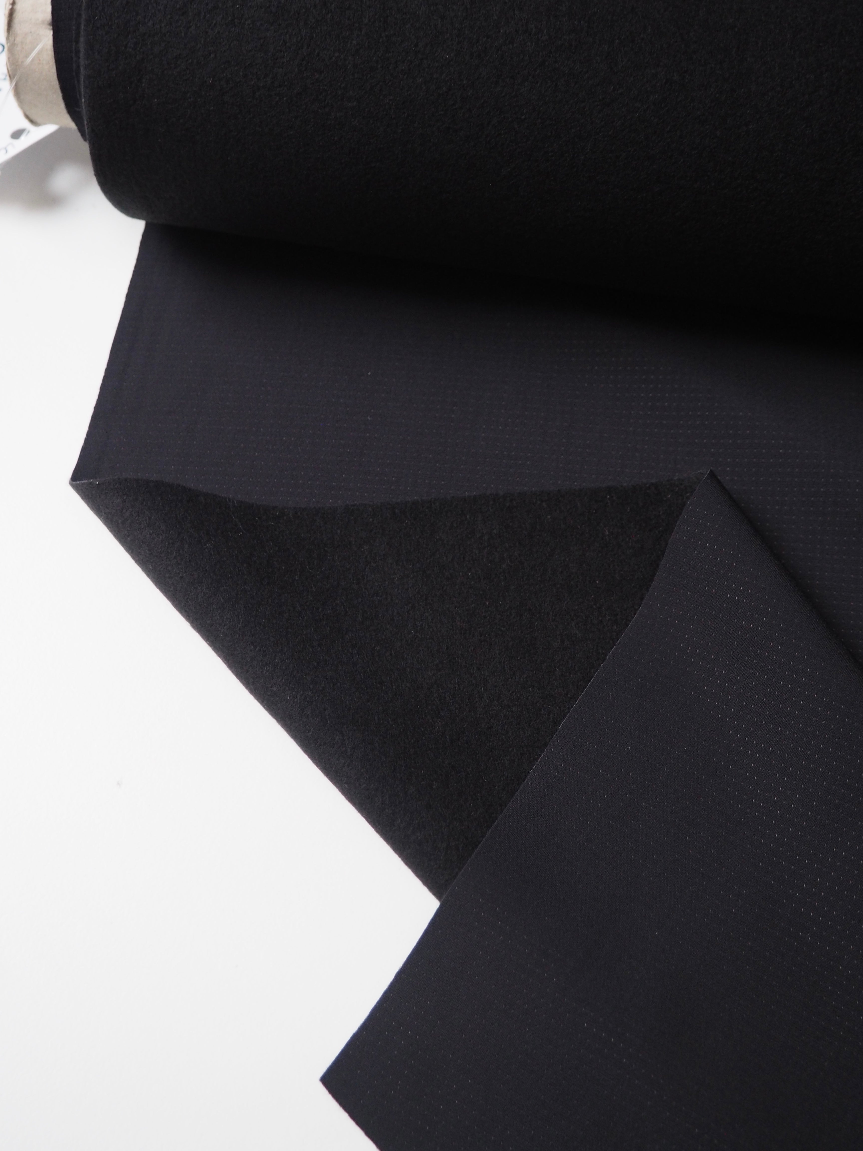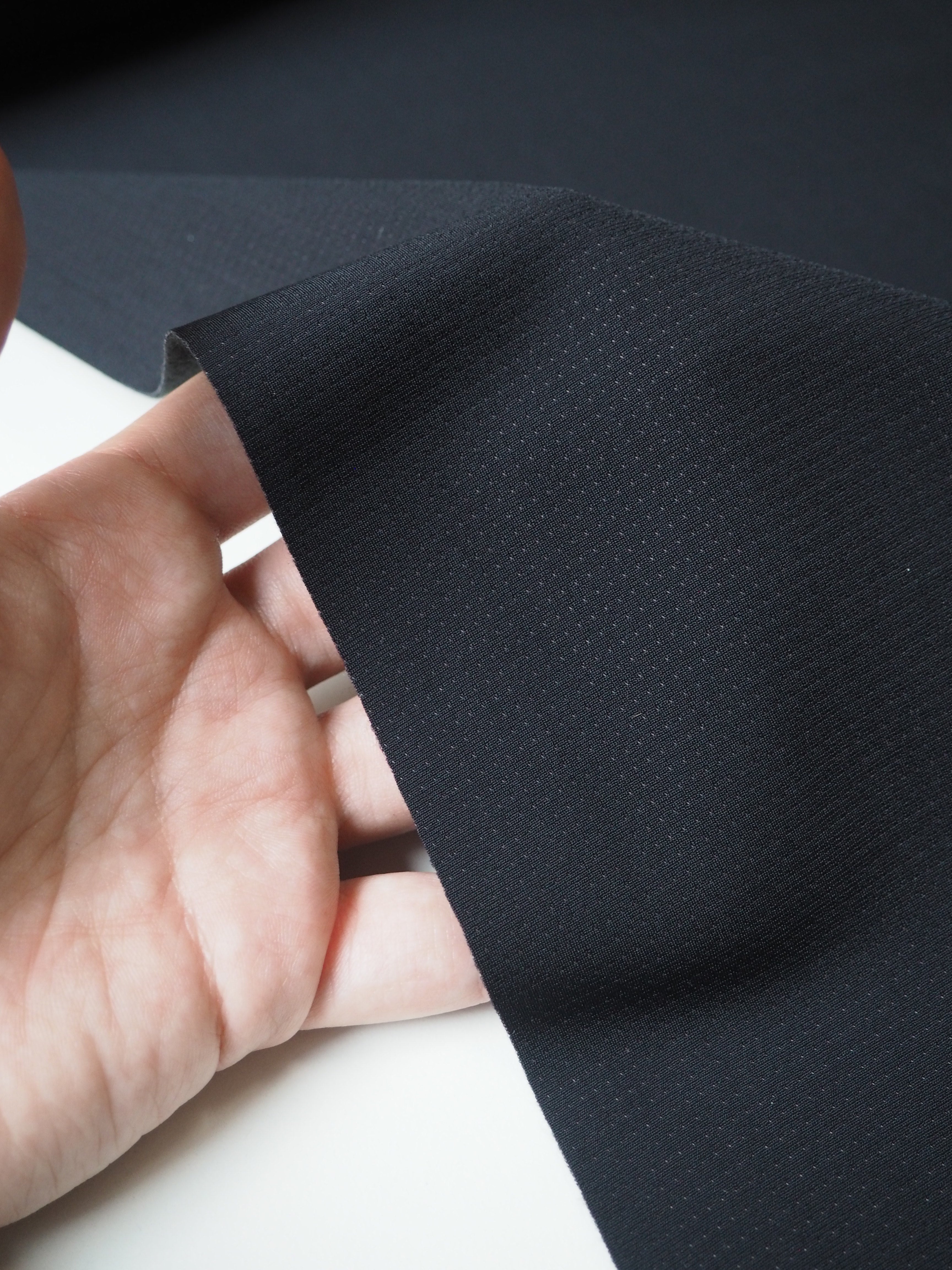 This ex-designer fabric is a technical jersey. It's called Thermodream, and it's made for cycling and outdoor pursuits as a wind and water-resistant cloth. It has a fleece reverse, which is meant to be an insulating and body regulating layer. It is soft and very comfortable against the skin. Lightweight with a subtle dotted finish. Has at least 50% stretch both ways. Perfect for winter wear!