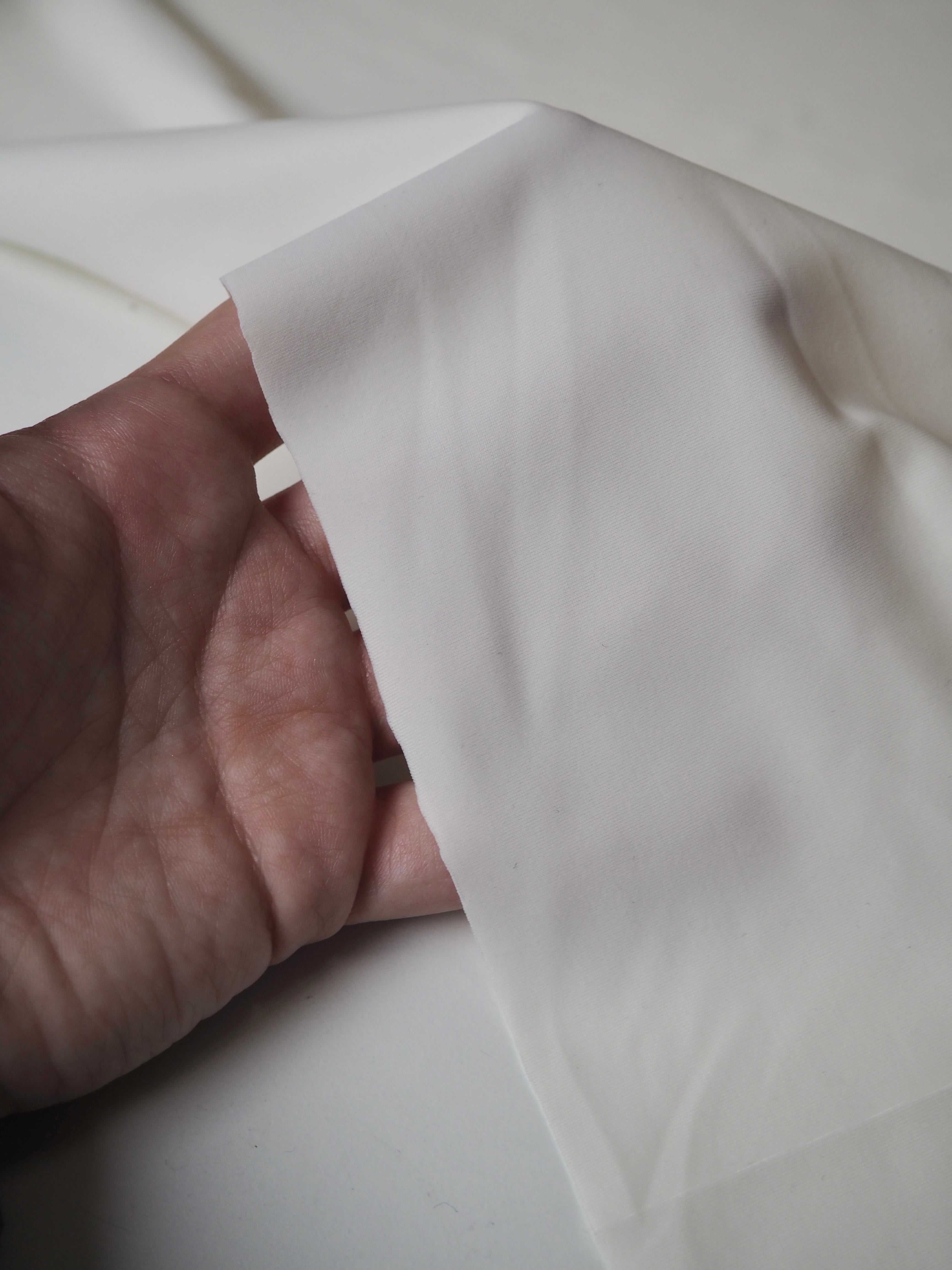 This ex-designer fabric is a high quality swim/activewear jersey. It's soft to the touch and so smooth. Has a very stretchy handle, with up to 70% stretch length -ways, and about 50% width ways. Mostly opaque and light to medium weight. We would always advise lining or doubling up swimwear to make it more substantial and nicer to wear. Perfect for any swimwear, athleisure, and activewear!