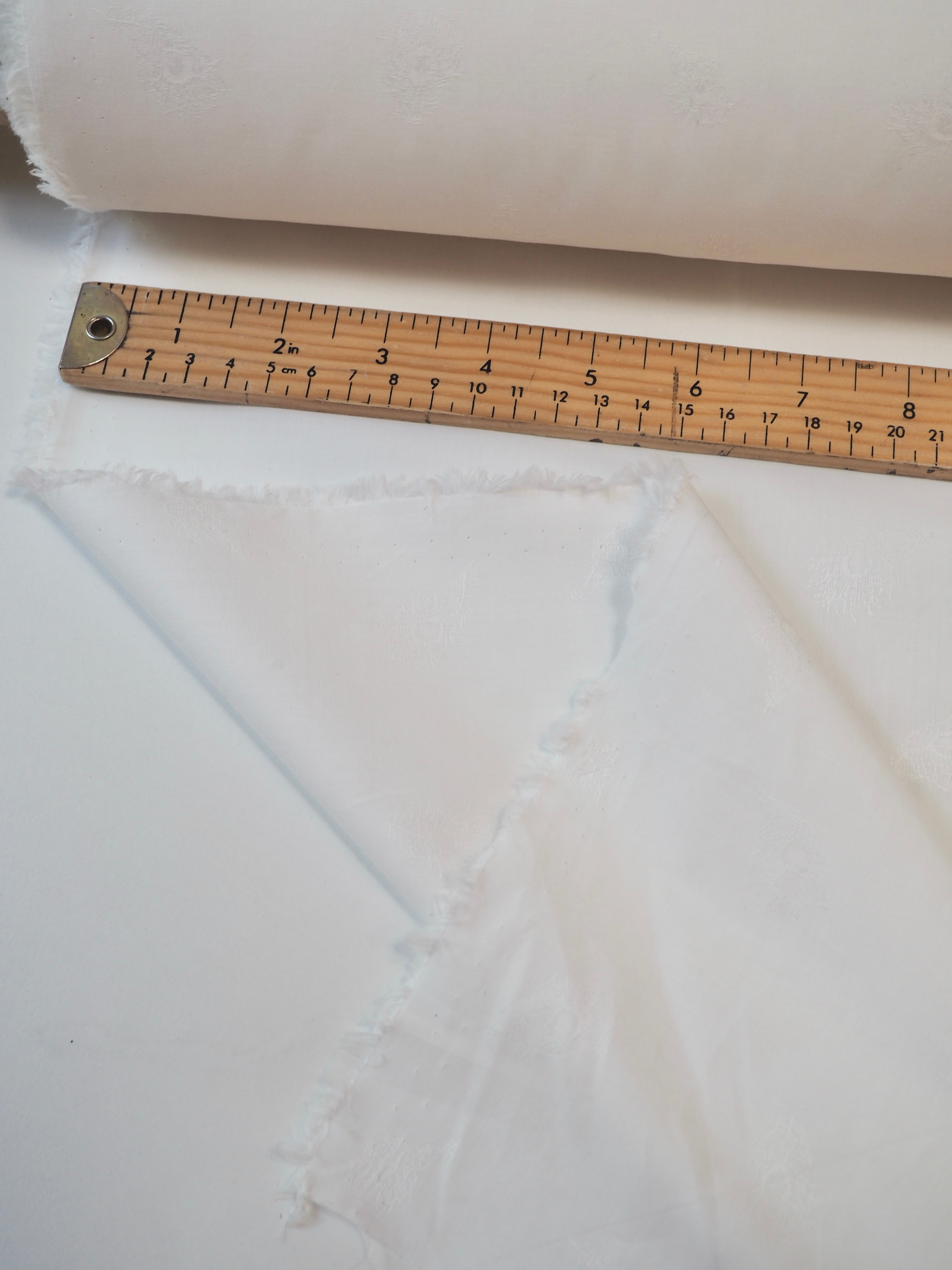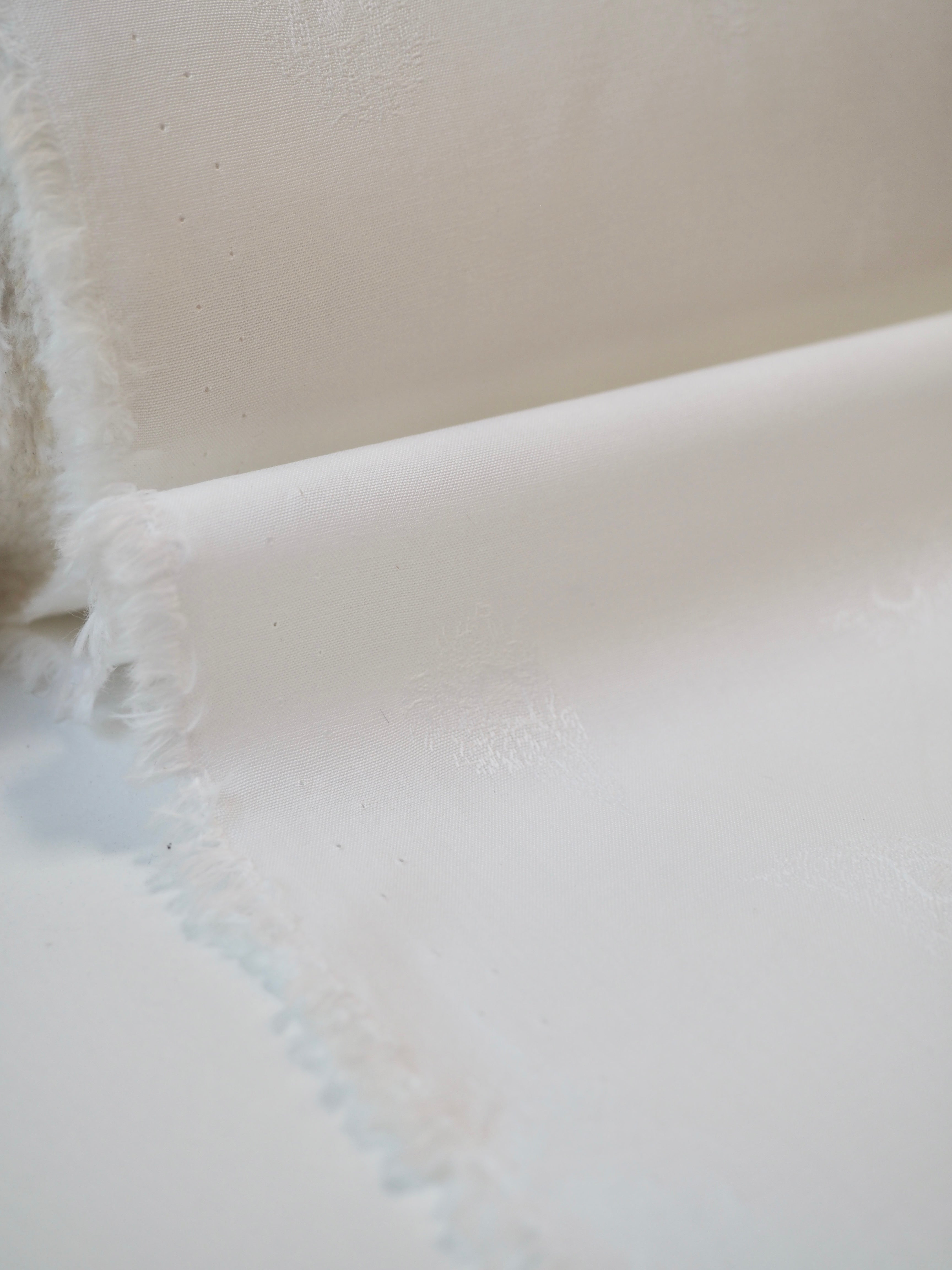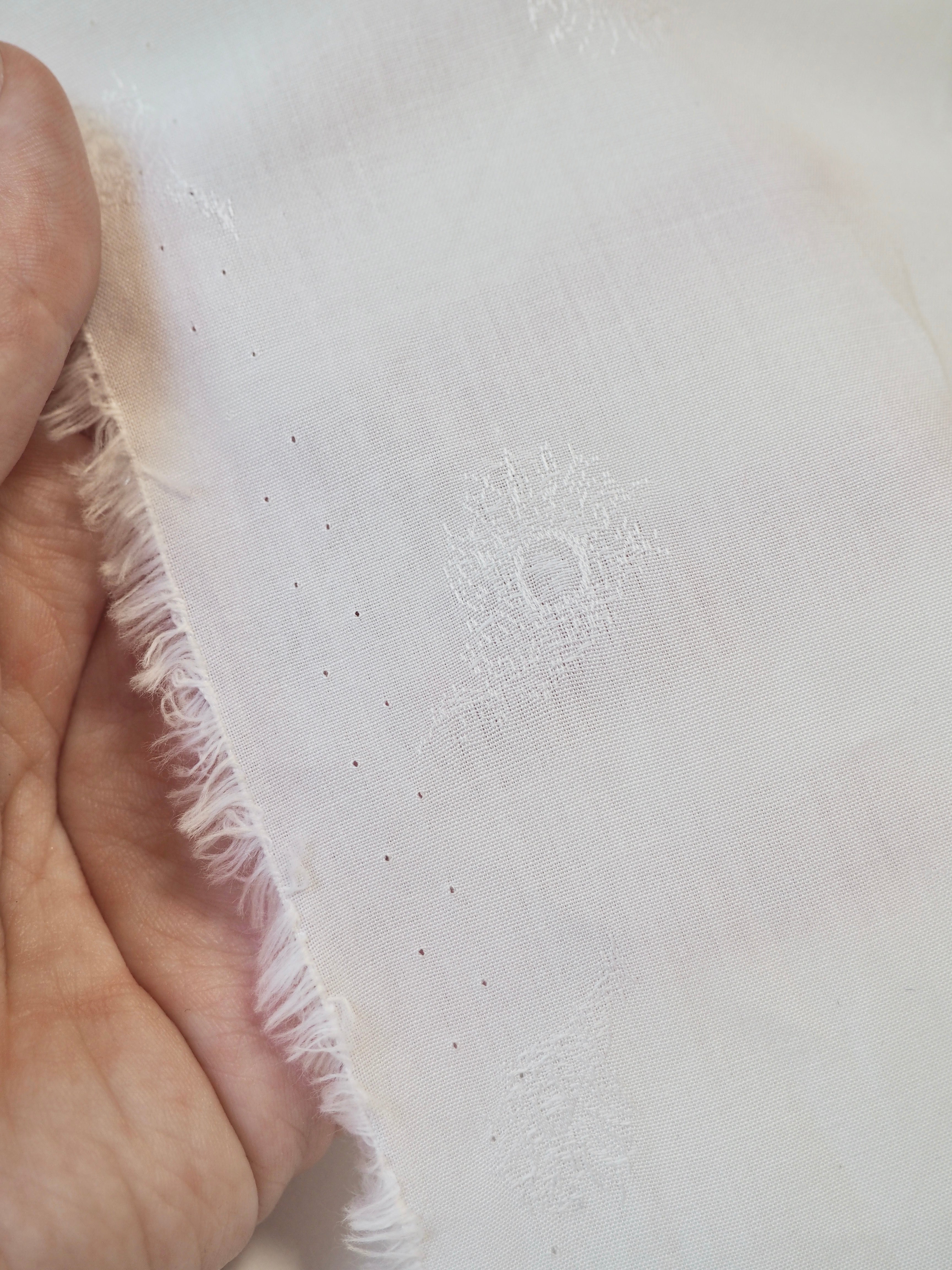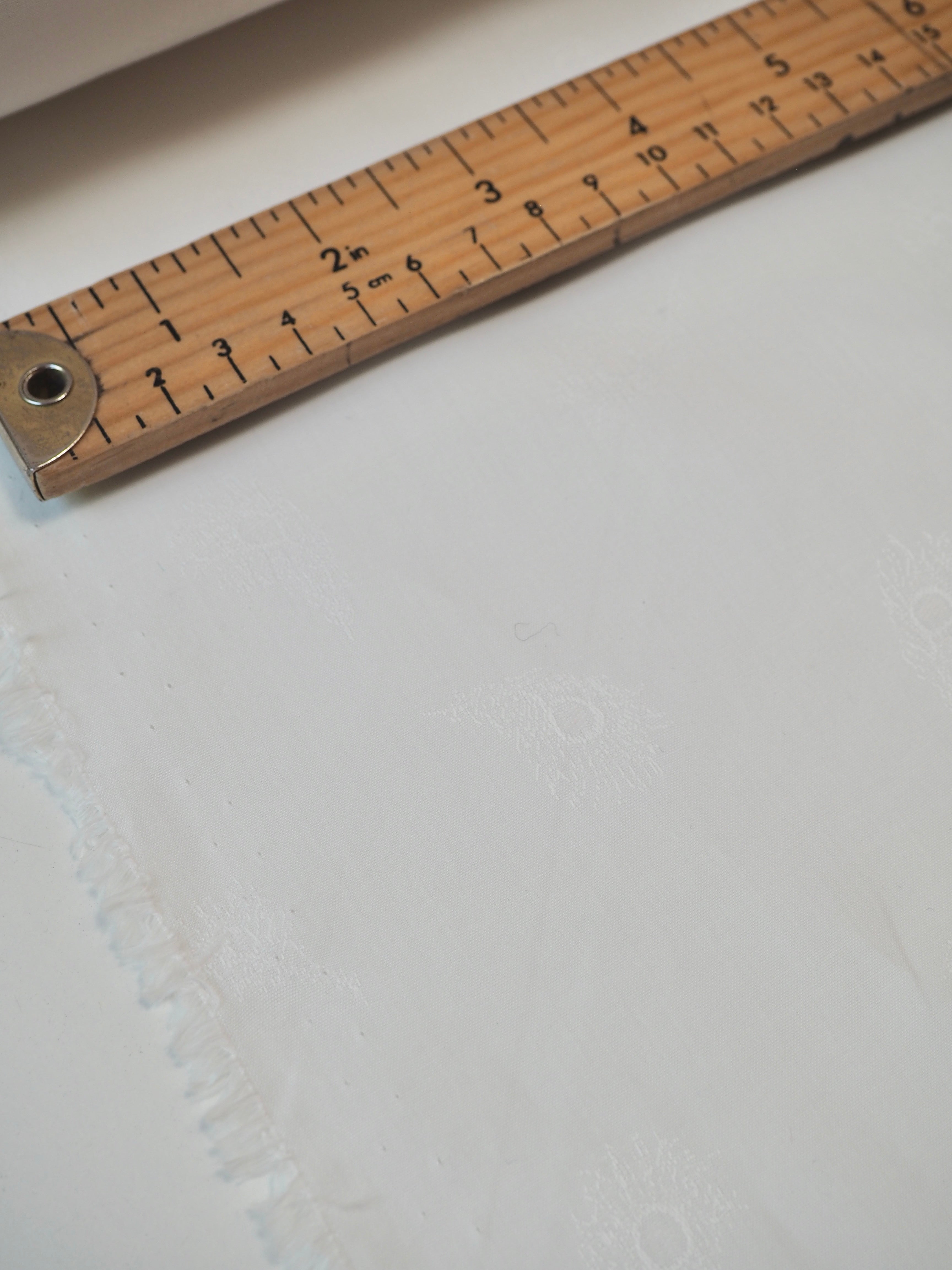 This ex-designer fabric is a classic Liberty cotton. A subtle feather motif is woven into this pure white cotton jacquard. It's a spread out design but so crisp and cottage-core in it's look! A top-quality Liberty cotton, and super lightweight! Soft with a lovely drape, and slightly sheer, so you might want to line it. We would love to see it in our Everyday Dress/Top, or as a summery tablecloth for afternoon tea!