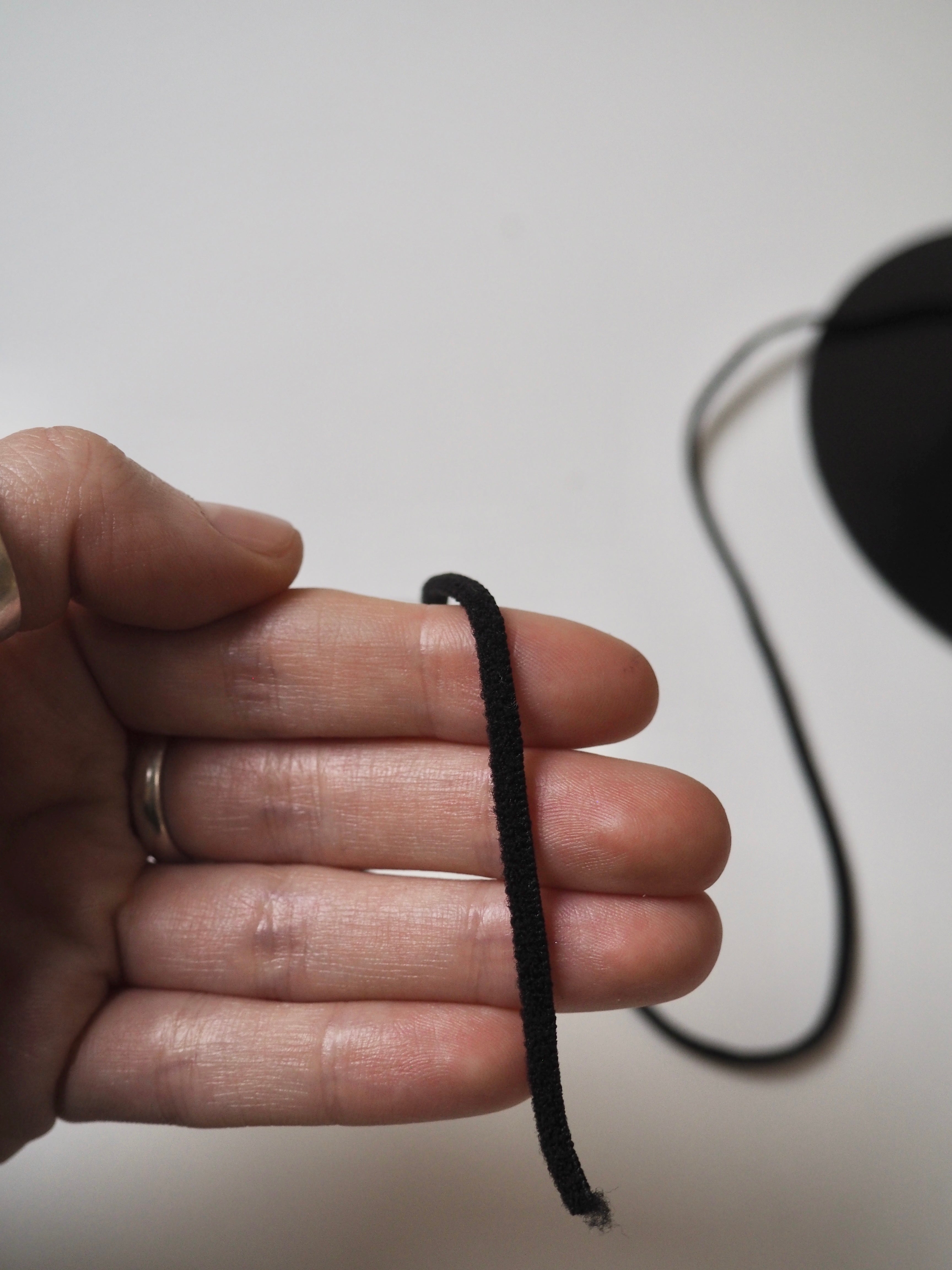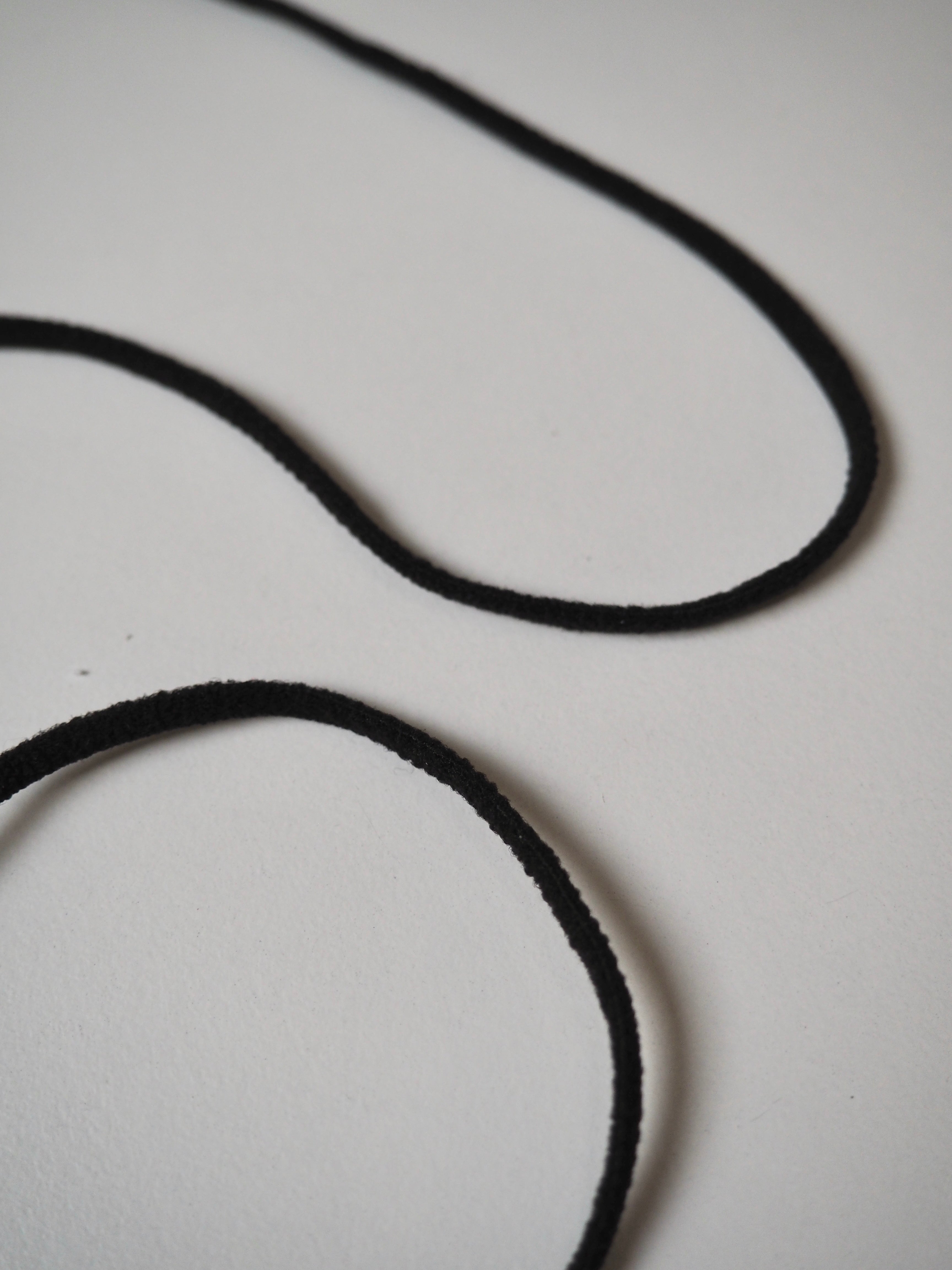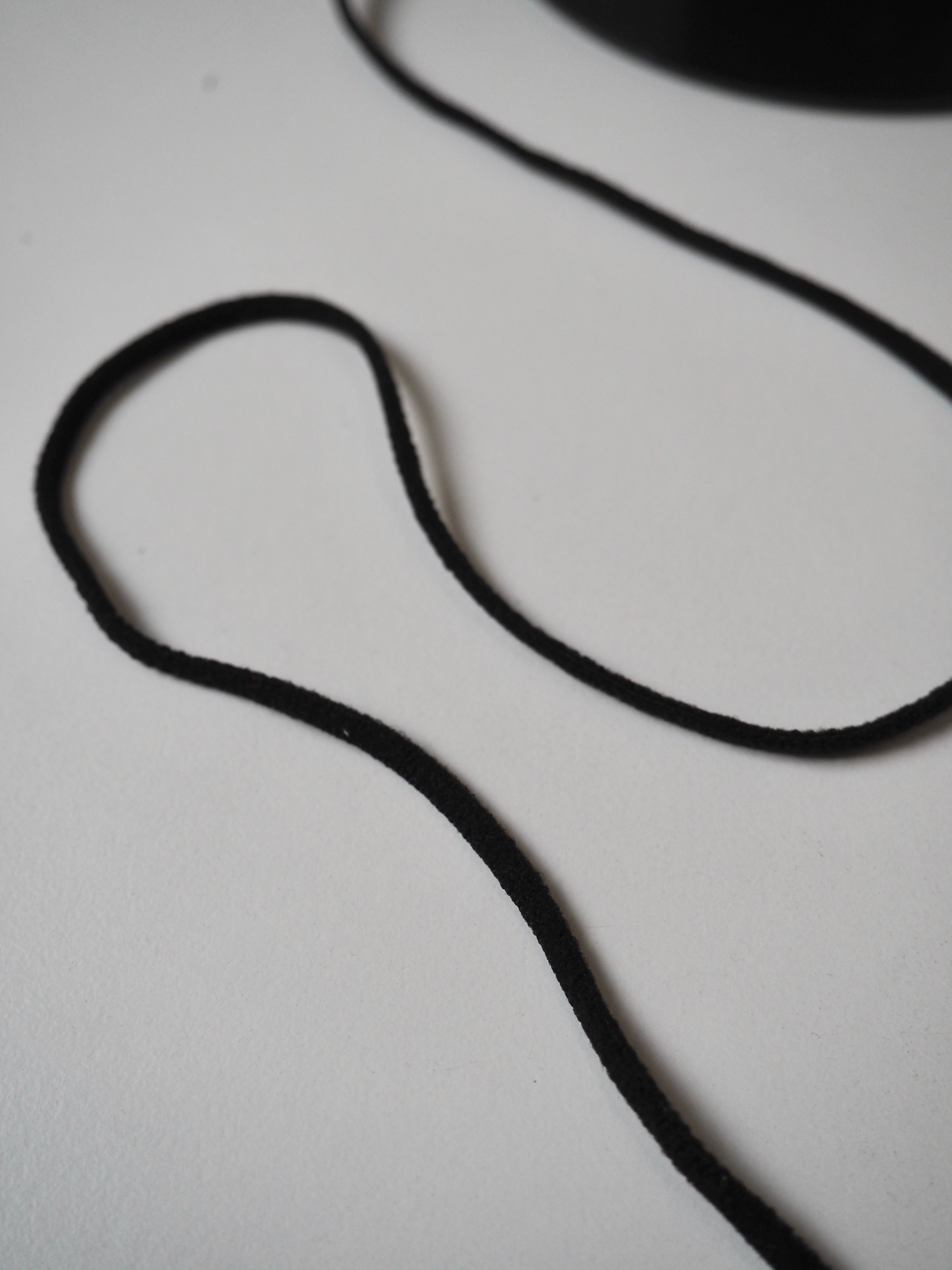 This ex-designer trim is a stretch cord. This thin cord is very stretchy, about 200% stretch. Great recovery and a soft plush feel. Perfect for so many projects, like drawstrings and adding elastic into channels.