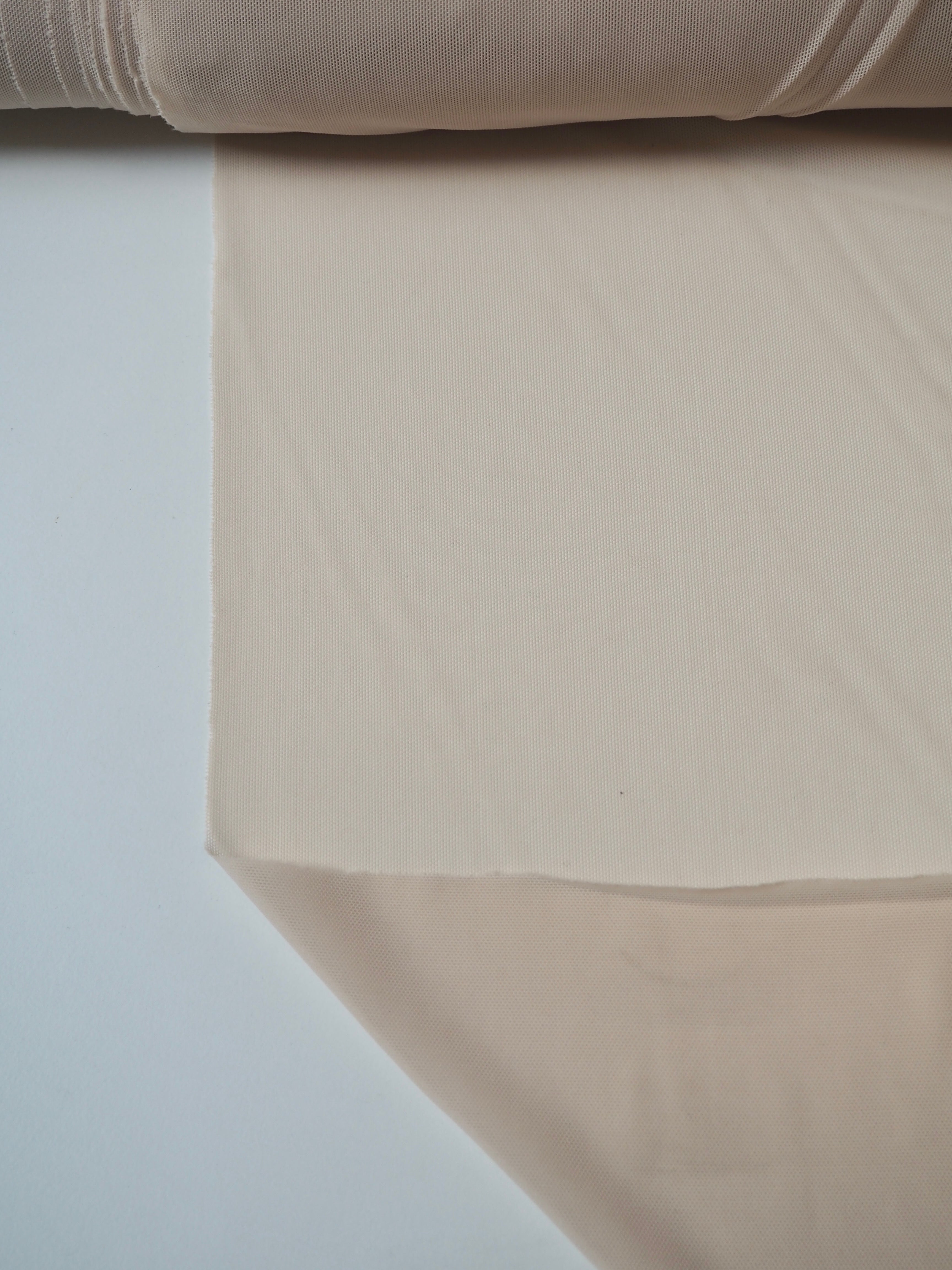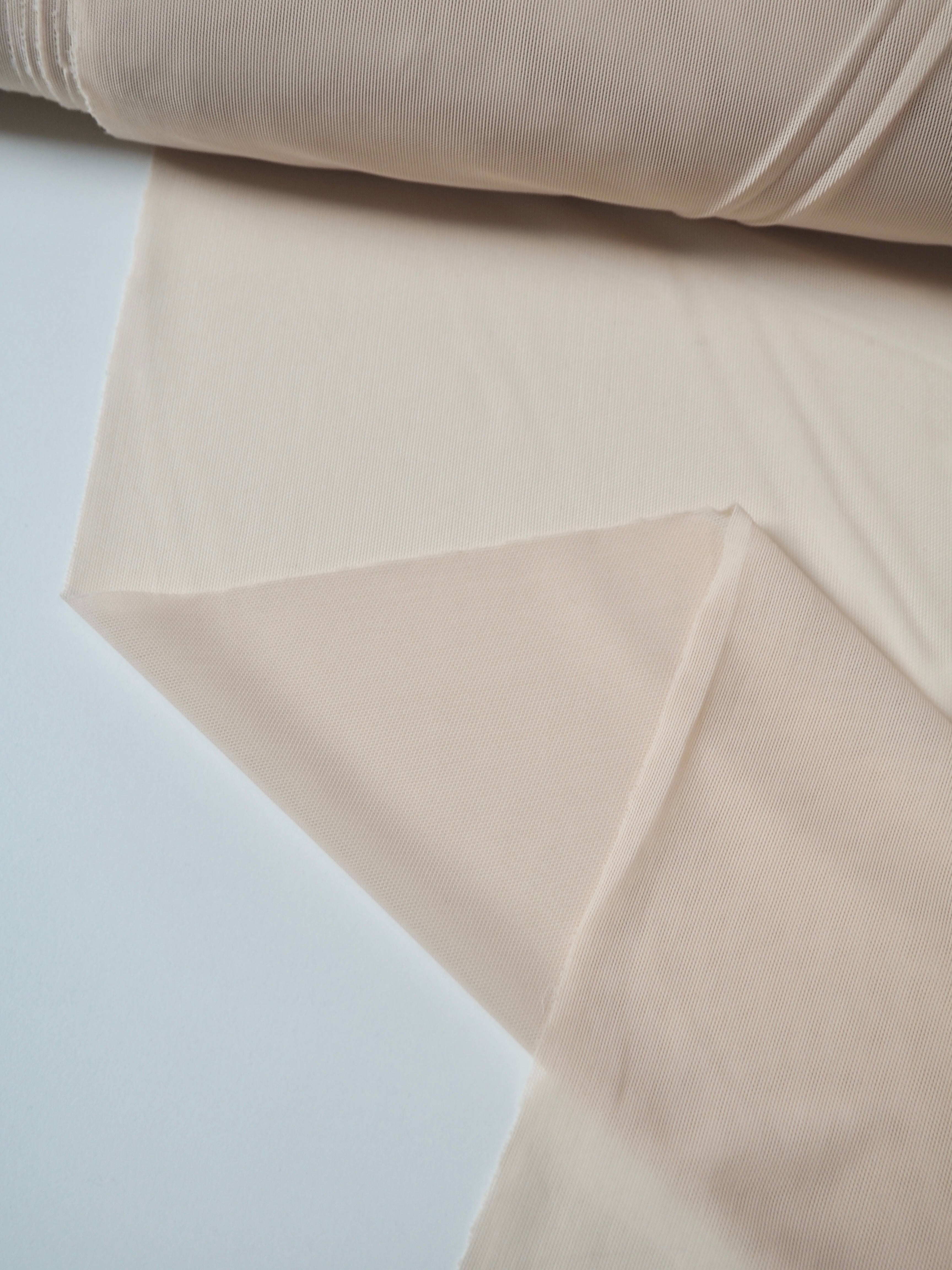 This ex-designer fabric is a stretch mesh. This super soft mesh is so comfortable! It has 4-way minimum 40% stretch and great recovery. Lightweight and drapey, and semi-sheer. Perfect for our lingerie patterns! We also have bra findings kits!