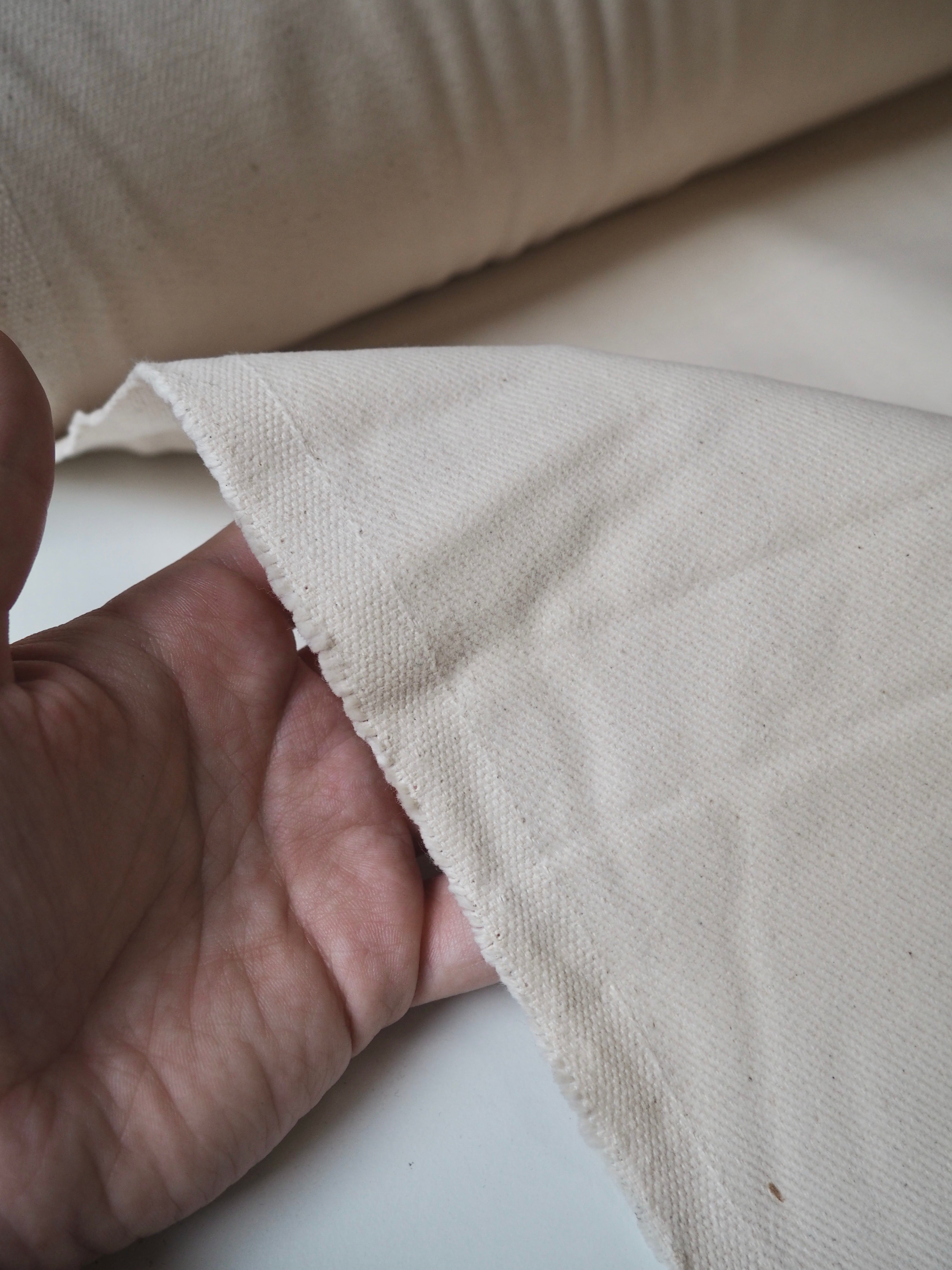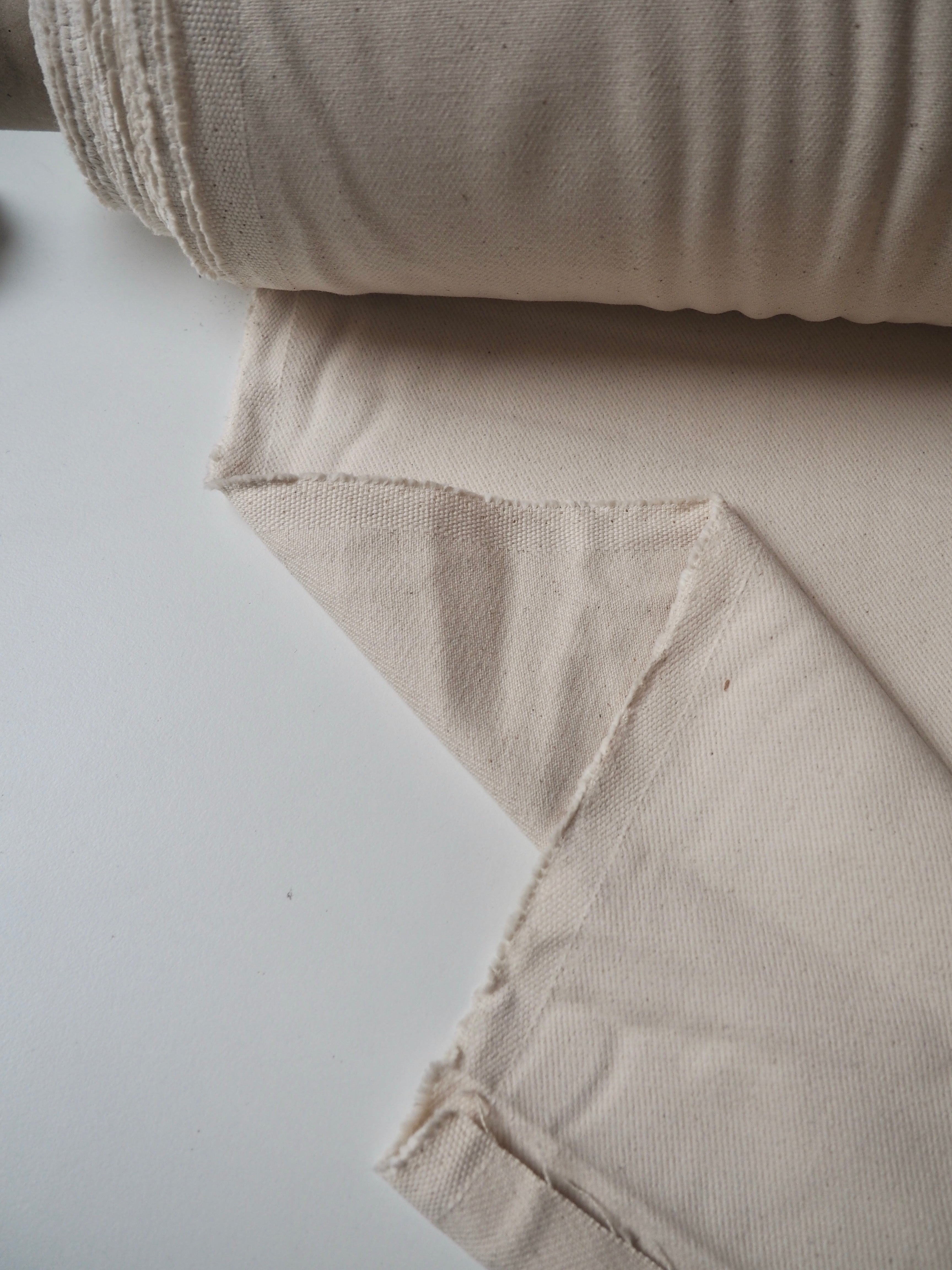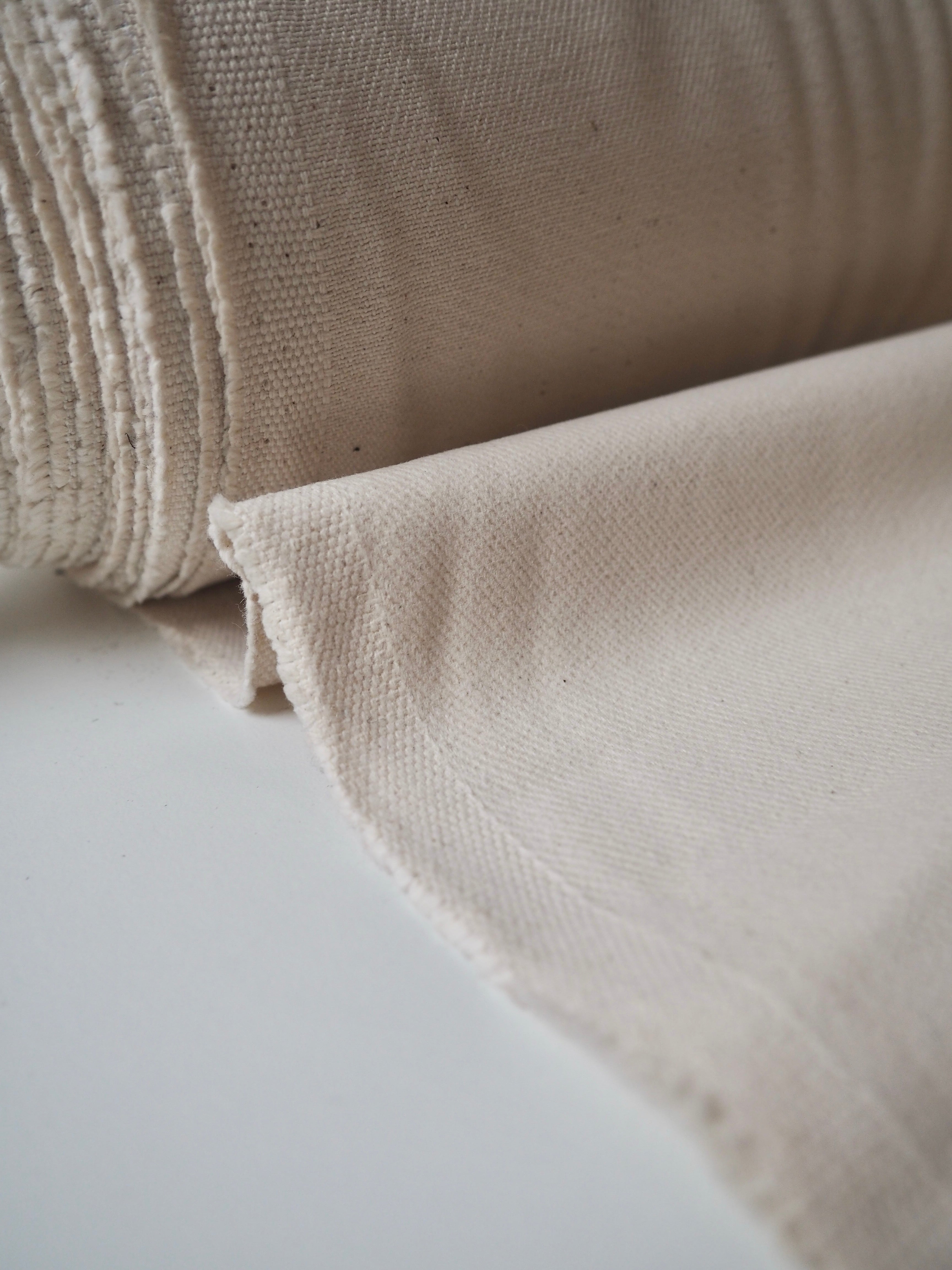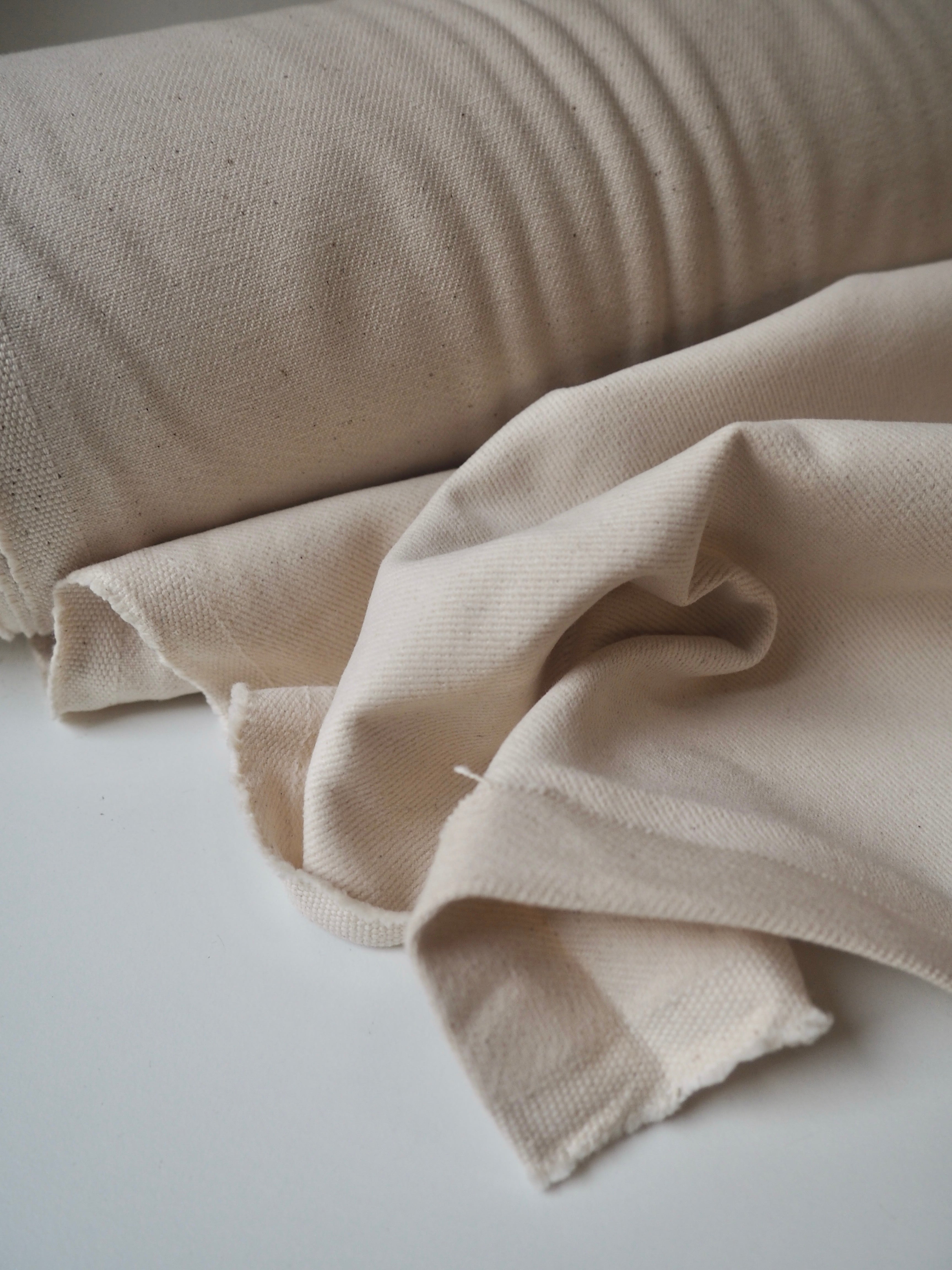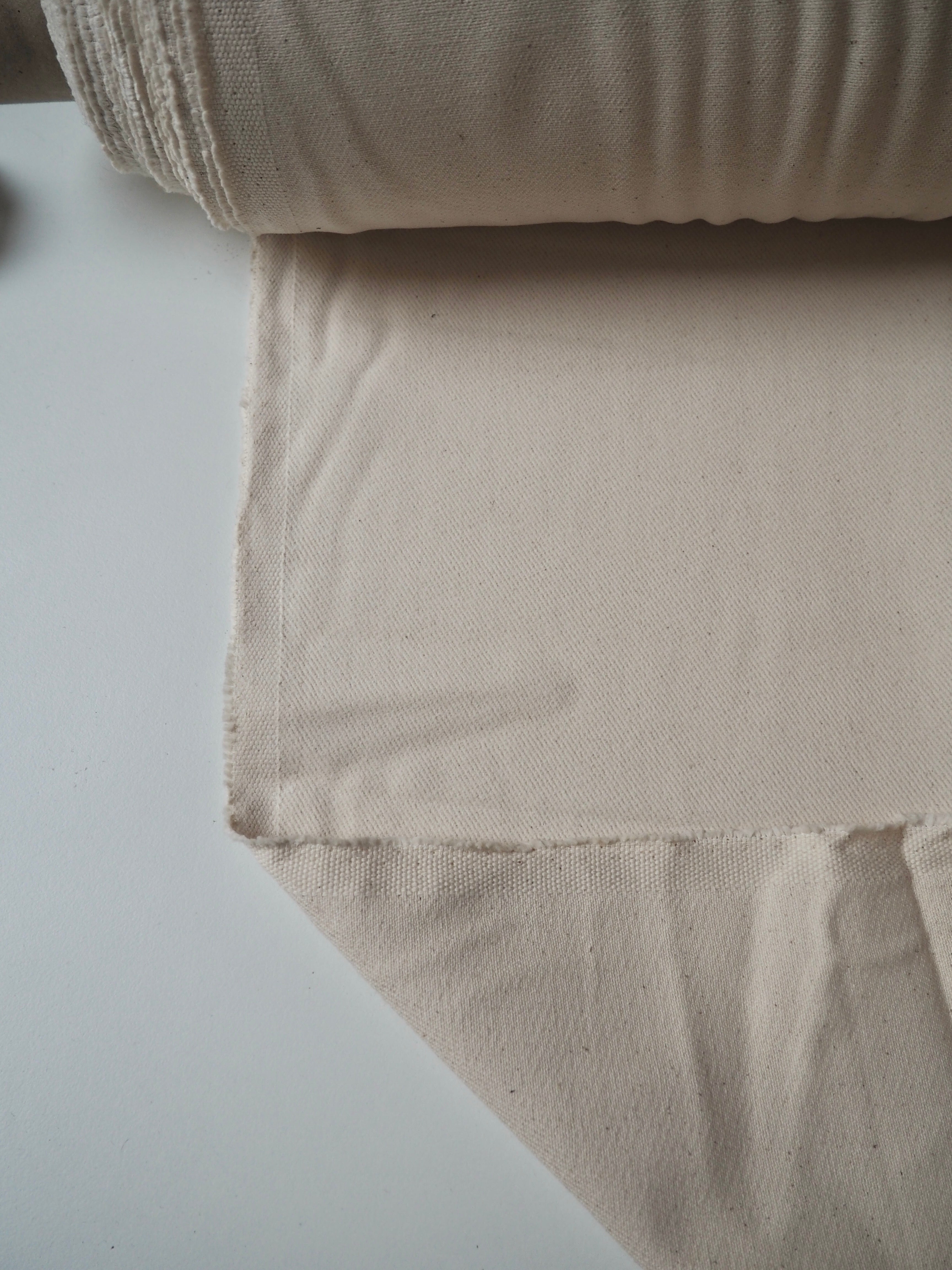 This ex-designer fabric is a cotton twill. Medium to heavy weight with a great structure and pronounced twill weave. A very soft handle with a brushed finish. Perfect as a blank canvas for dyeing! A sturdy cloth and opaque. Perfect for a jacket!