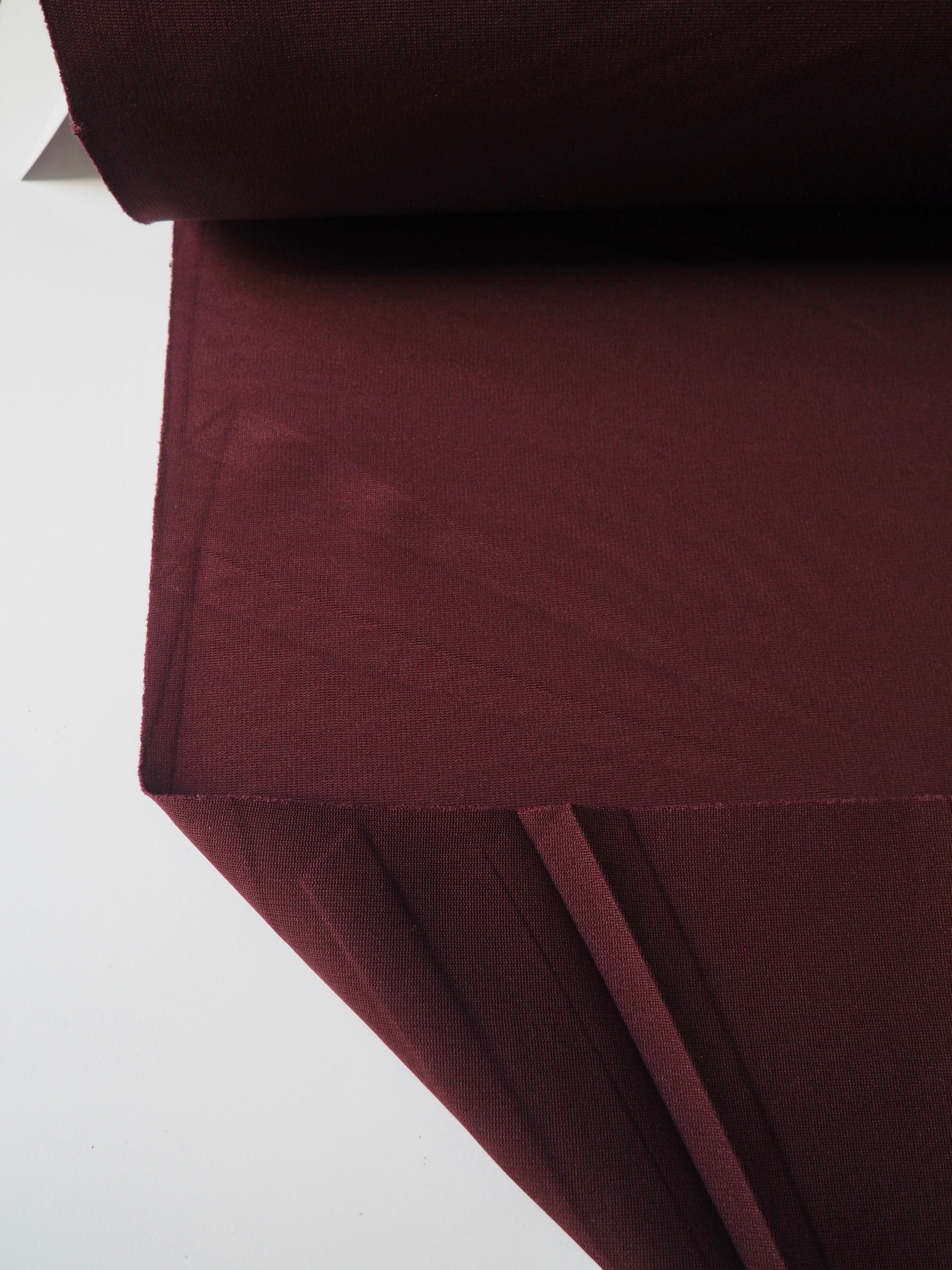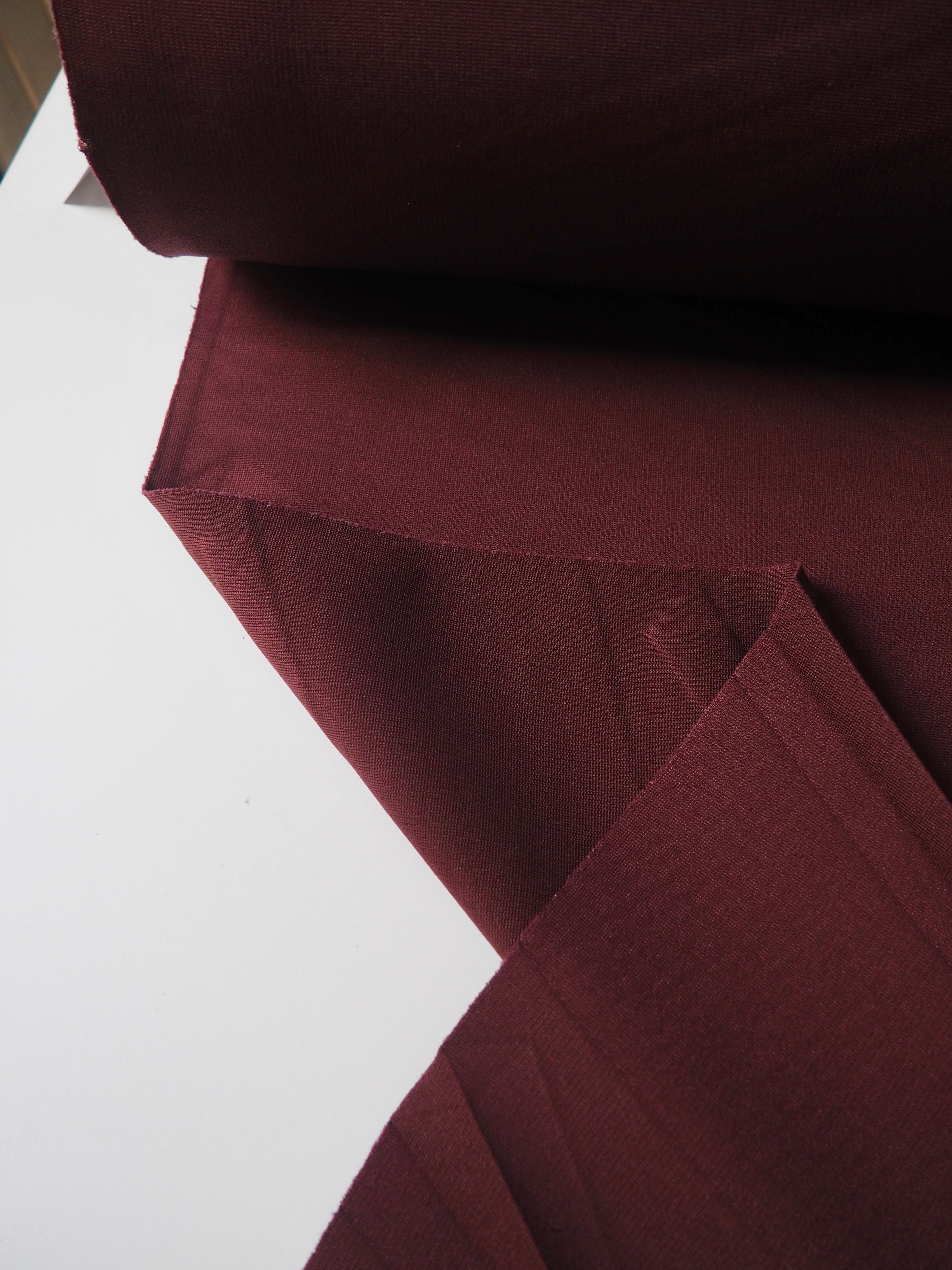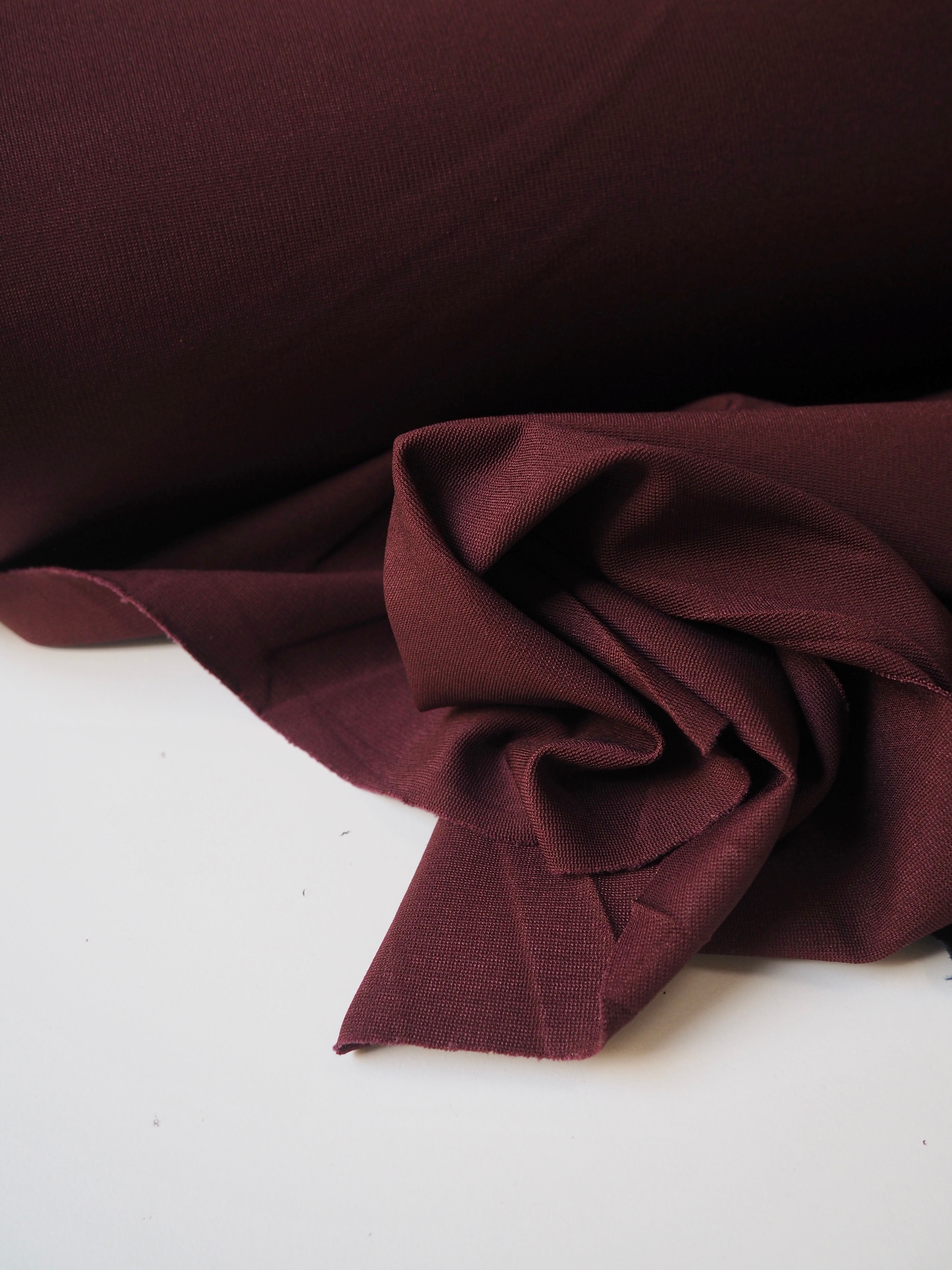 This ex-designer fabric is a jersey. Ponte di Roma is a double interlock jersey with a medium weight. It has a great structure and this one is sturdy with a light and lovely sheen finish. Has strong 50% stretch both ways, and great recovery. Perfect for bodycon dresses!
