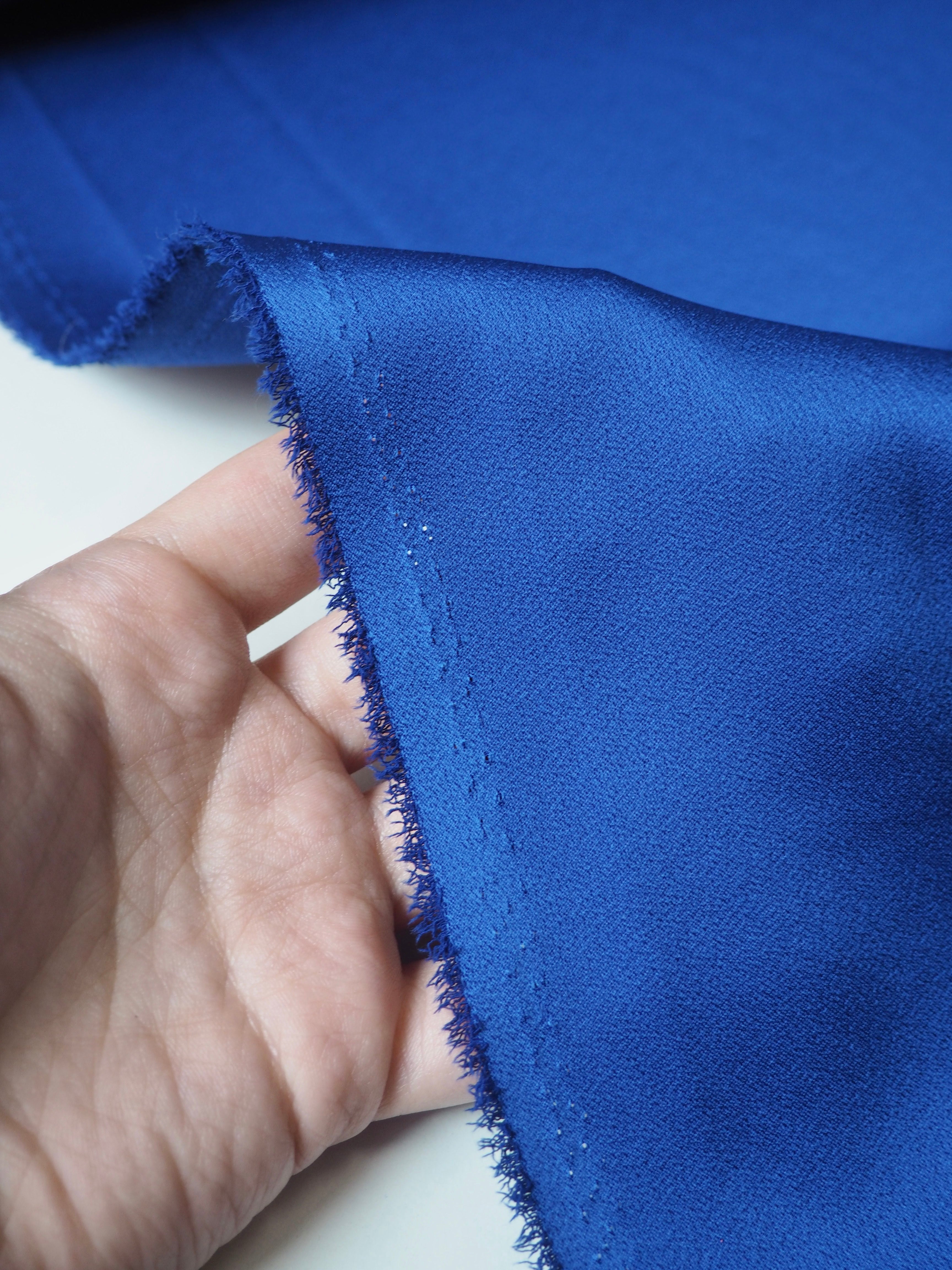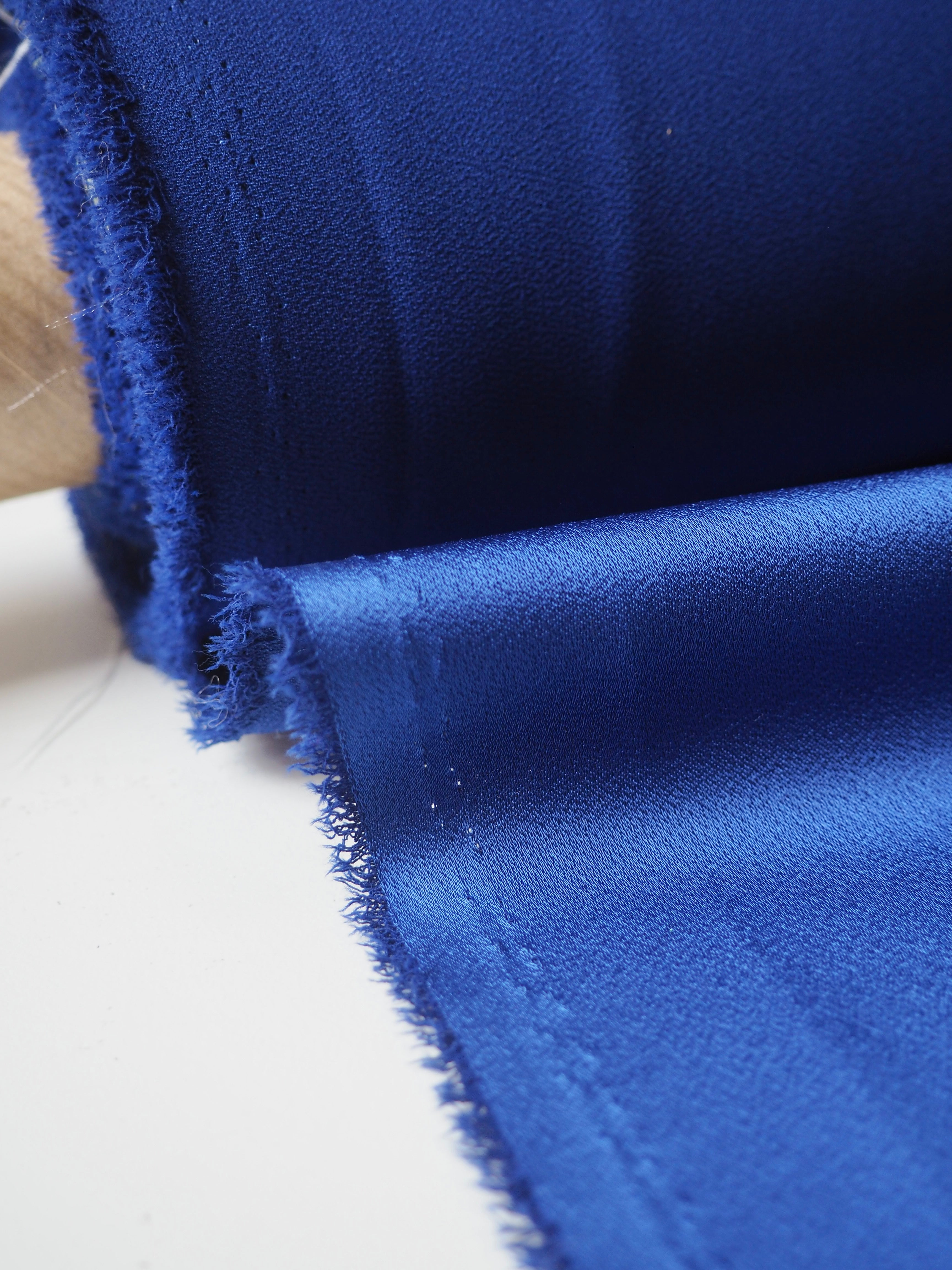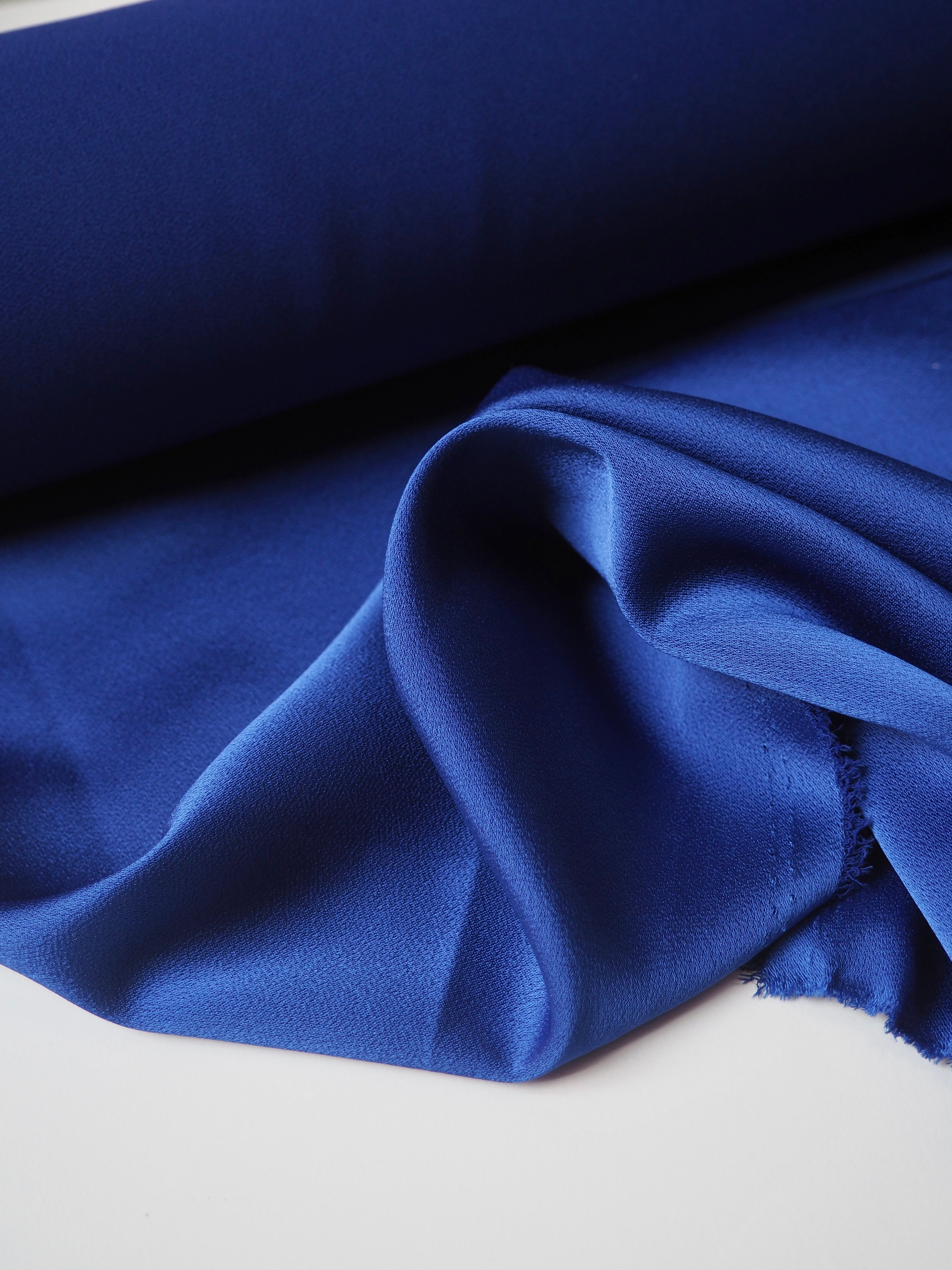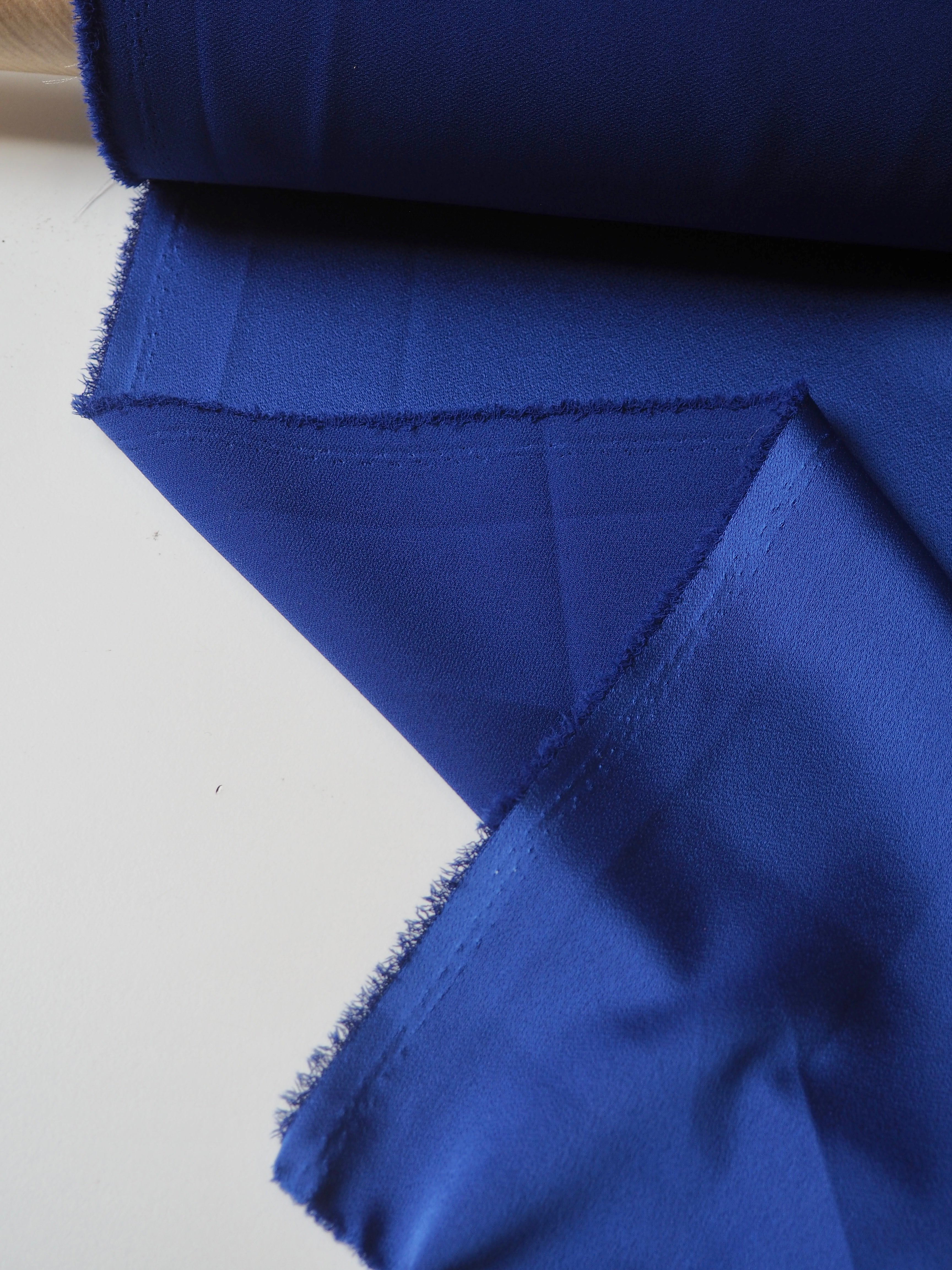 This ex-designer fabric is a crepe satin. It's lightweight with wonderful movement and a fantastic drape. Has a lovely satin sheen on one side, with a soft crepe on the other. Has a lovely handle, and it fully opaque. Perfect for dresses or swishy trousers!