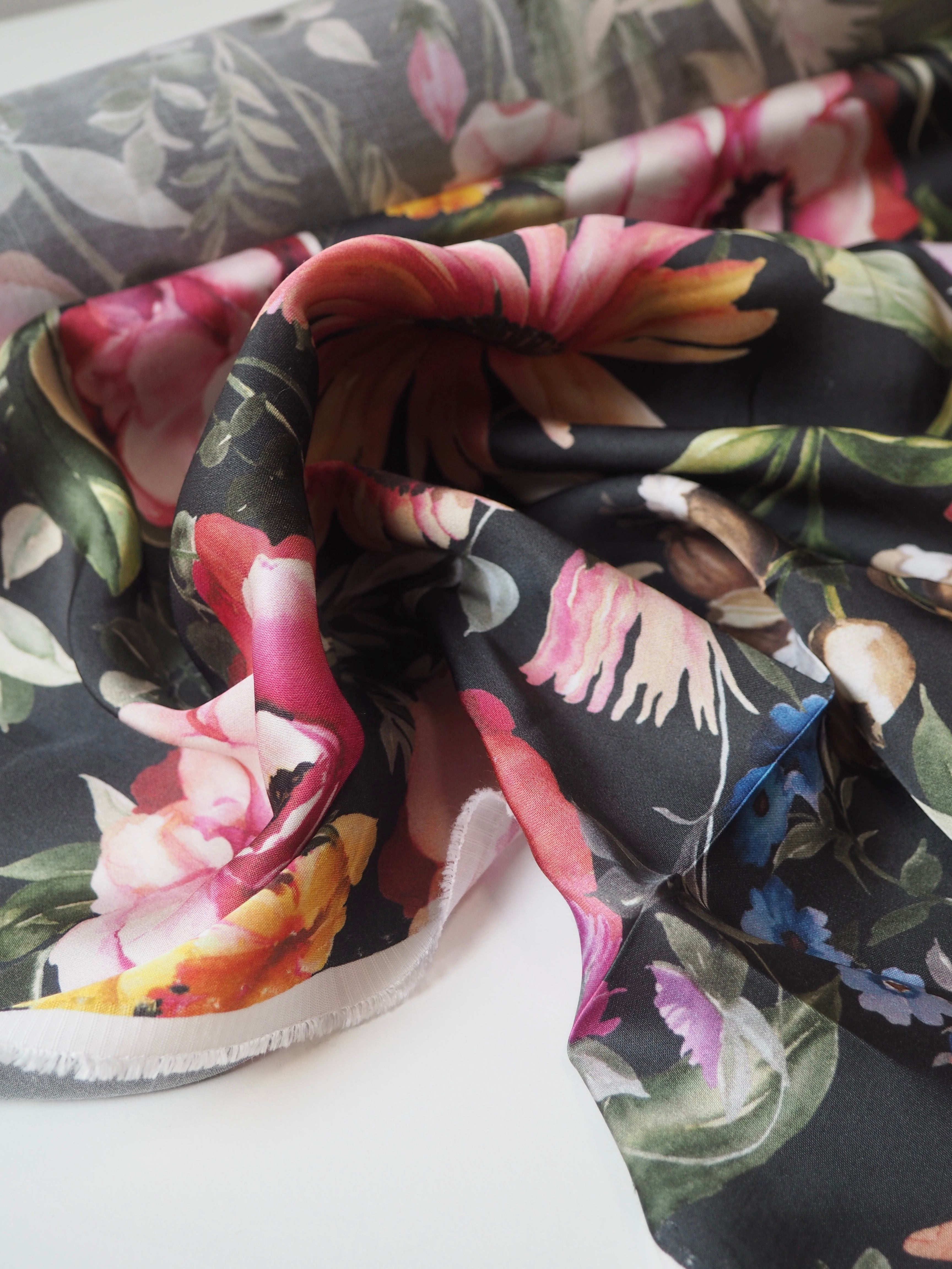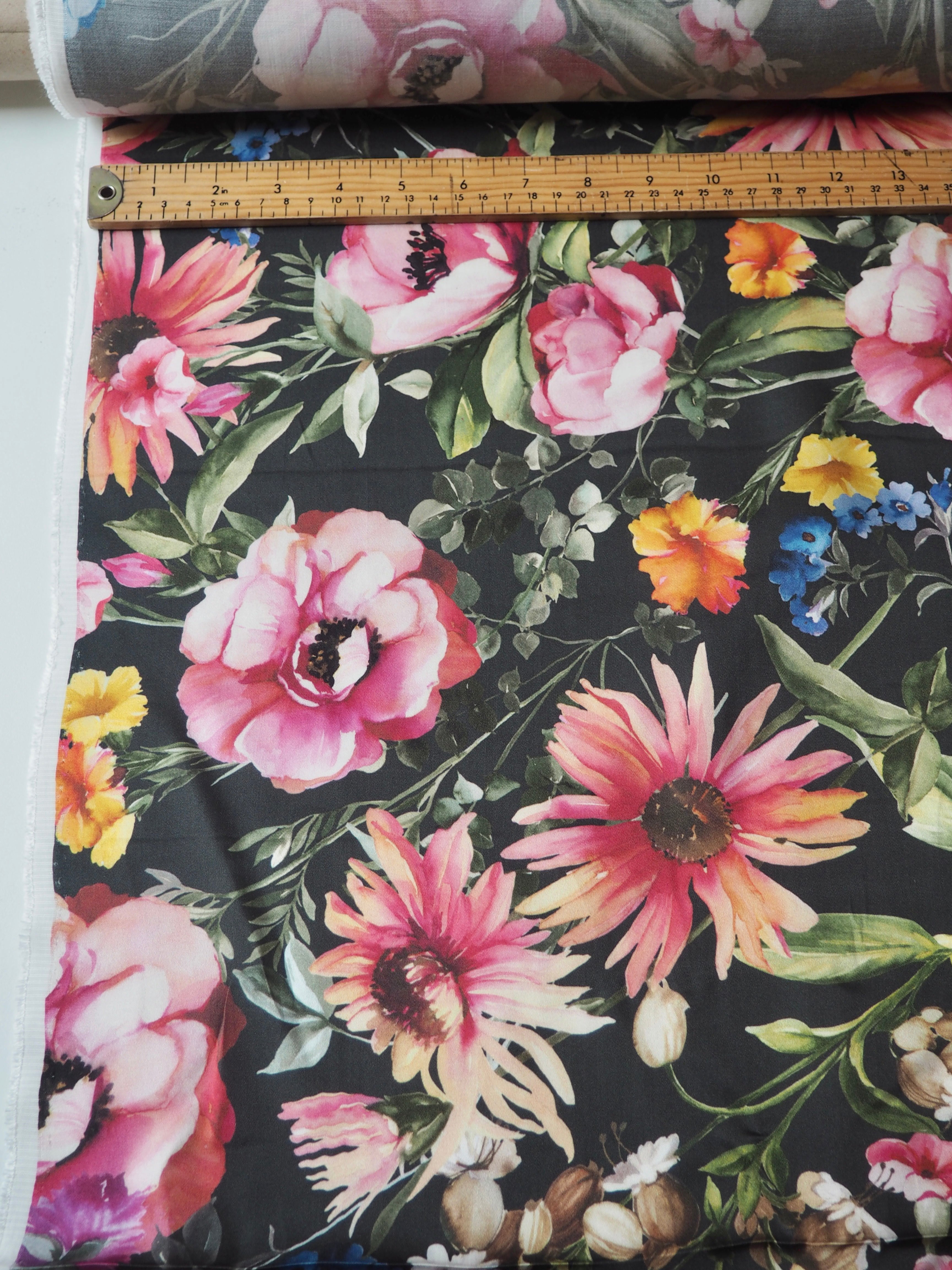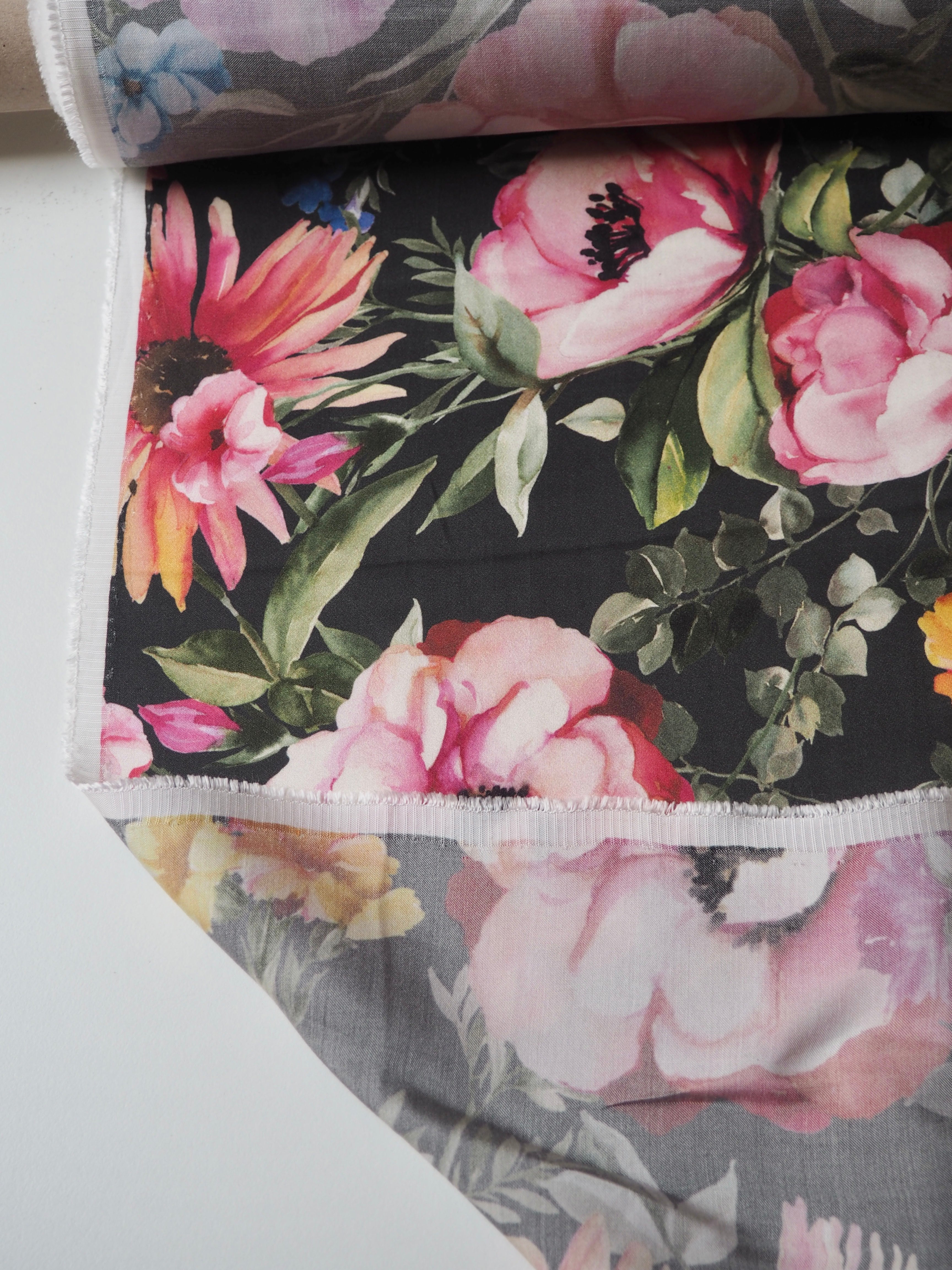 Black Floral Viscose Sateen