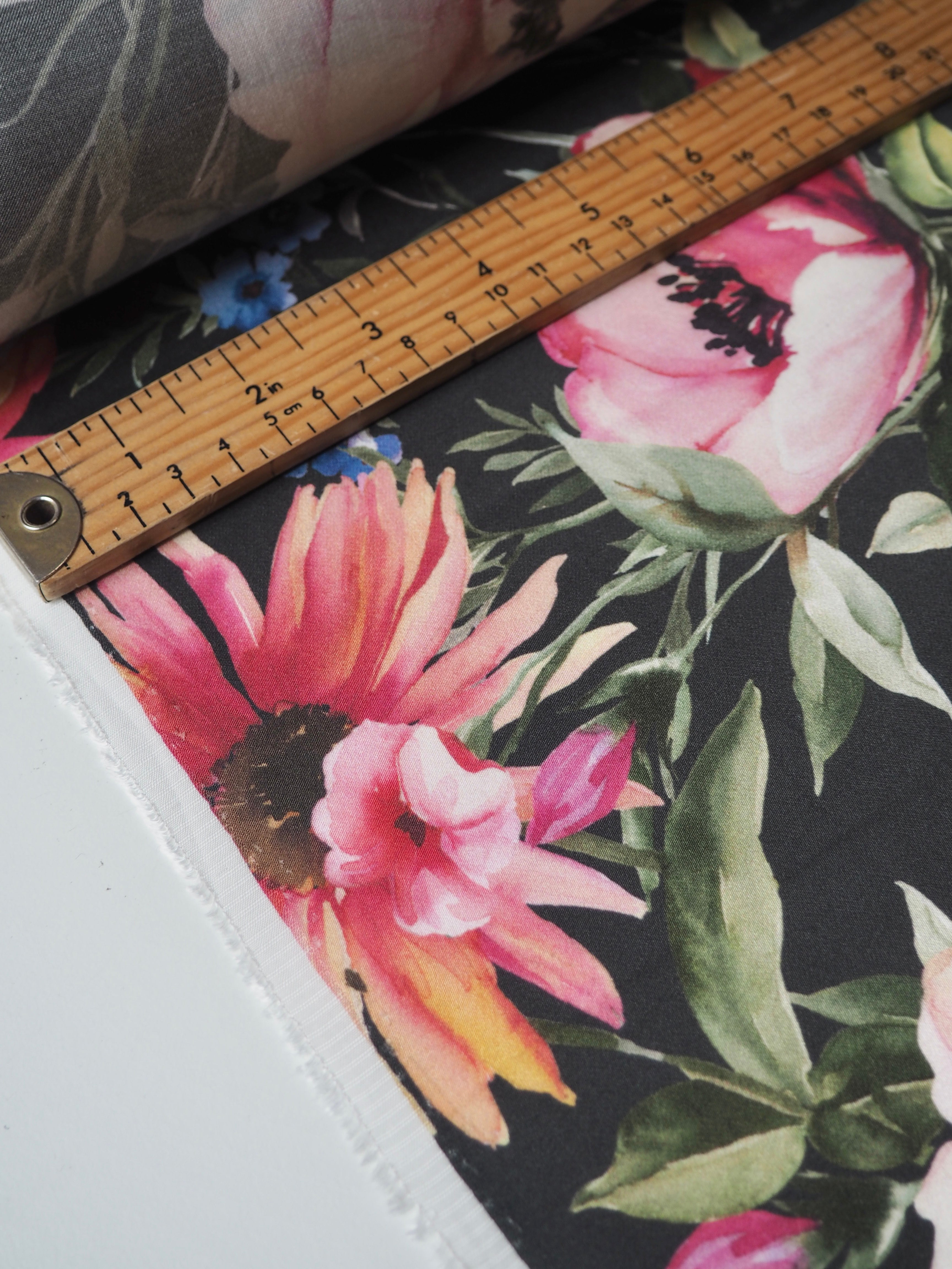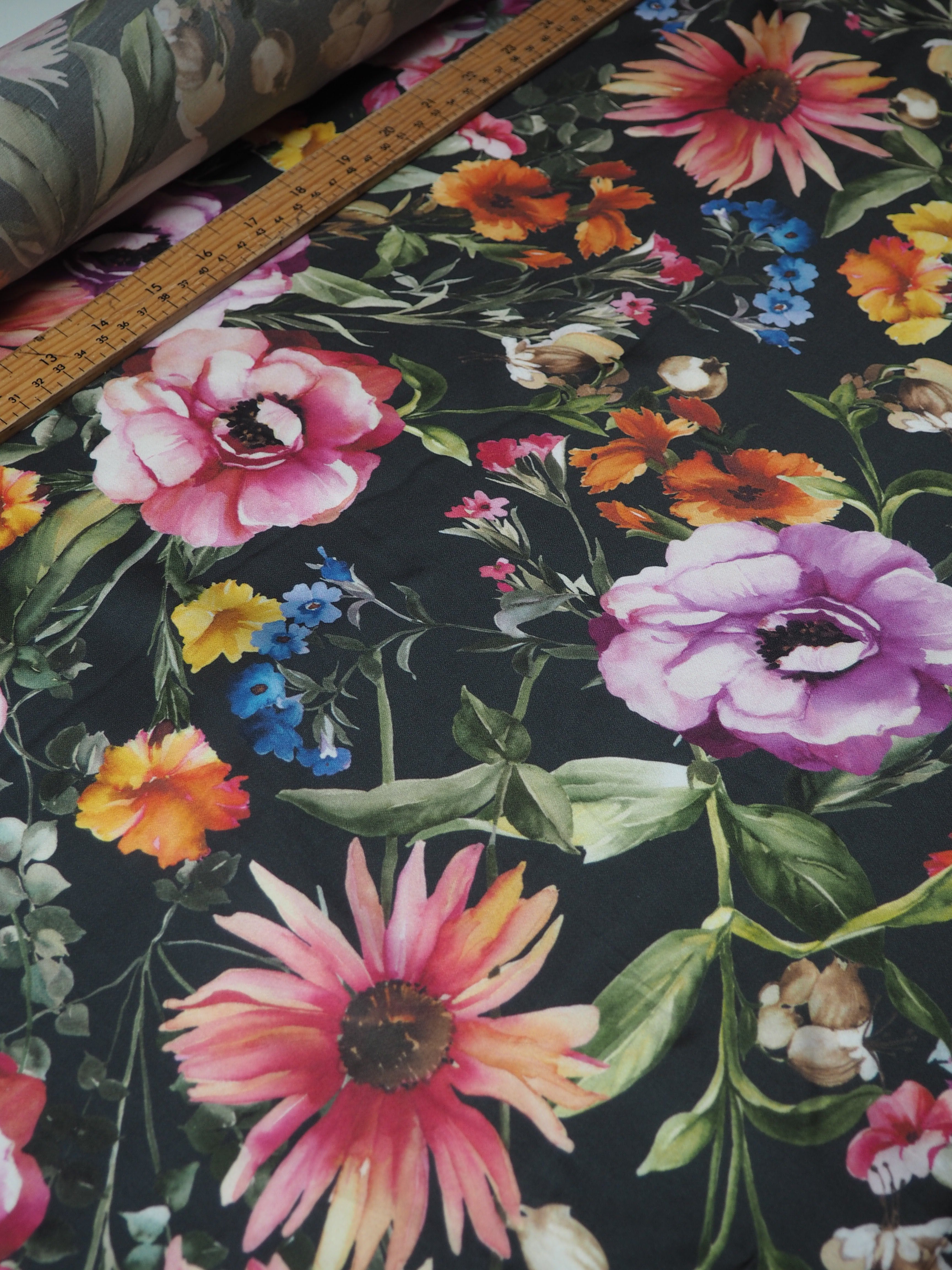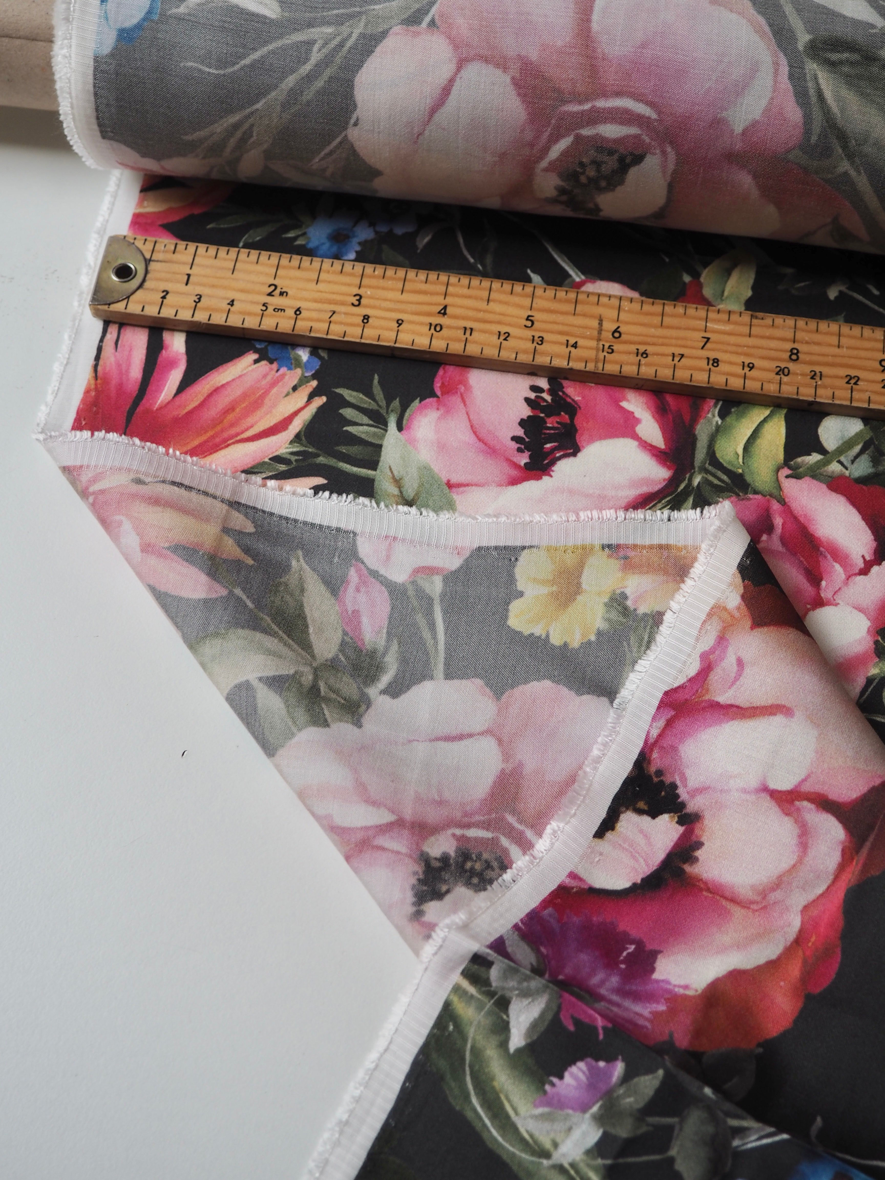 Black Floral Viscose Sateen
