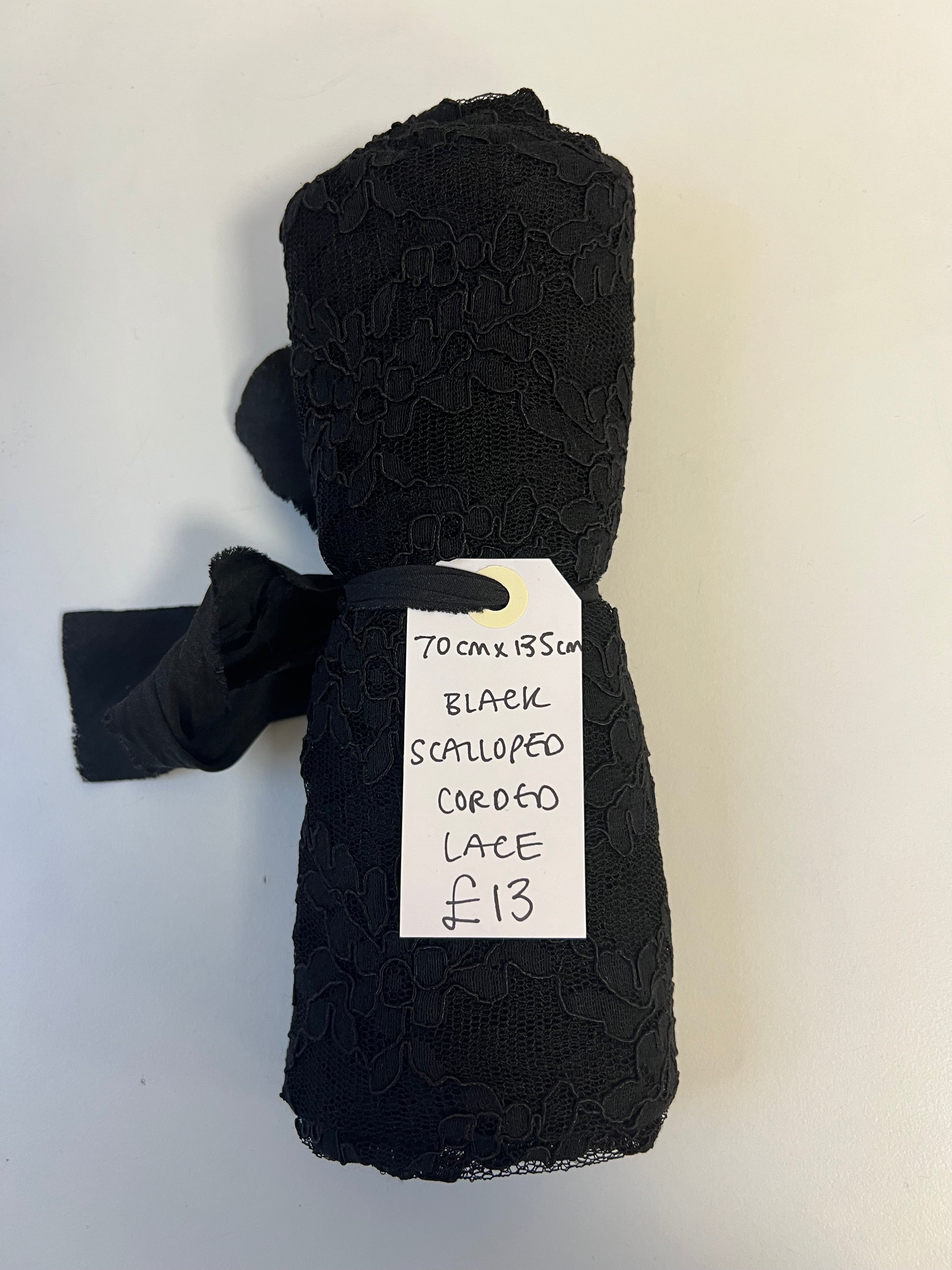 Black Scalloped Corded Lace Remnant
