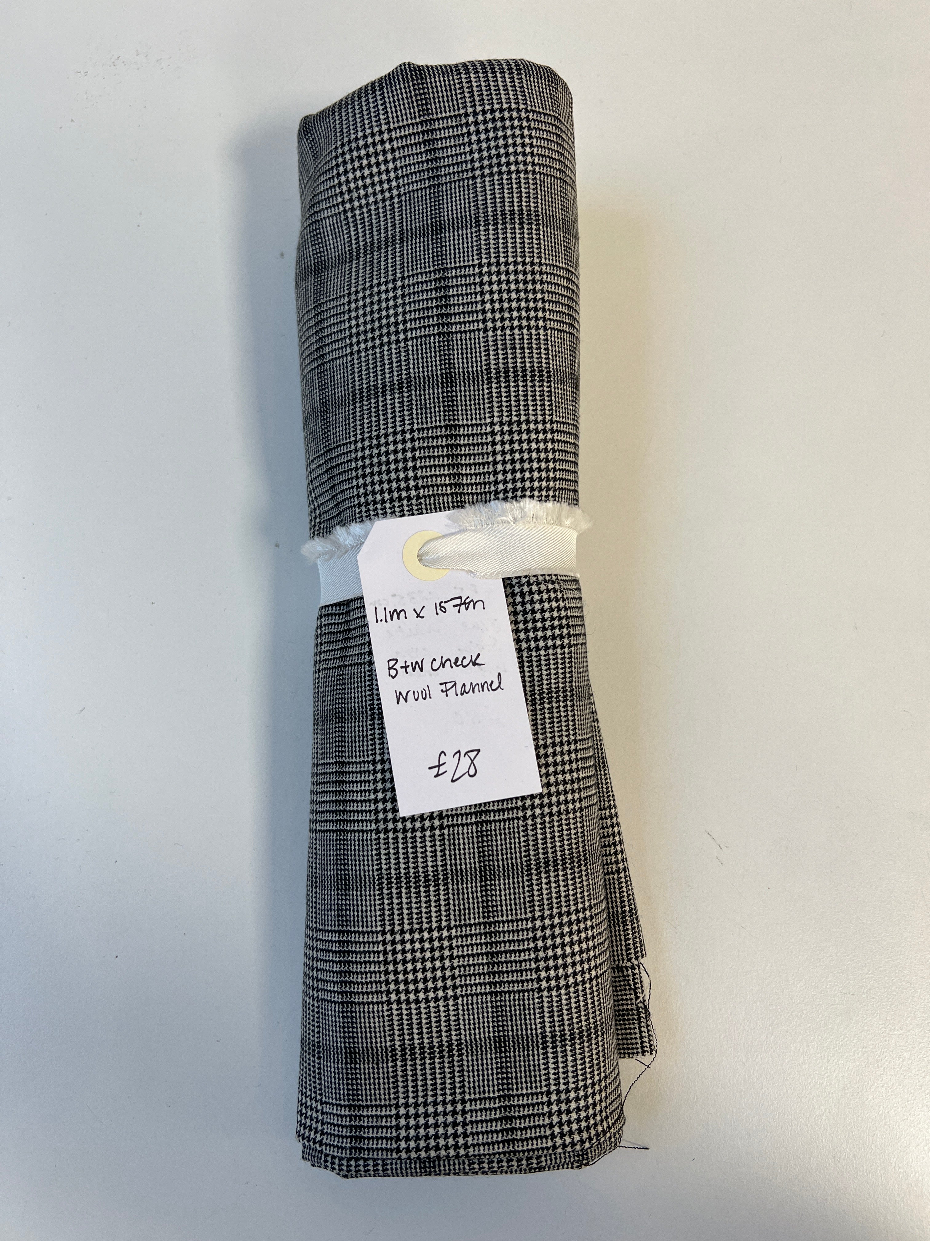 Black + White Check Wool Flannel Remnant
