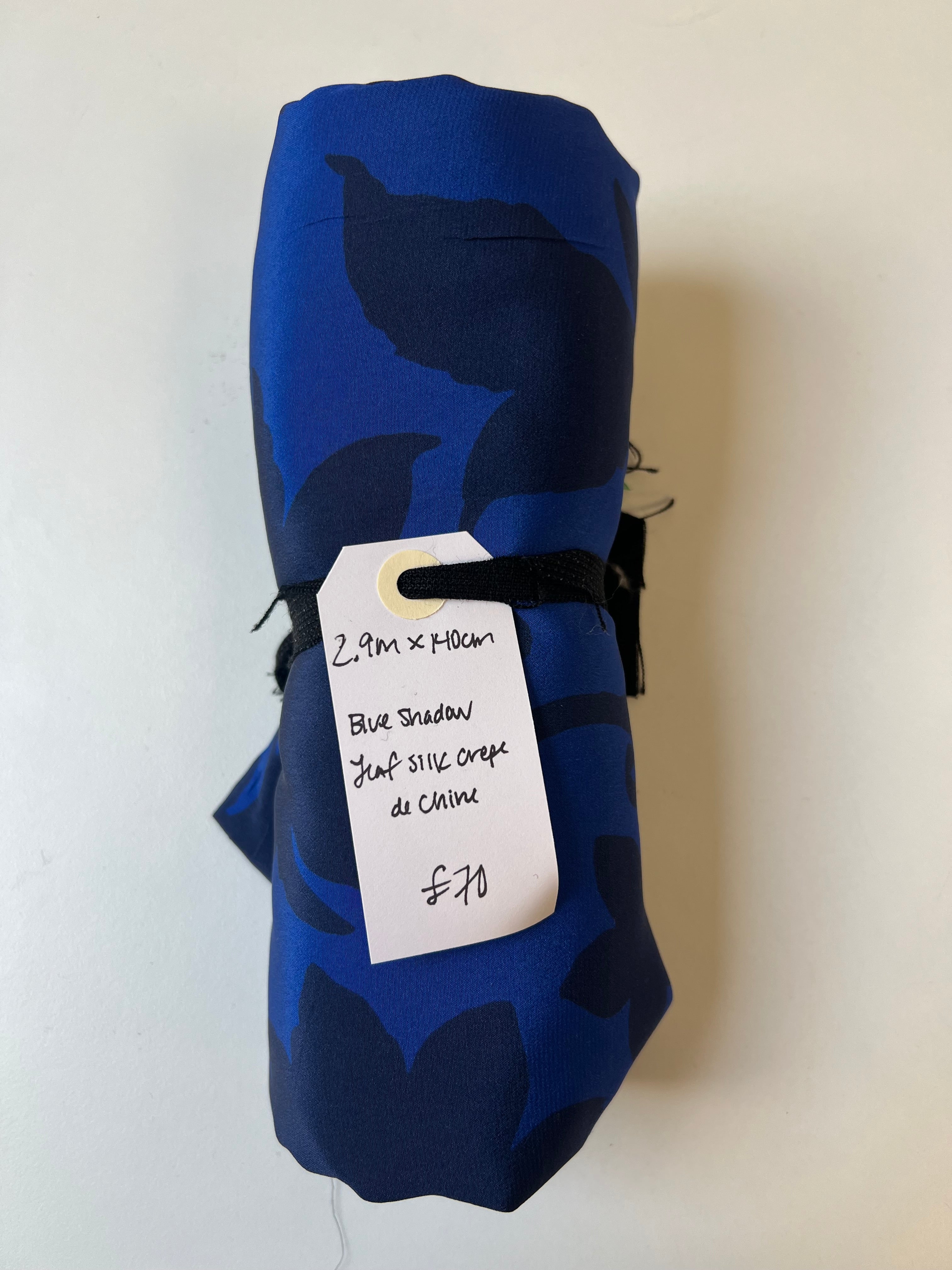 Blue Shadow Leaf Silk Crepe De Chine Remnant