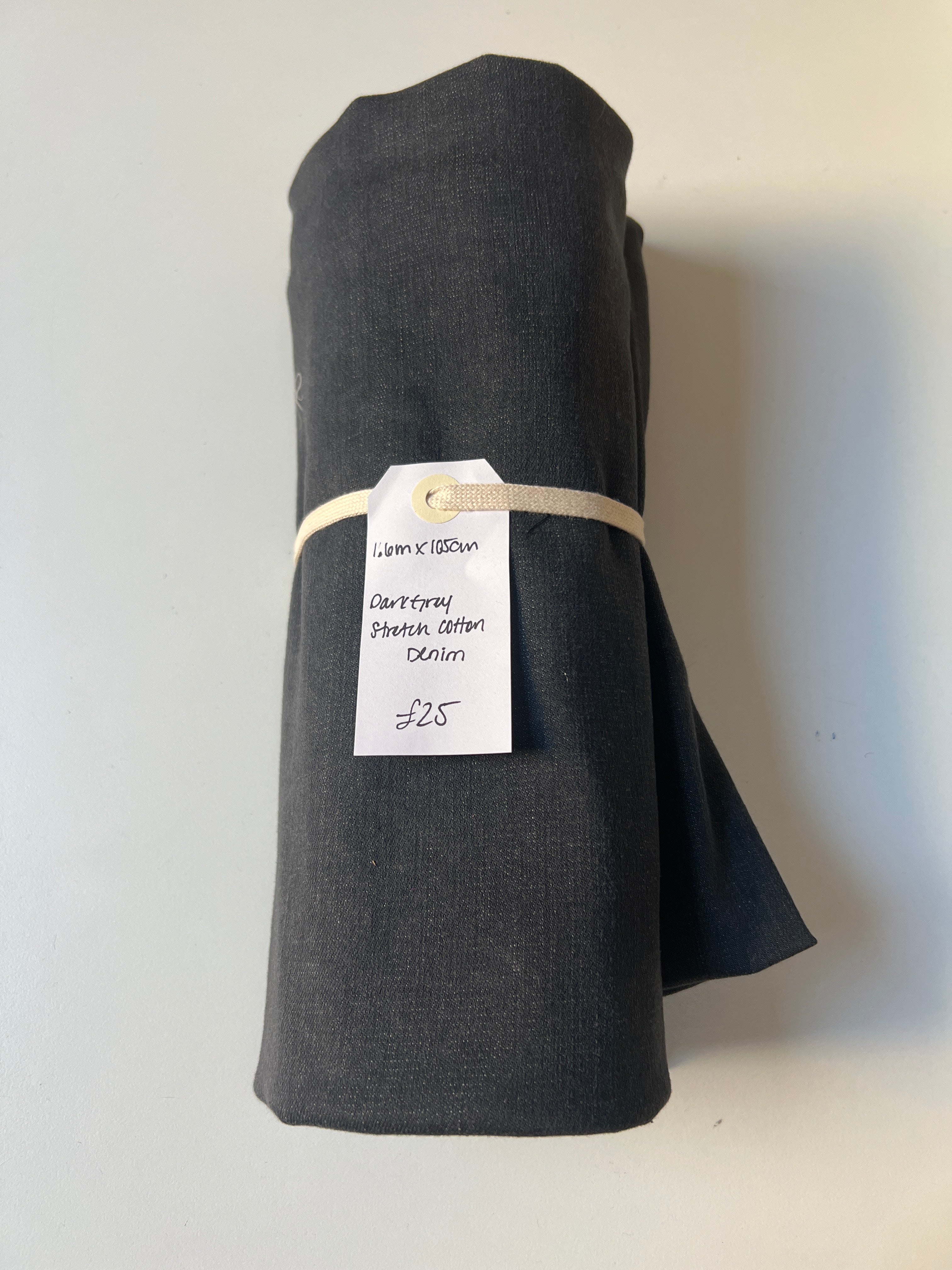 Dark Grey Stretch Cotton Denim Remnant