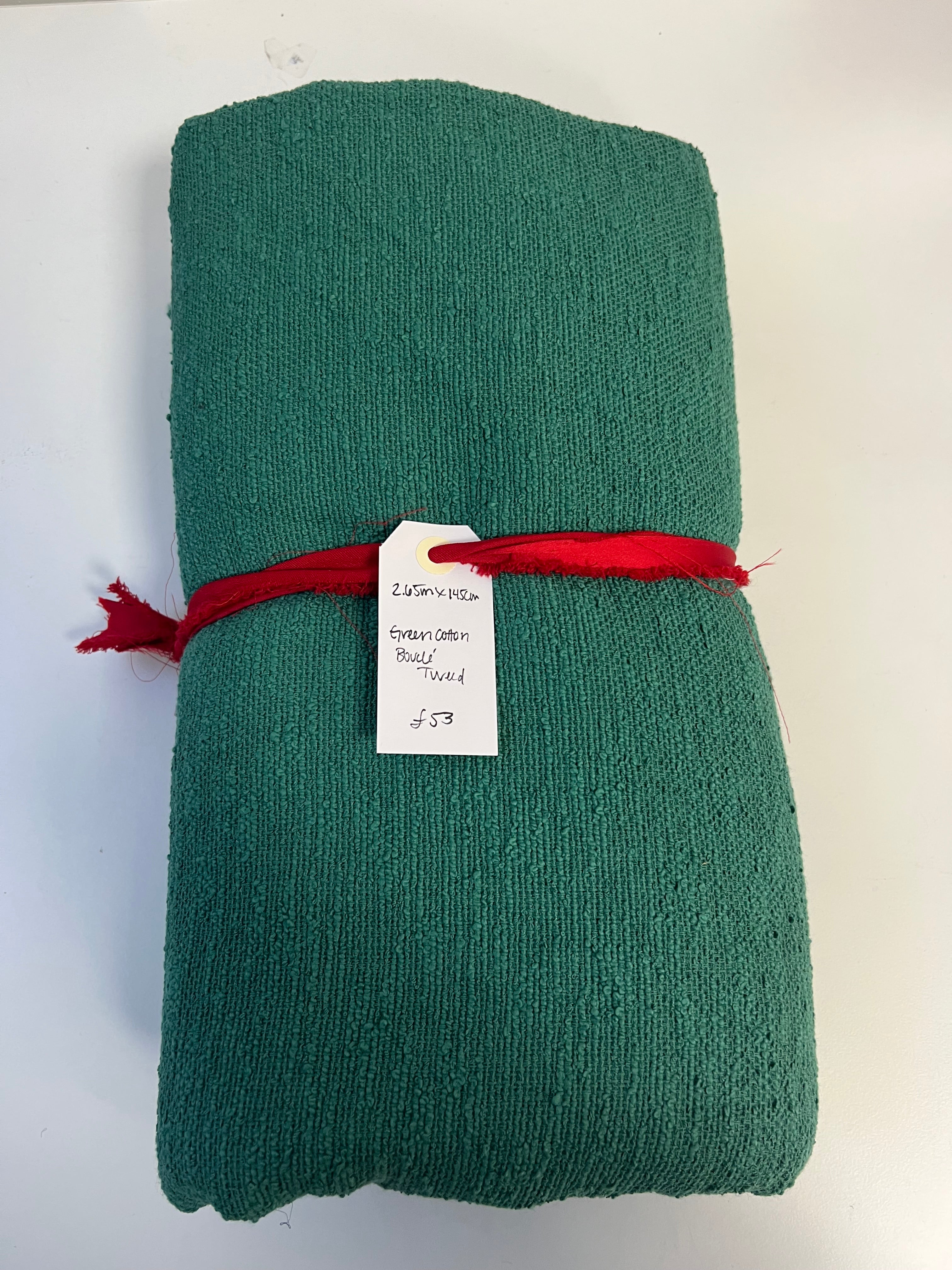 Green Cotton Bouclé Tweed Remnant