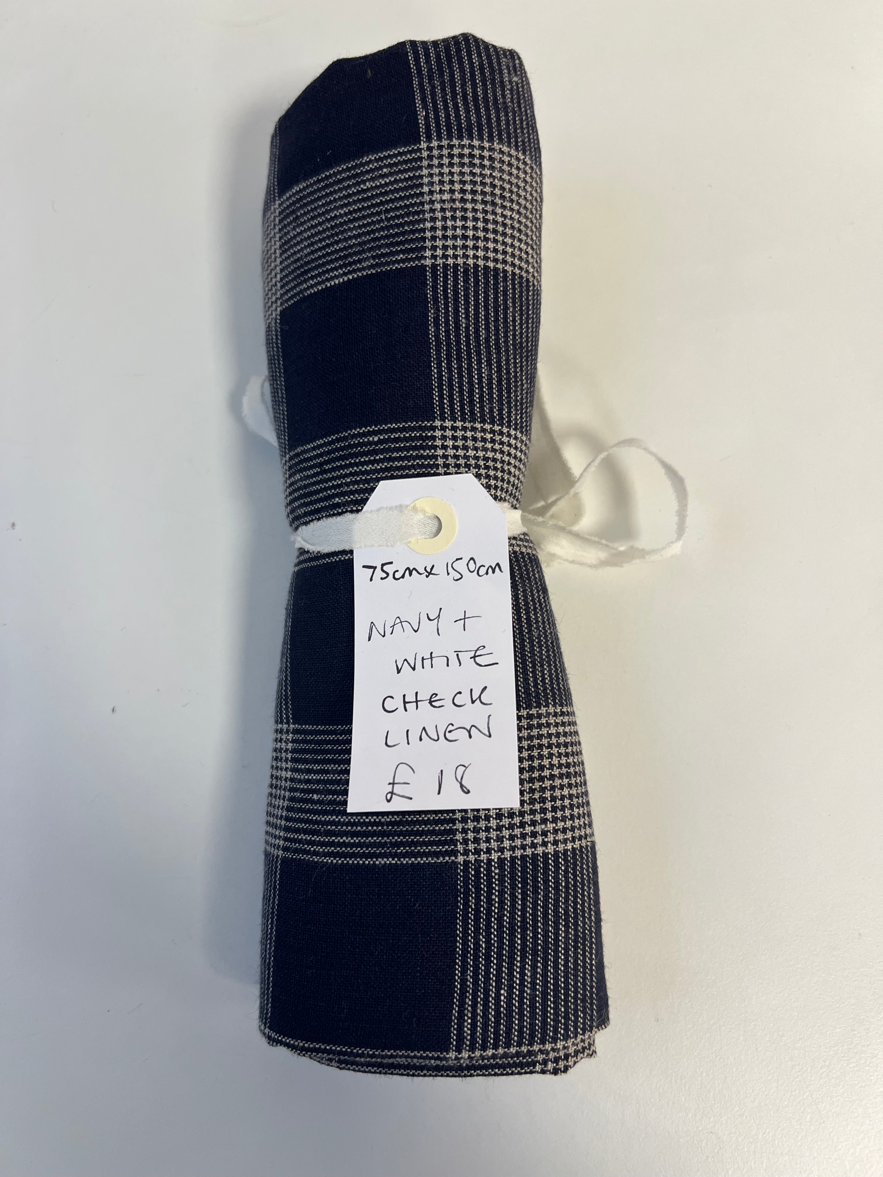 Navy + White Check Linen Remnant