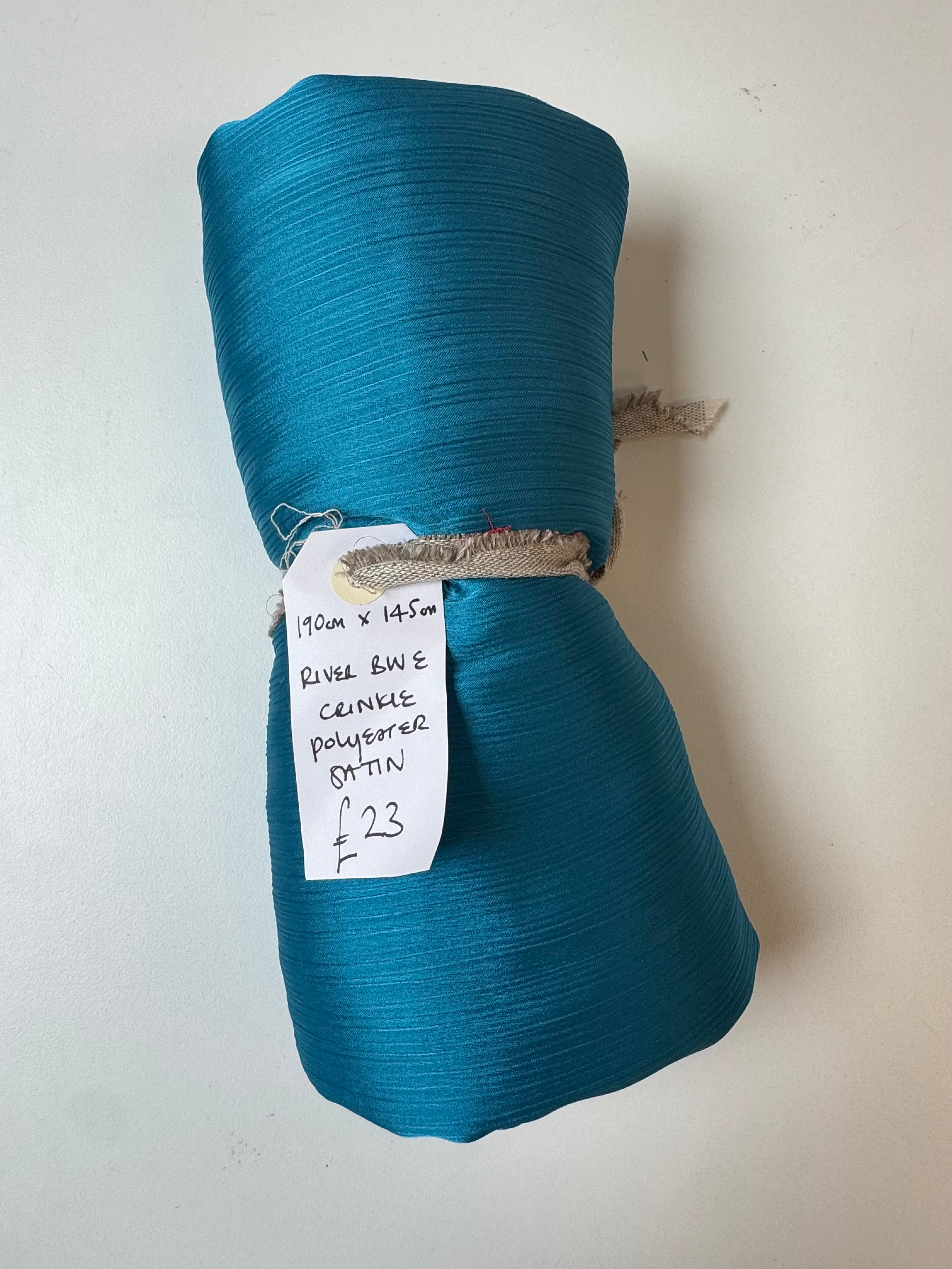 River Blue Crinkle Polyester Satin Remnant