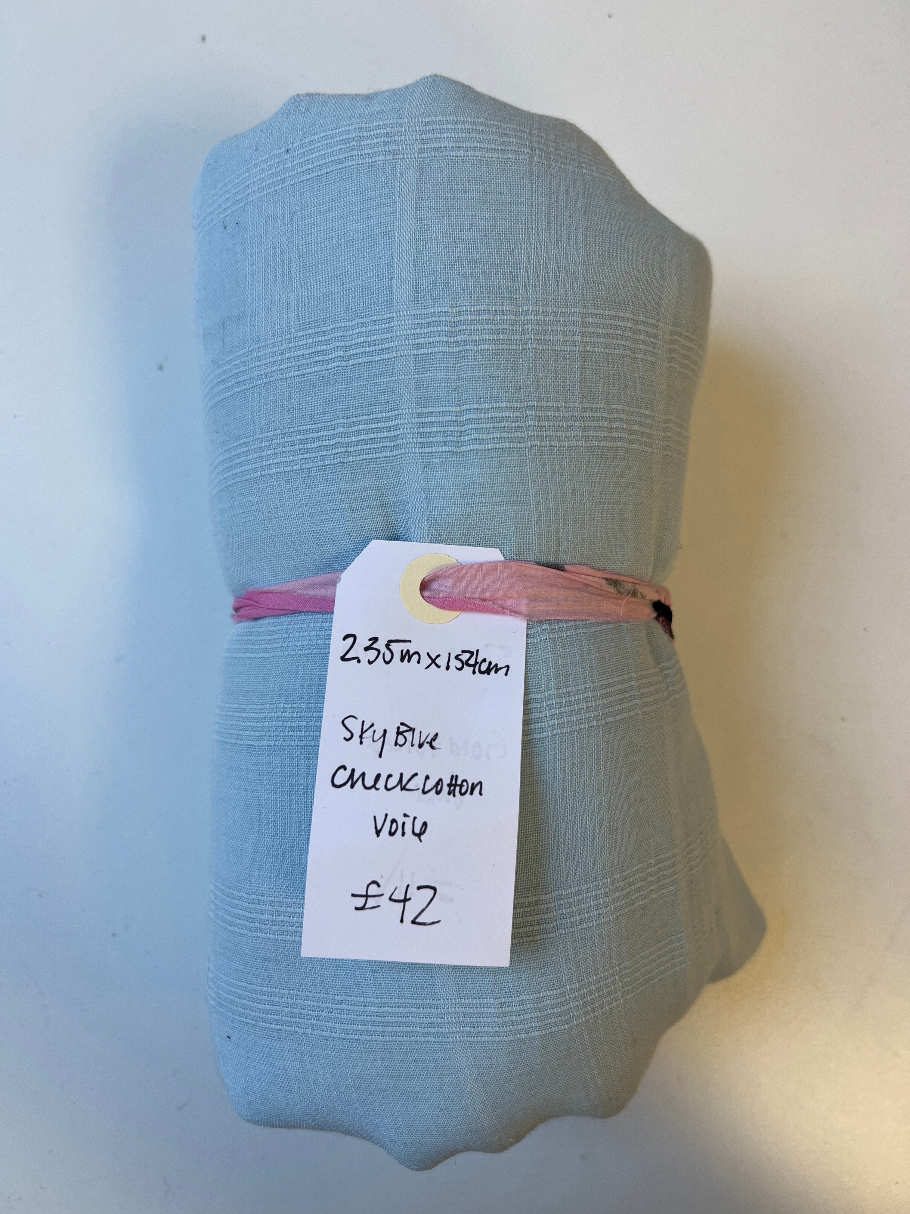 Sky Blue Check Cotton Voile Remnant
