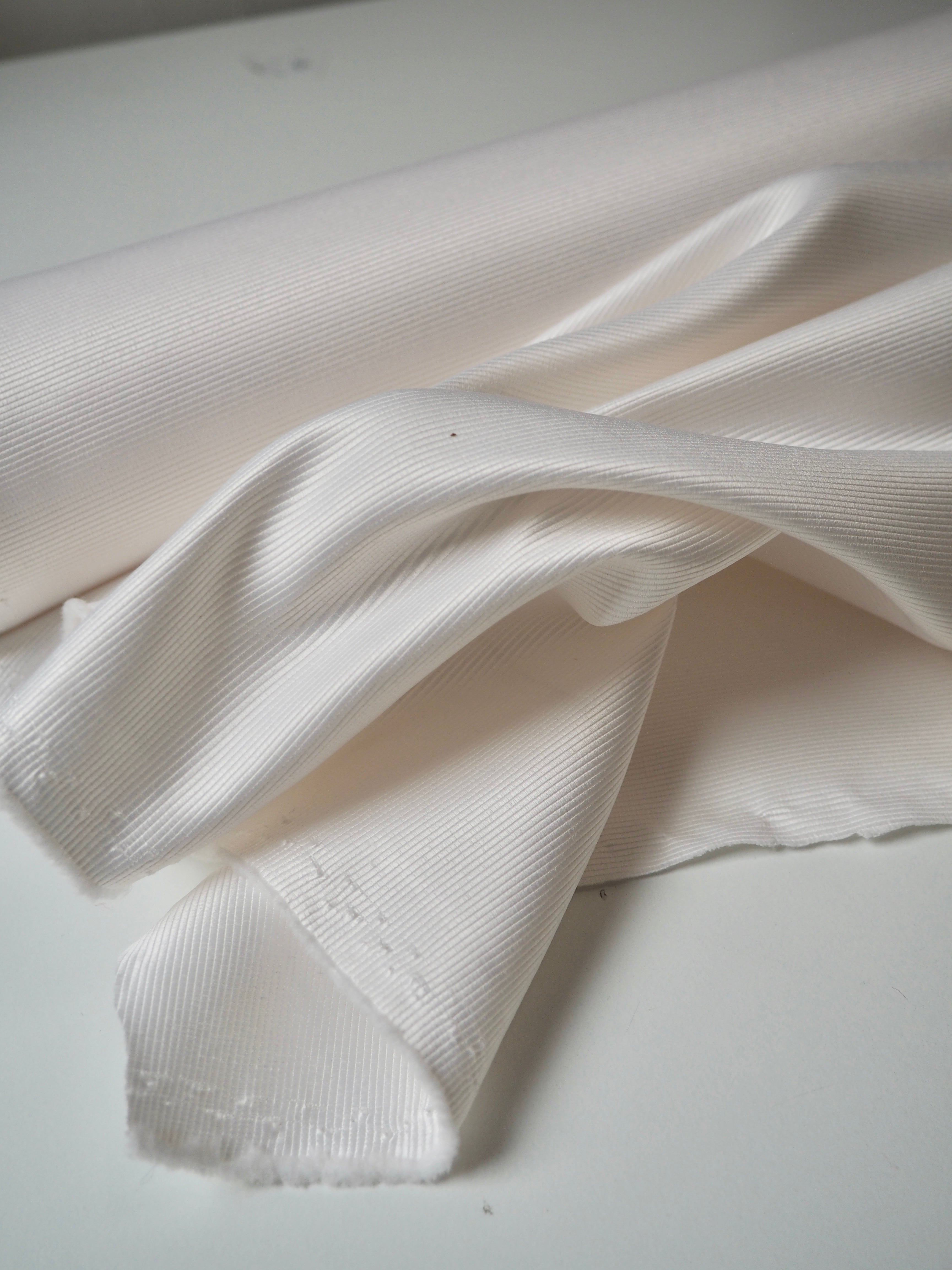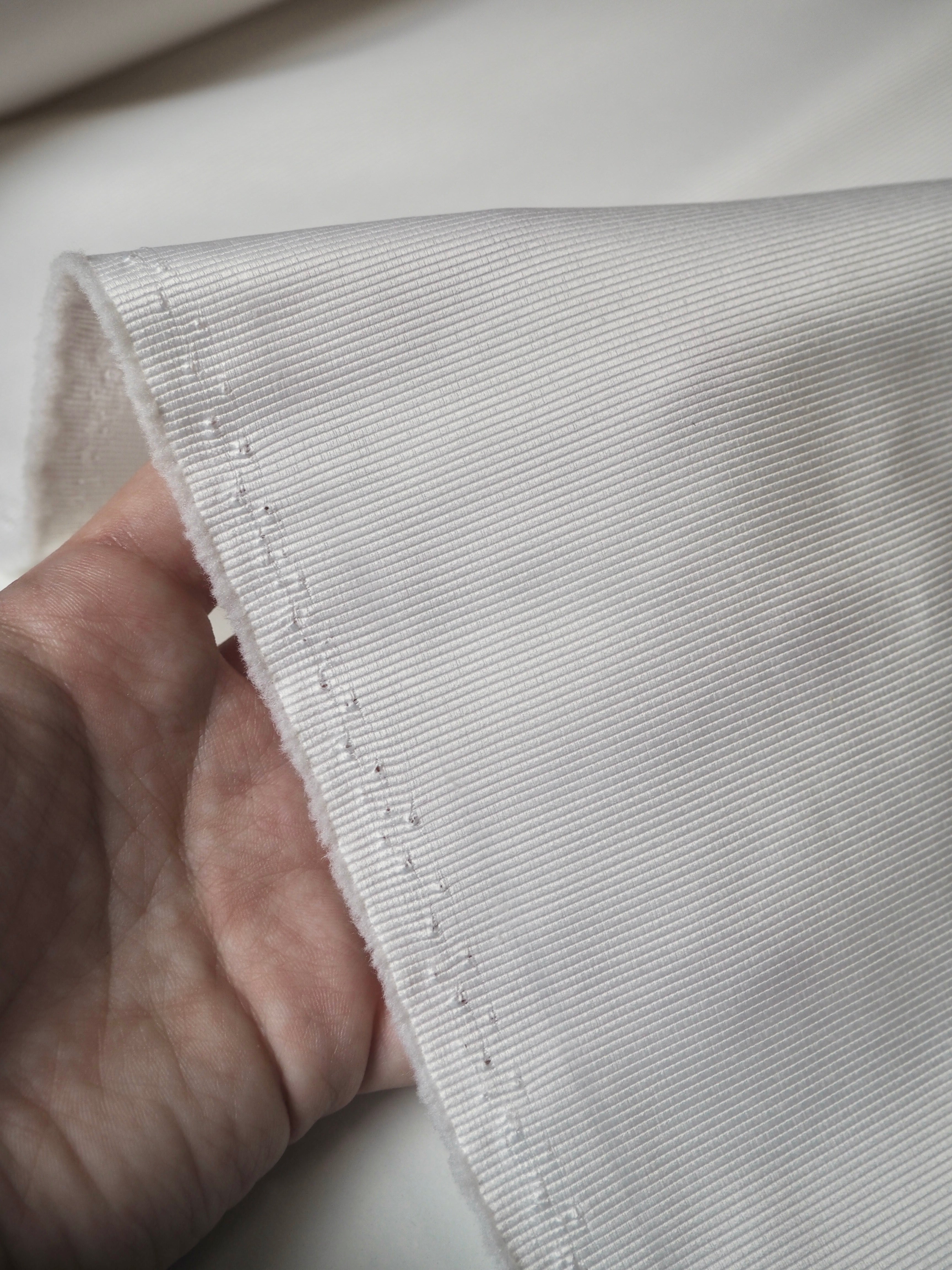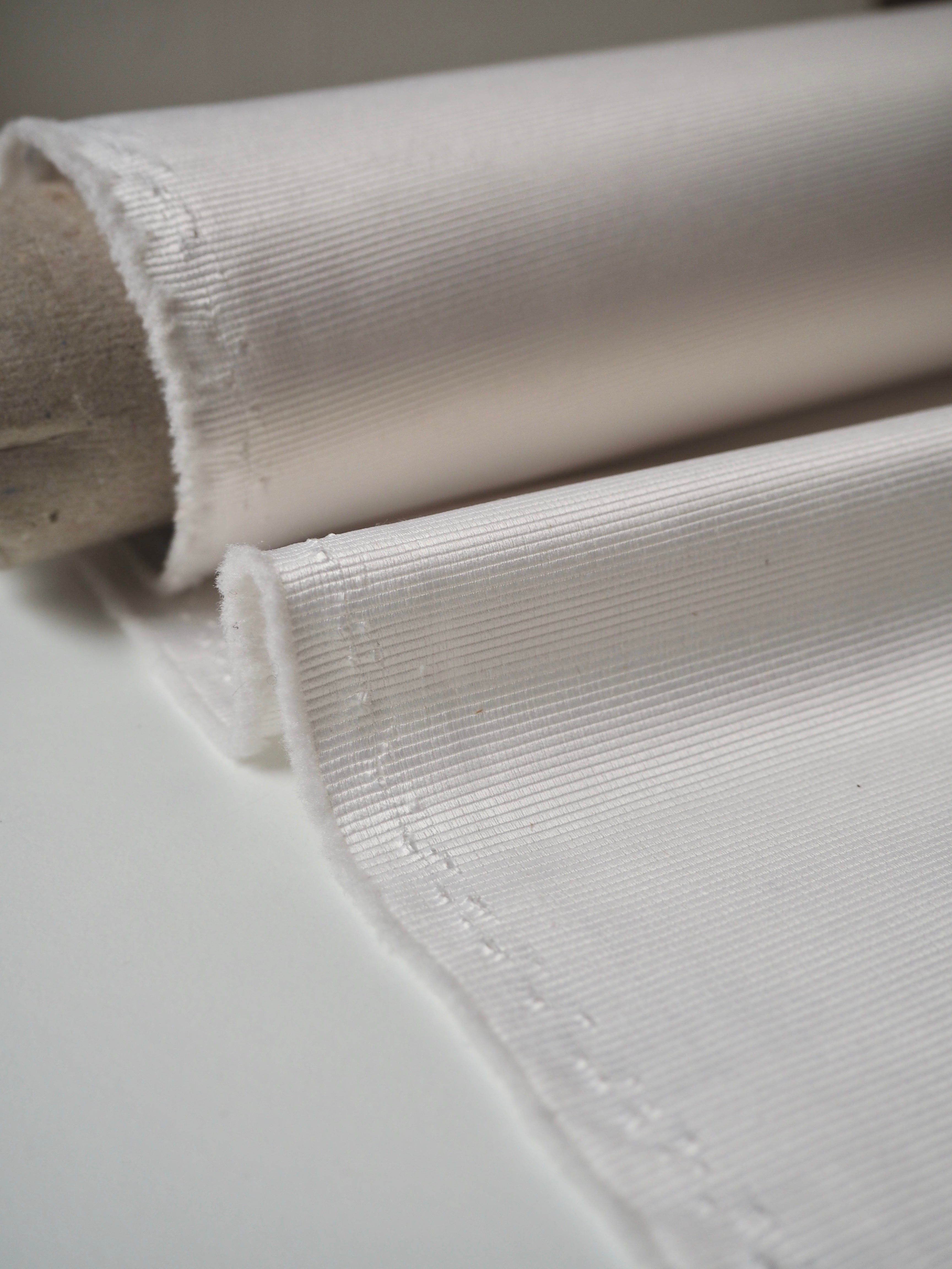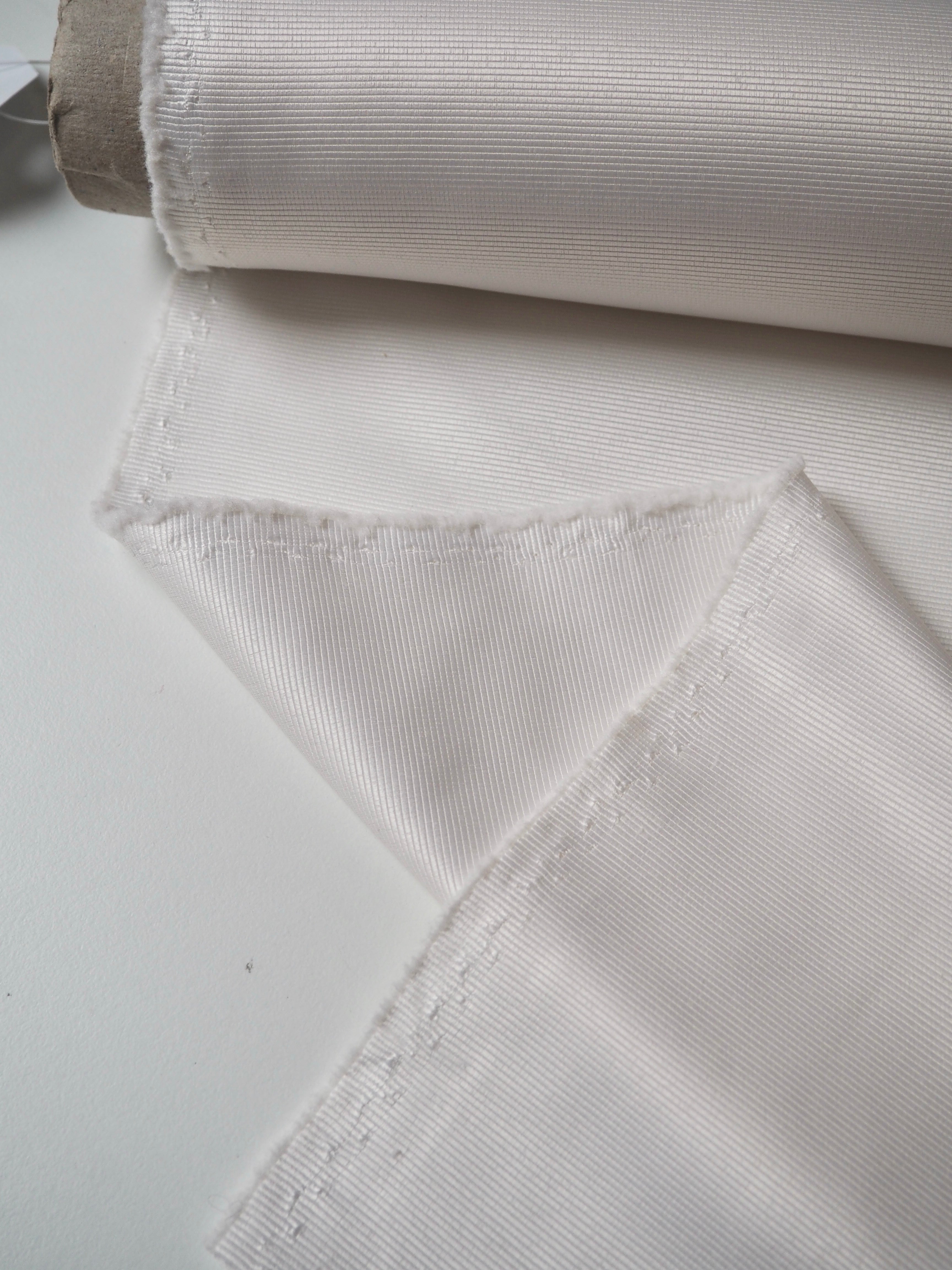 This ex-designer fabric is a satin faille. It's in an classic ivory shade. It's medium weight with amazing structure and decent thickness. It has incredible sheen and a lovely sleek handle. Great for décor, upholstery, and structured garments and accessories!