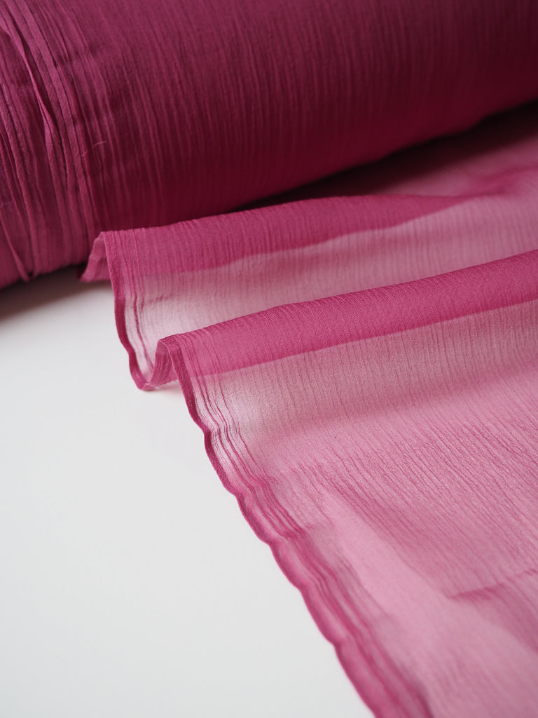 This ex-designer fabric is a silk organza. Sheer and very lightweight, with such a lovely silky handle! It has a beautiful sheen finish that catches the light as it moves. Perfect for use in occasion wear with it's incredible structure. Also great for simple tops with puffy sleeves like our Everyday Dress!