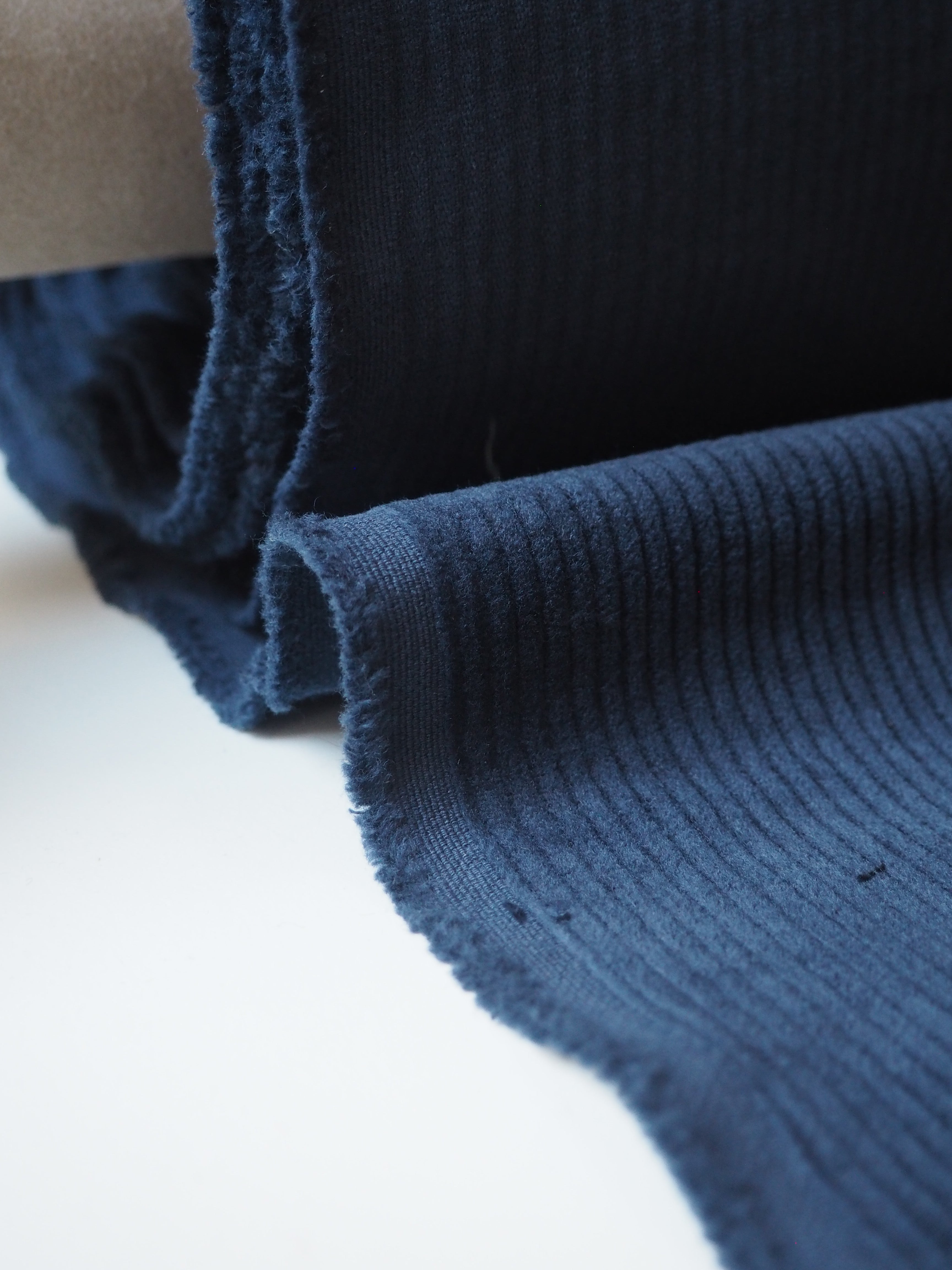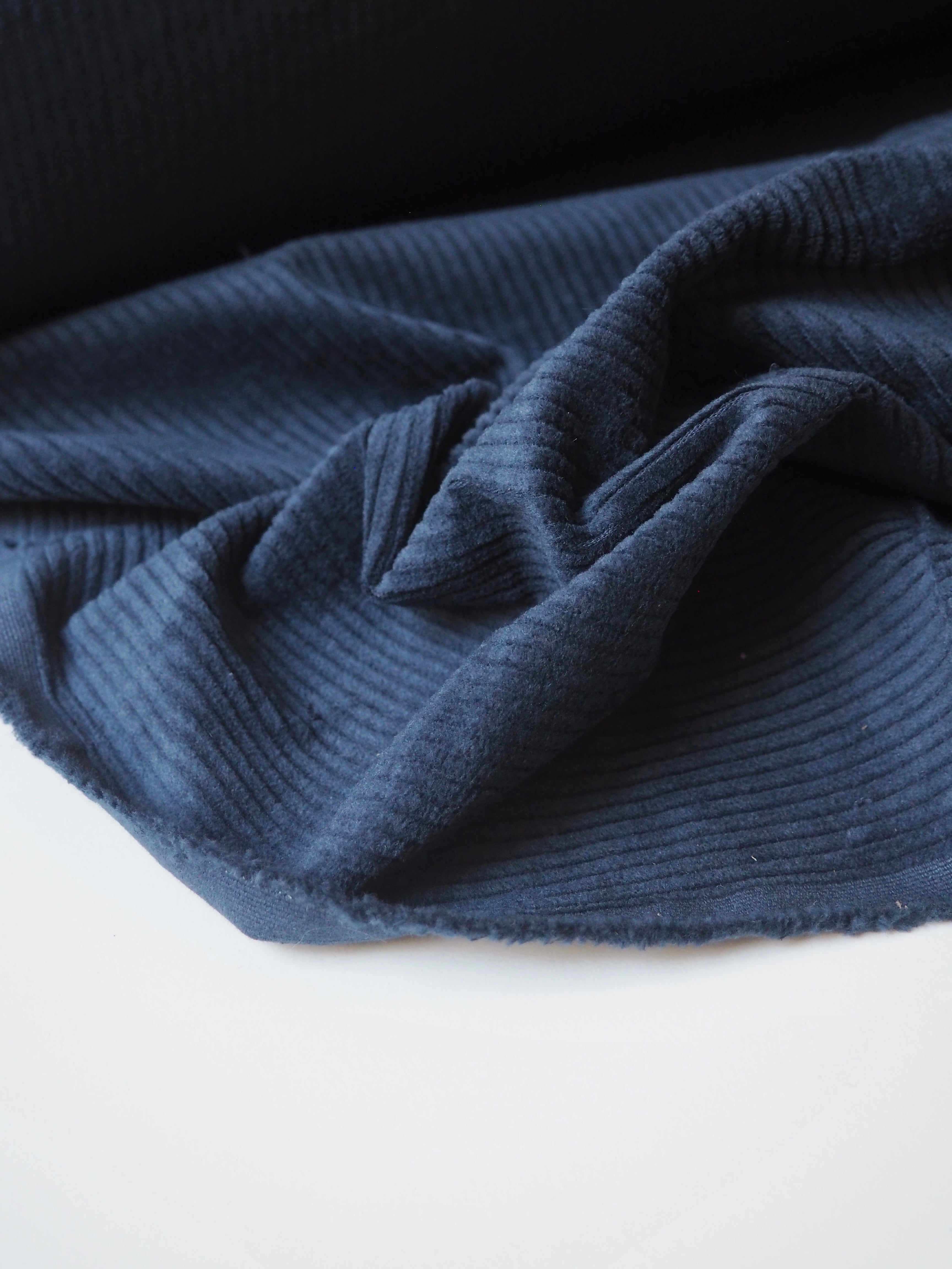 This ex-designer fabric is a stretch corduroy. Cord ribs run along lengthways. In a soft cotton fibre, with a subtle 10% stretch. Beautifully soft with a gentle structure. Opaque and so lovely! From clothing brand Beyond Nine, same as our popular linens! Medium weight and quite sturdy. Perfect for a jacket!