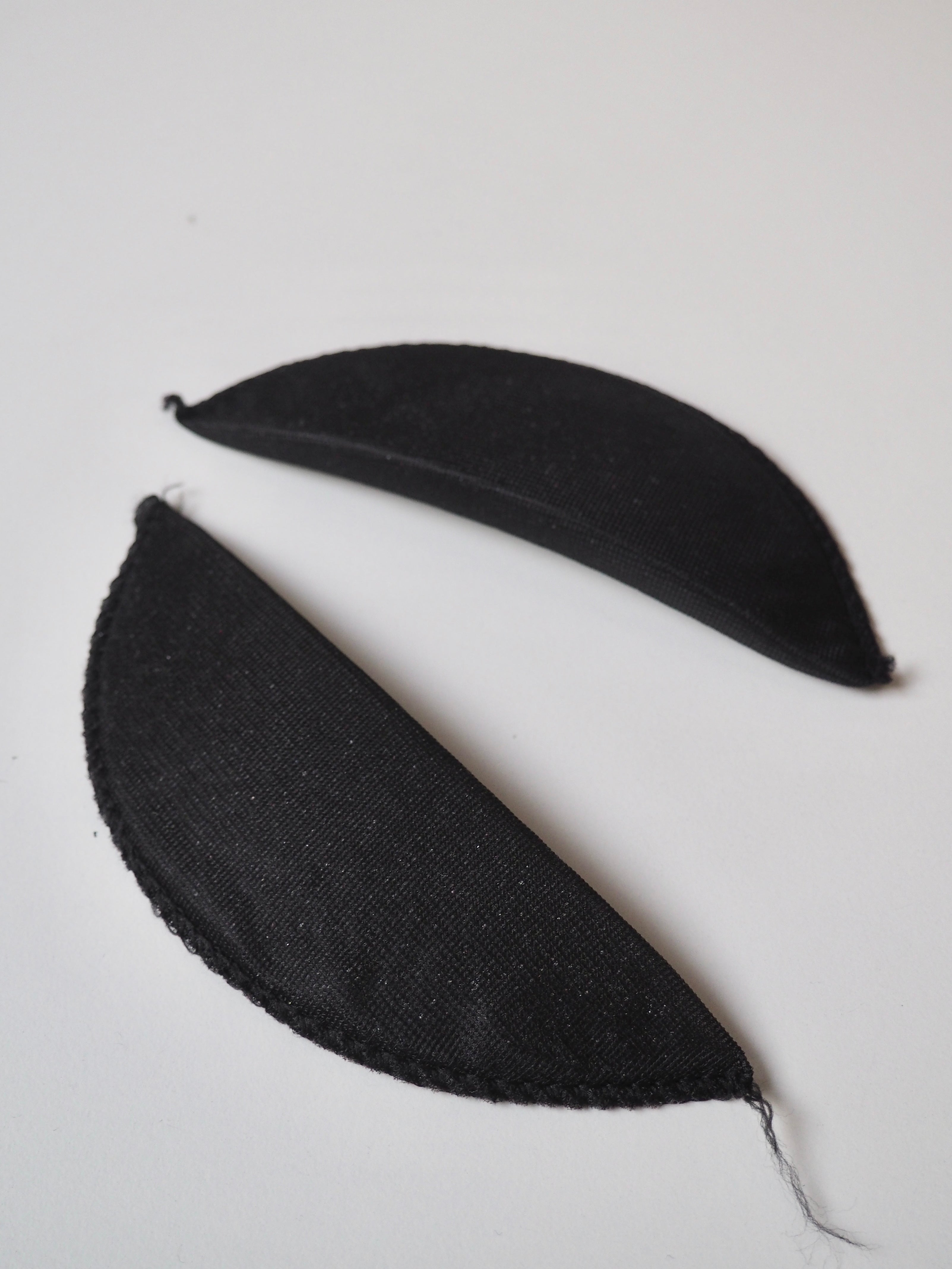 A narrow width shoulder pad with a light thickness perfect for more lightly structured garment. It is made up of a foam inner covered with a thin, black mesh polyester fabric, overlocked together at the edge. Great for adding shaping to a light jacket, tailored dress or less structured coat.